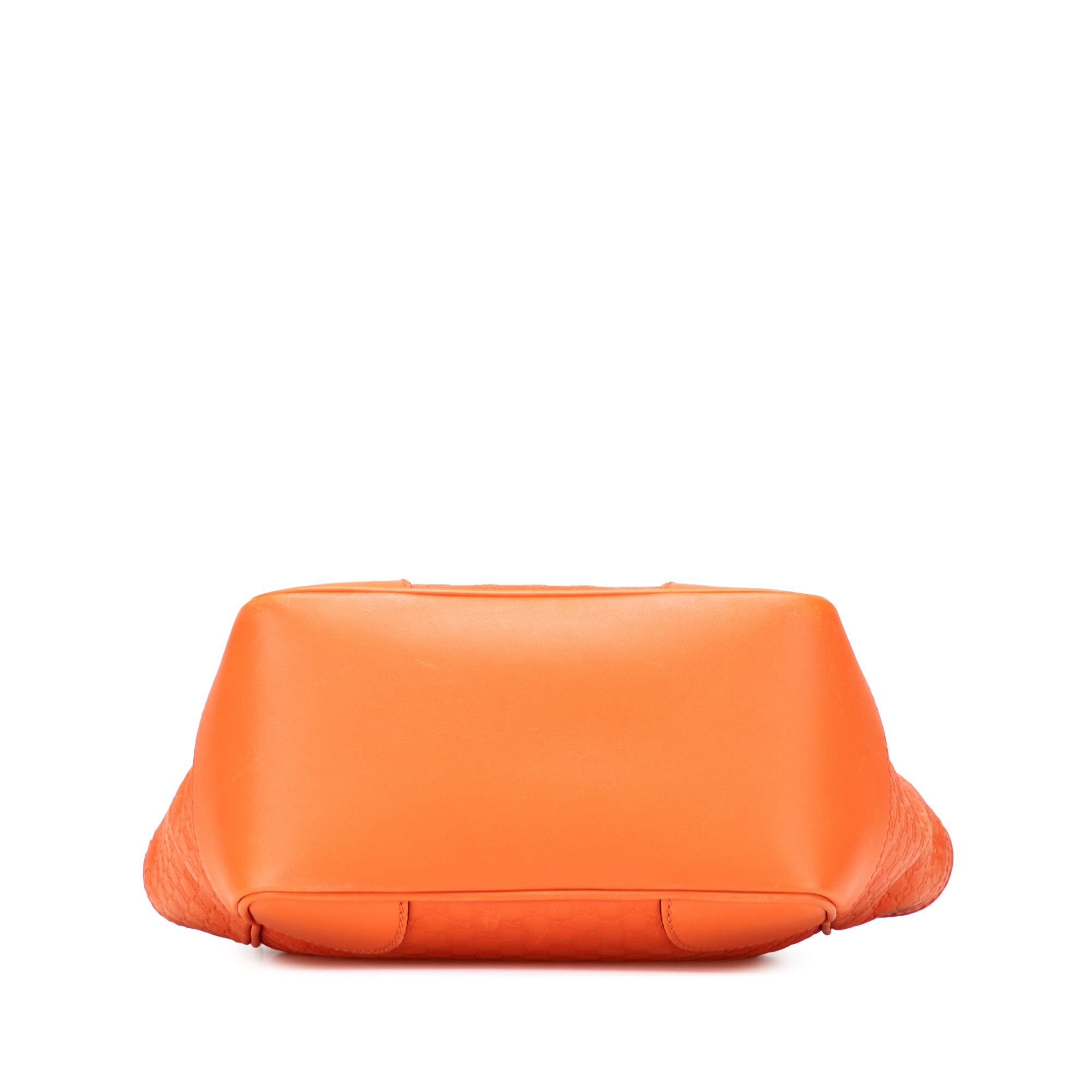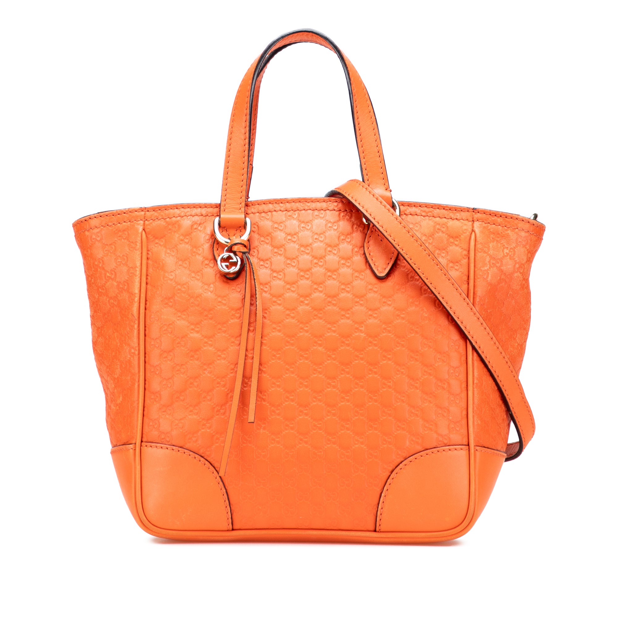 The Bree features an embossed leather body, flat leather handles, a detachable flat leather strap, a top zip closure, and interior zip and slip pockets. Retail Price: 1495.00