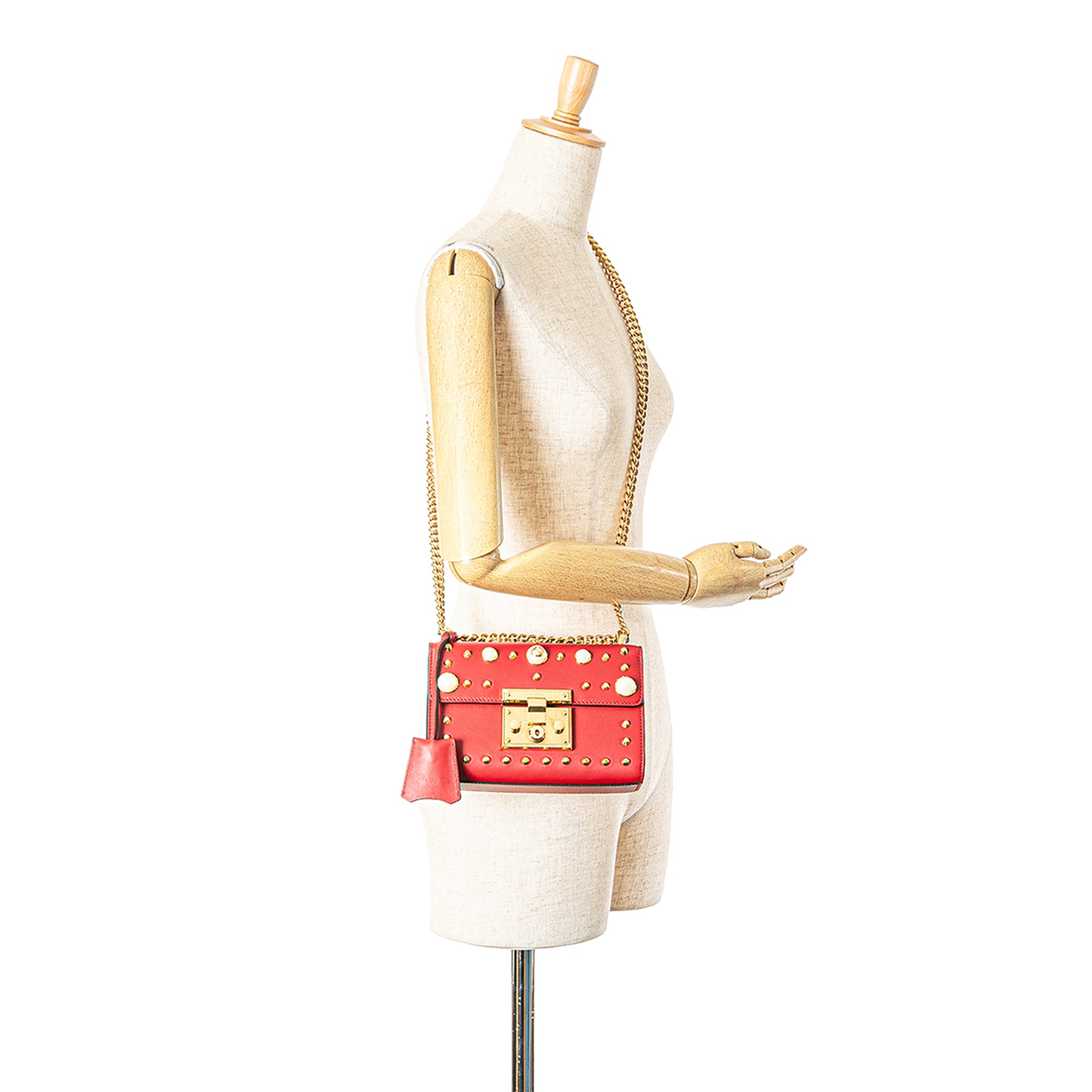 Gucci Small Pearl Studded Leather Padlock Crossbody