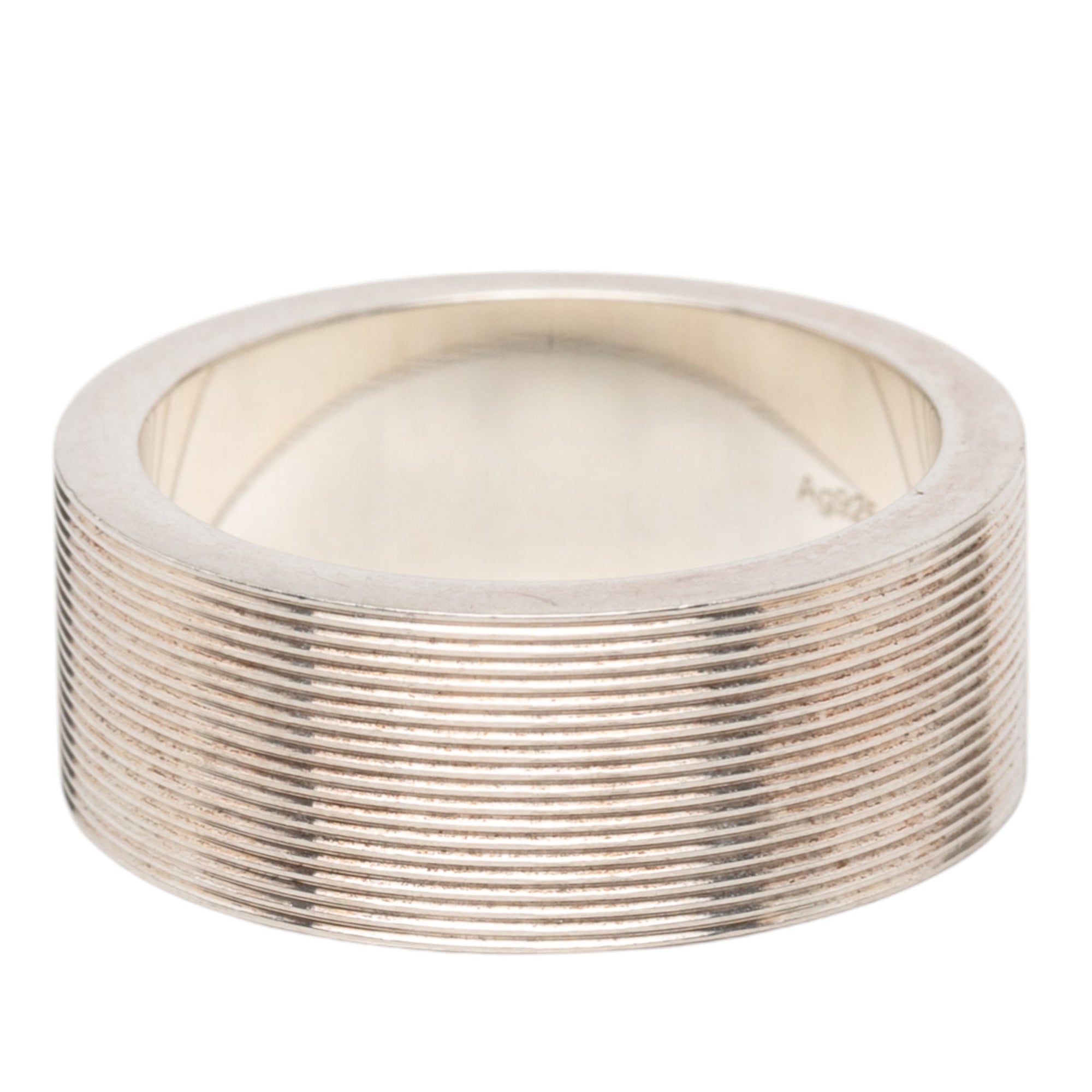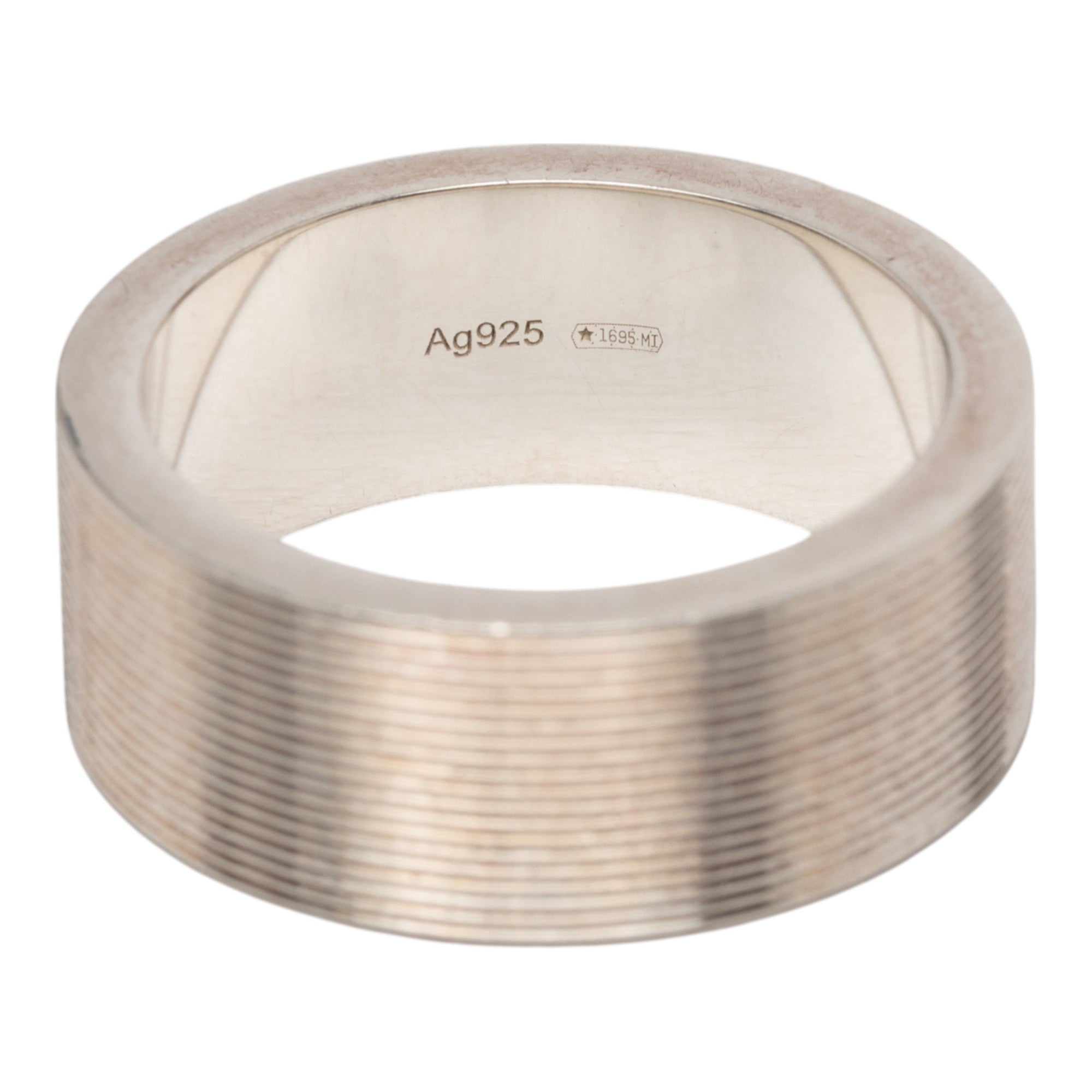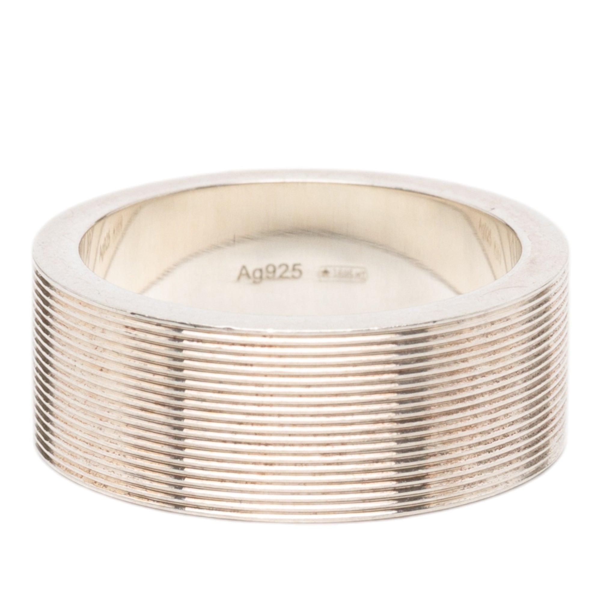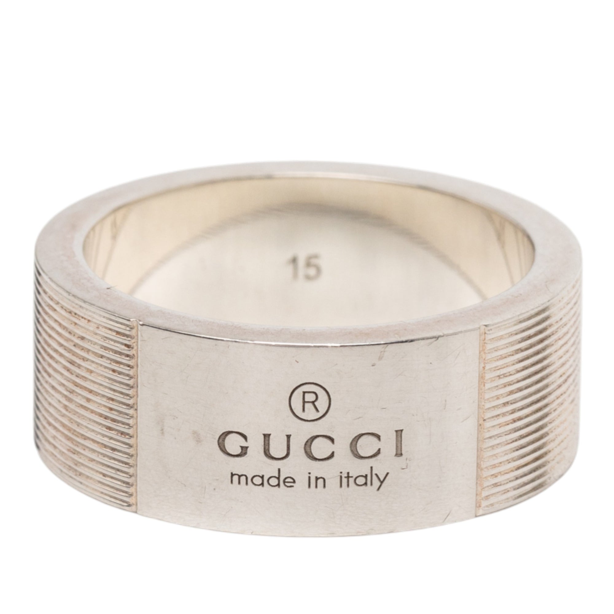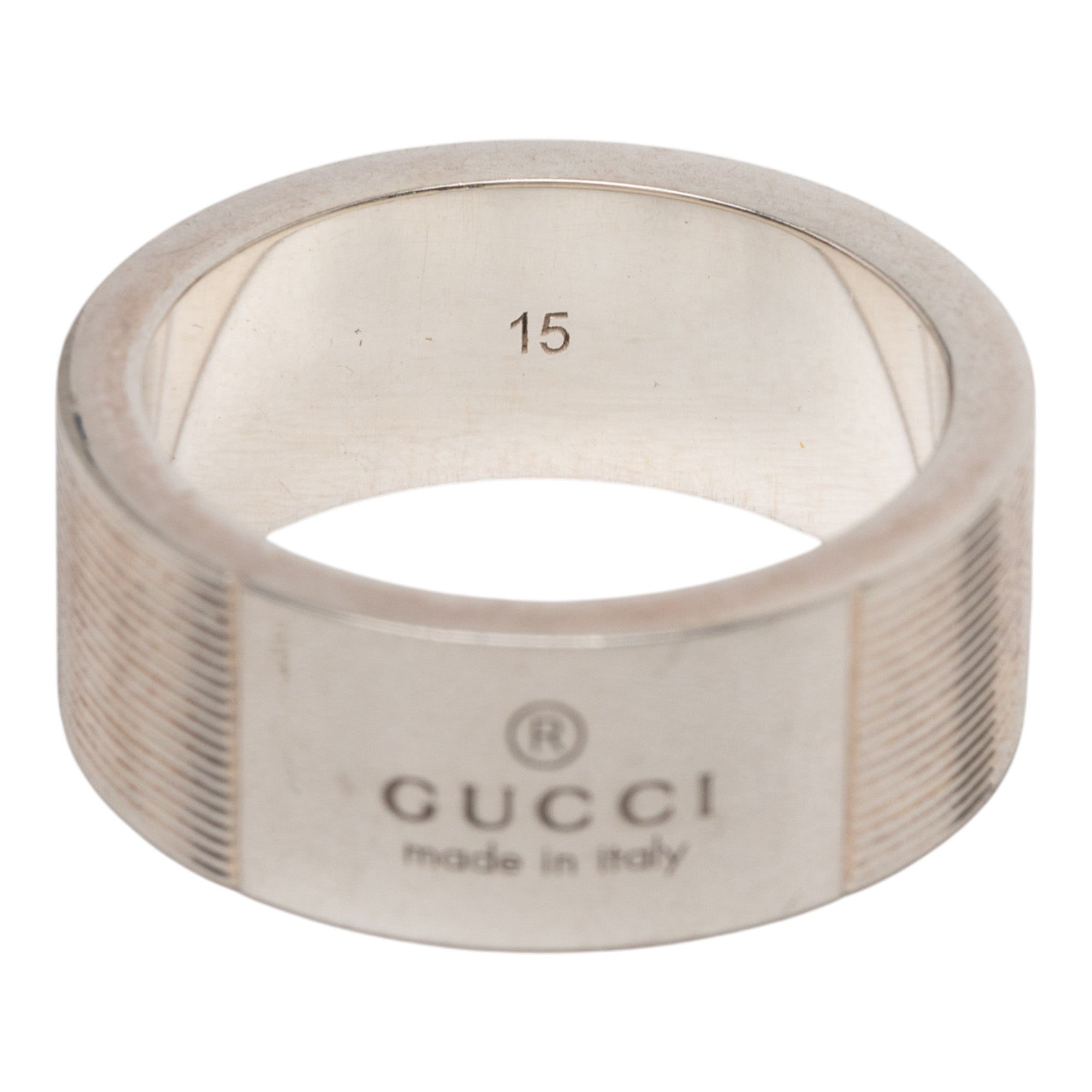 Gucci Sterling Silver Grooved Trademark Band Ring