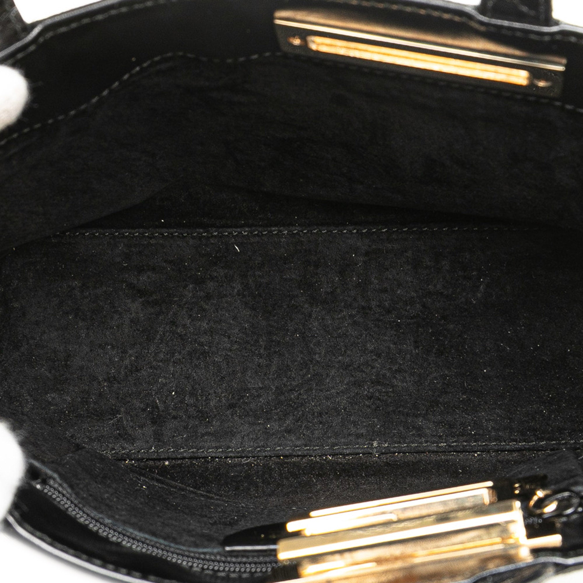 This handbag features a suede body, a gold-tone detail, flat leather handles, an open top with a metal closure, and an interior zip pocket. Inclusion: Dust bag. Retail Price: 650.00