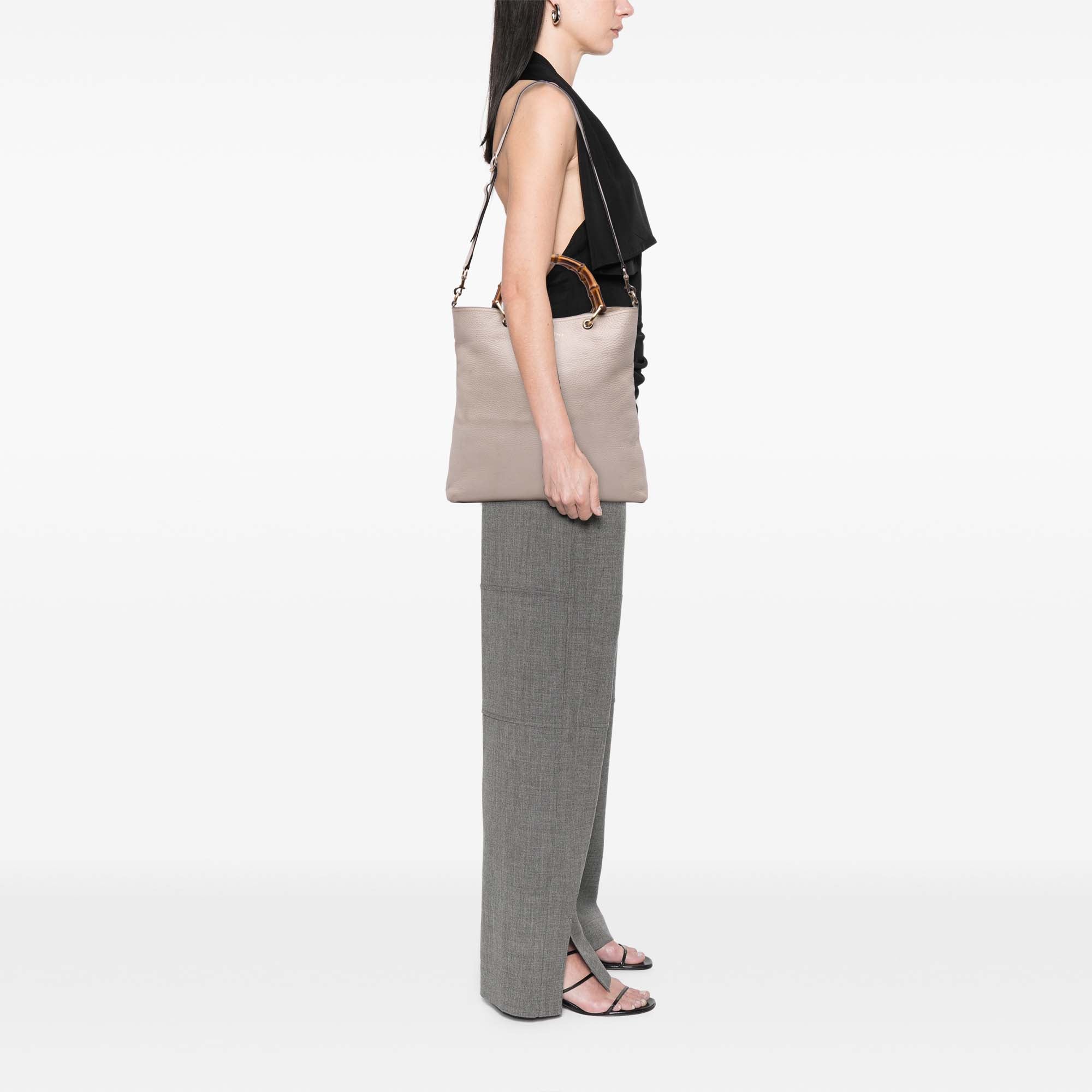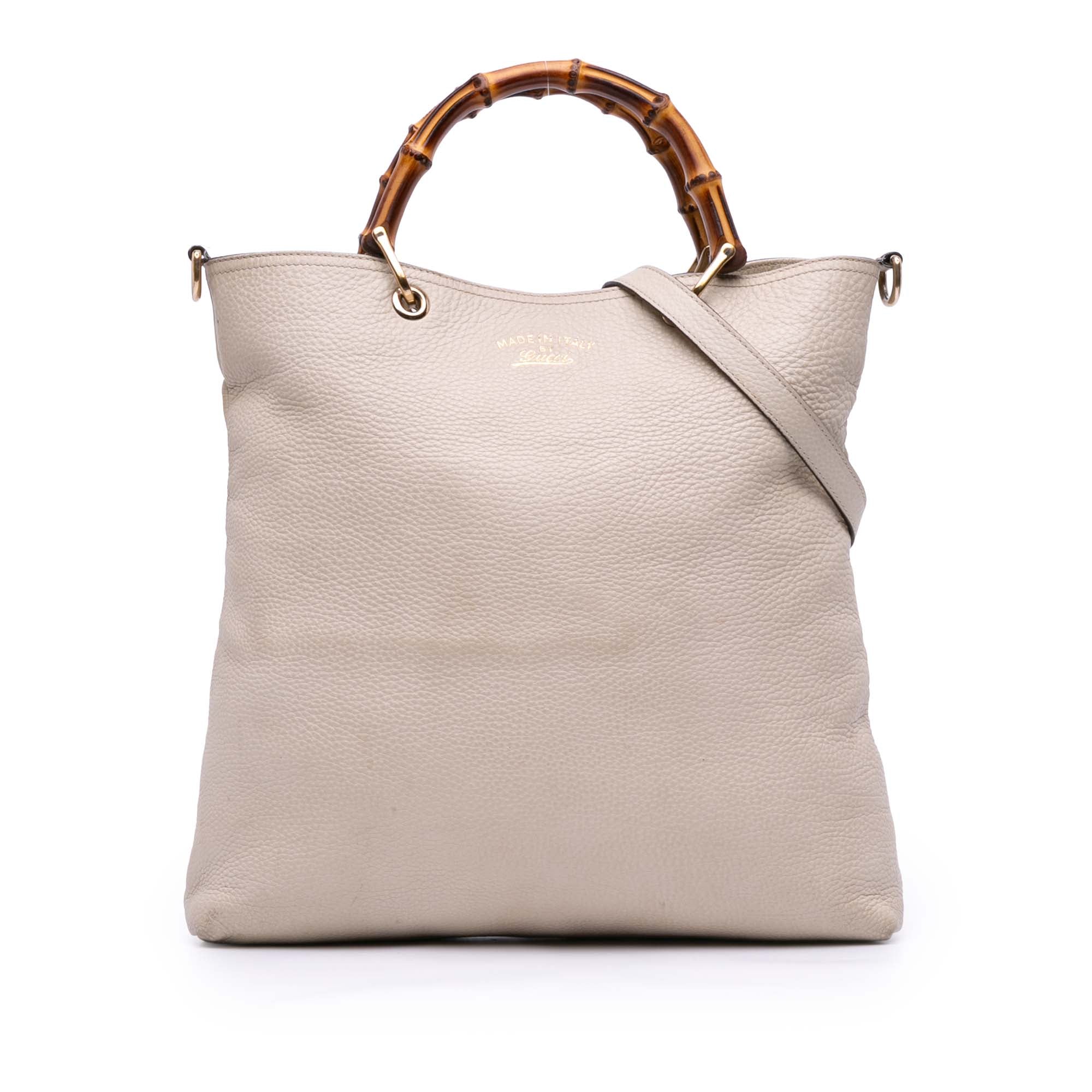 This satchel features a leather body, bamboo handles, an open top with a magnetic closure, and interior zip and slip pockets. Retail Price: 1560.00