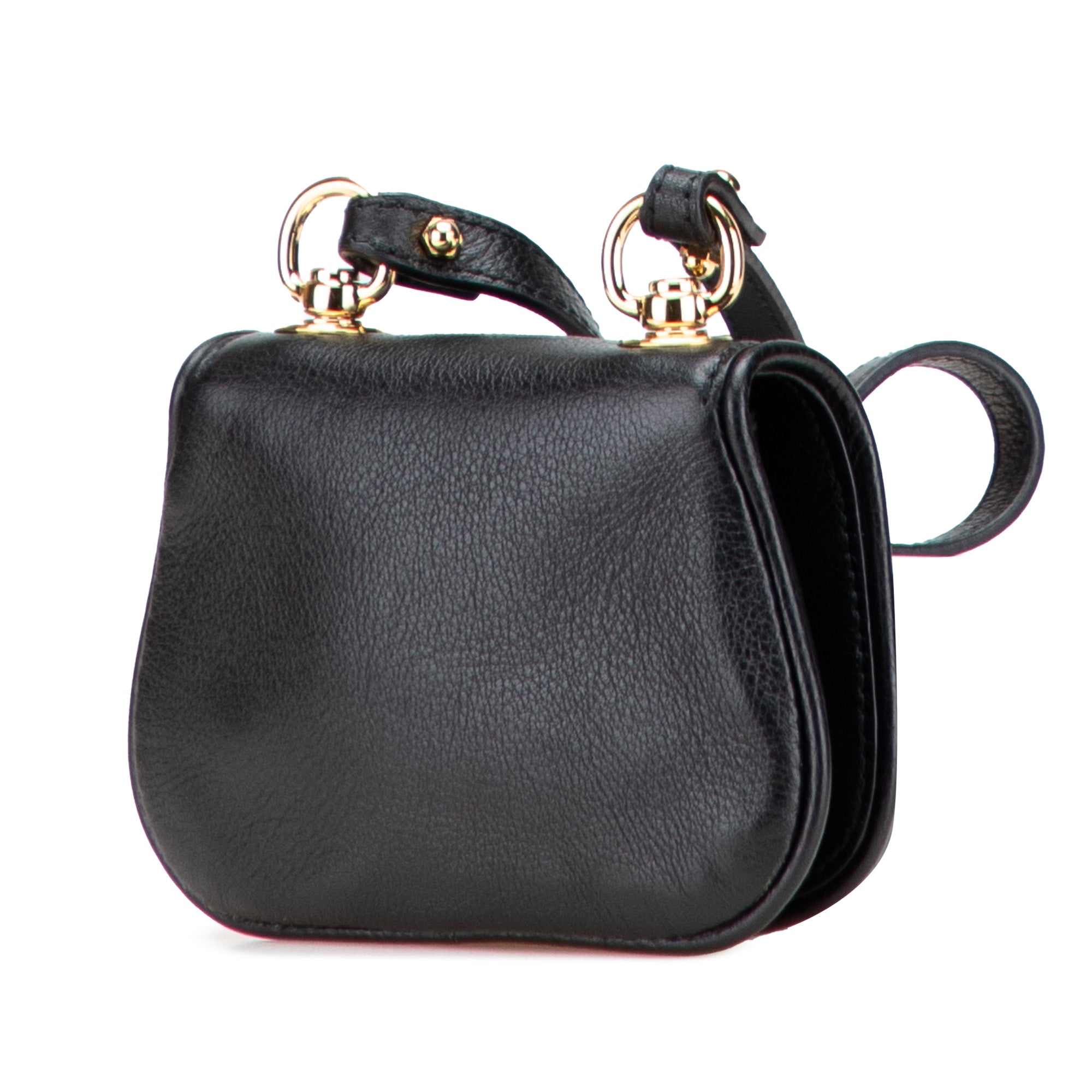 The Blondie Card Case on Strap features a leather body, an adjustable flat leather shoulder strap, and a front flap with magnetic snap closure. Inclusion: box. Retail Price: 1050.00