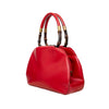 Carry timeless style with this rare Gucci bamboo bag from the 60s. Crafted from red leather, this handbag boasts 3 compartments, including a central one with a golden clip closure. The black leather lining features a zipped pocket with the brand's tassel and 2 open pockets. Finished with golden metal parts and bamboo accents on the handle.