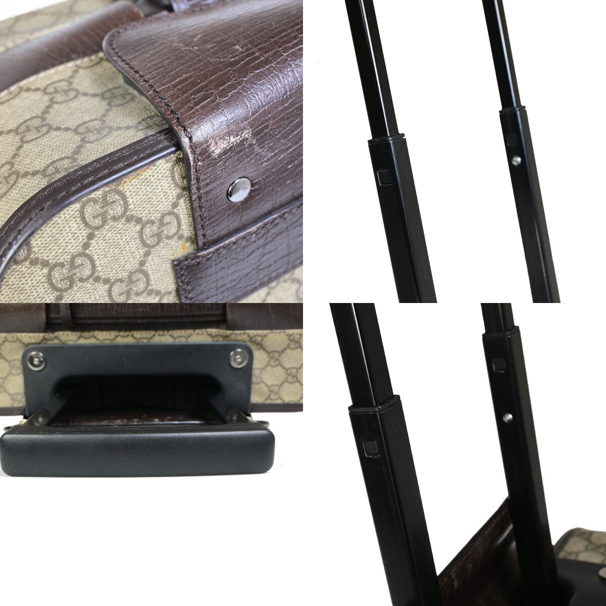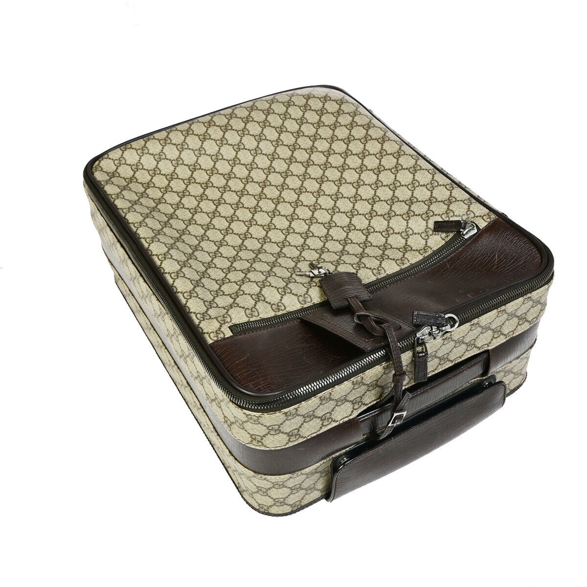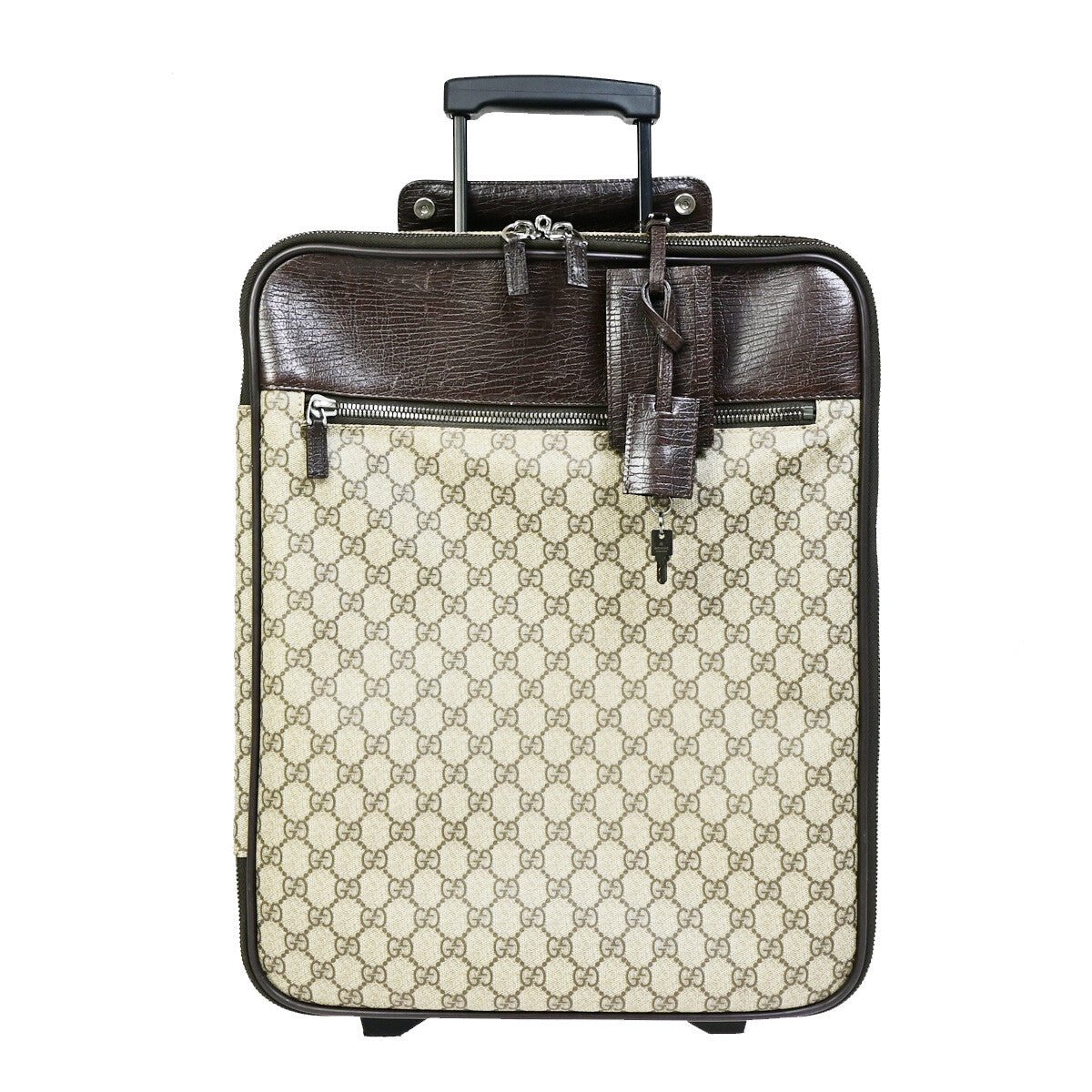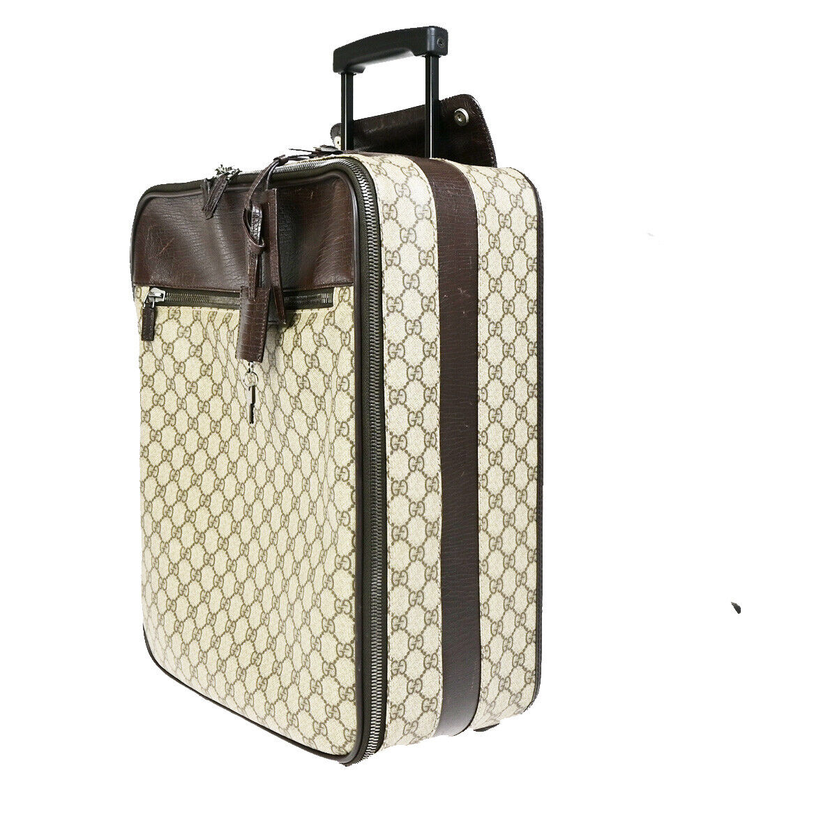 Brand : Gucci Model : Web Trolley Rolling Luggage Style : GG Coated Canvas Serial number : 122303 212792 Inclusions : Name tag,Key*2 (No padlock),Clochette,POCKETS
