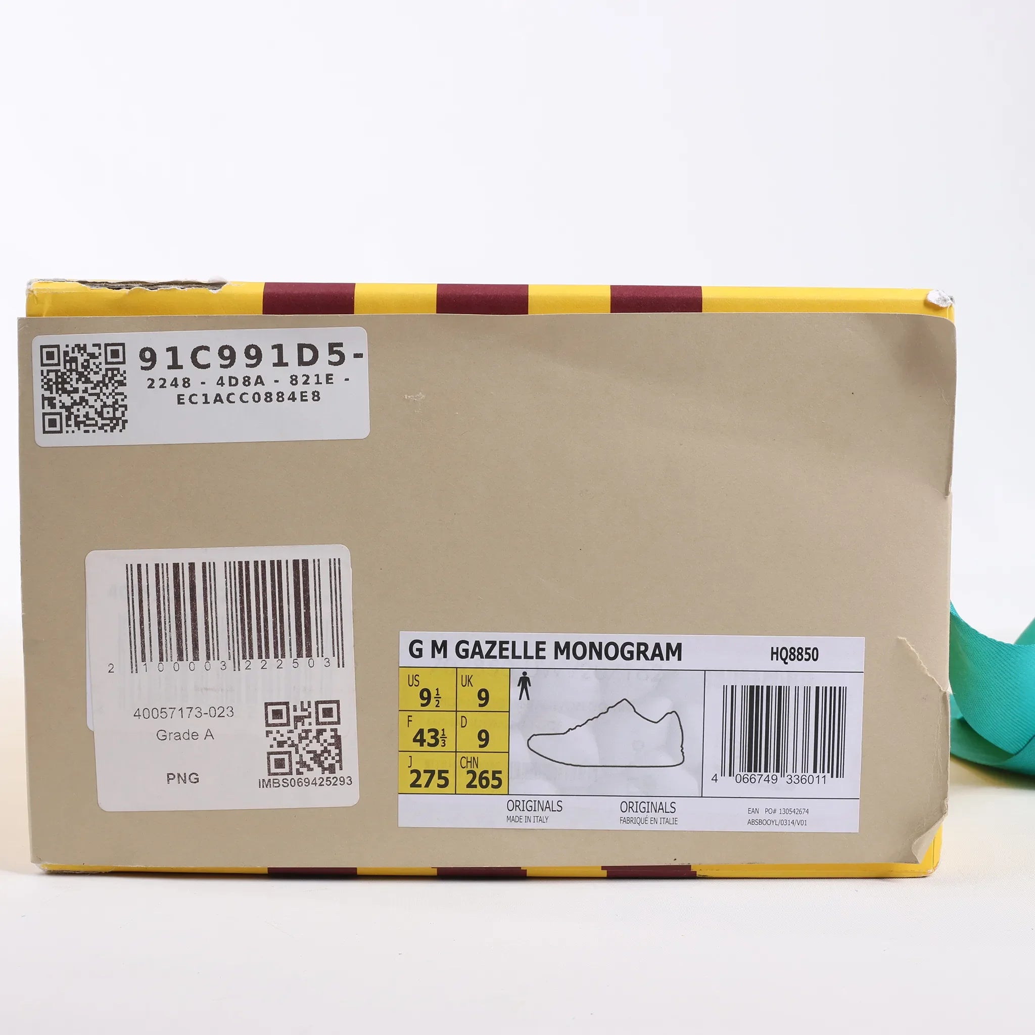 Brand: Gucci x AdidasModel: Gazelle GGSize: 43 EUApprox. lenght: 27.5 cmCondition: Never wornCondition Details: -Colour: Brown, Red, WhiteMain material: Cloth, RubberProduct Code: HQ8850Manufactured In: ItalyComes With: Box, dustbags, extra laces, brand paper