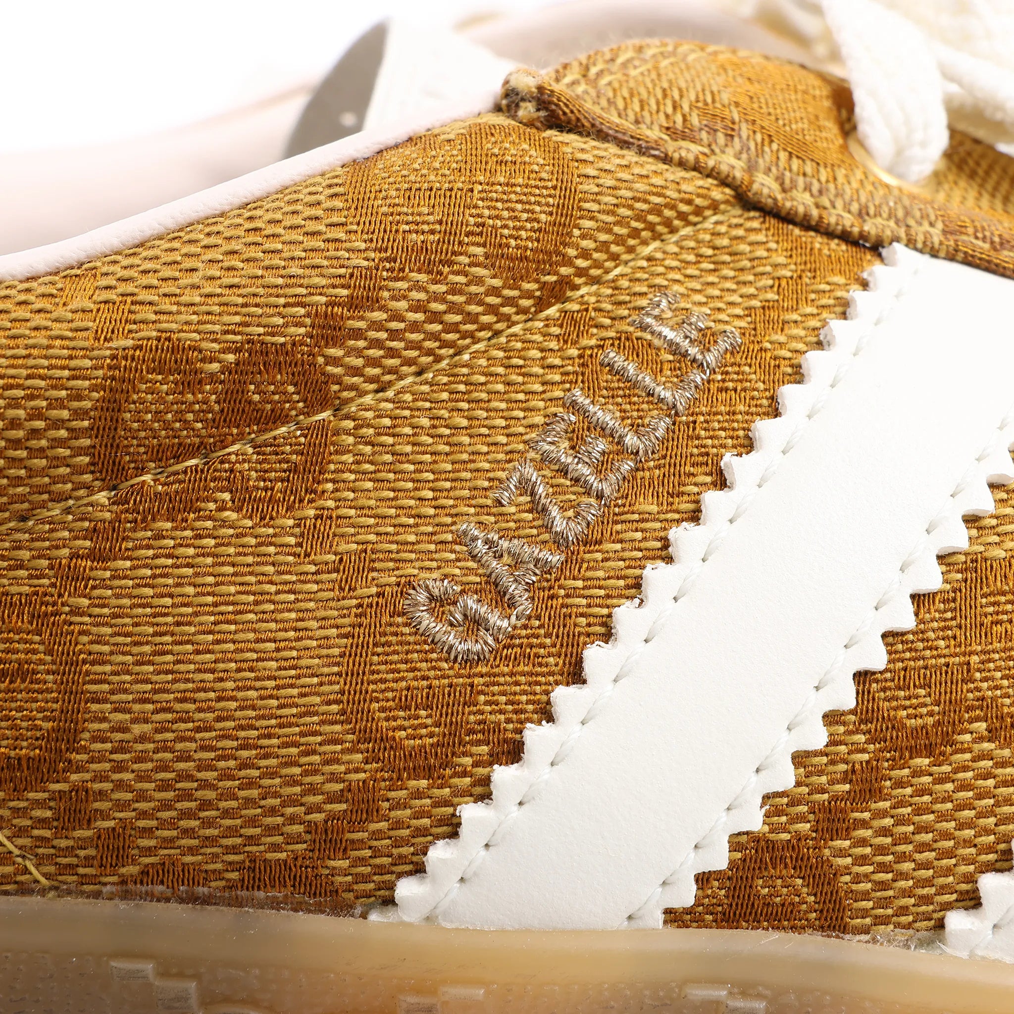 The Gucci x Adidas Gazelle GG Canvas Sneakers in Brown HQ8850 fuse luxury and sport. Crafted from signature GG monogram canvas with Adidas’ iconic three stripes, these limited-edition sneakers bring elevated style to everyday wear.