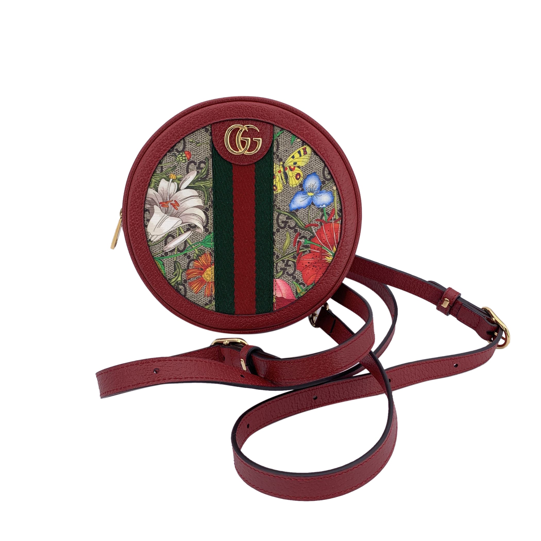 A Celebration Of Gucci's Heritage In Full Bloom, The Small Flora Ophidia Round Shoulder Bag Is Where Timeless Monogram Meets Garden Fantasy. Crafted In The Iconic Beige Gg Supreme Canvas And Adorned With The Archival Floral Print, This Piece Brings The Romance Of The '60s Into a Contemporary Silhouette. Framed In Bold Red Leather Trim, The Round Shape Adds a Playful Twist, While The Leather-and-chain Adjustable Strap Lends a Polished Edge. Inside, a Suede-like Microfiber Lining And Two Credit Card Slots Keep Essentials Neatly Tucked Away. Finished With The Classic 'Gucci - Made In Italy' Tag And Serial Number, This Bag Is a True Collectible - Equal Parts Fashion History And Everyday Charm.