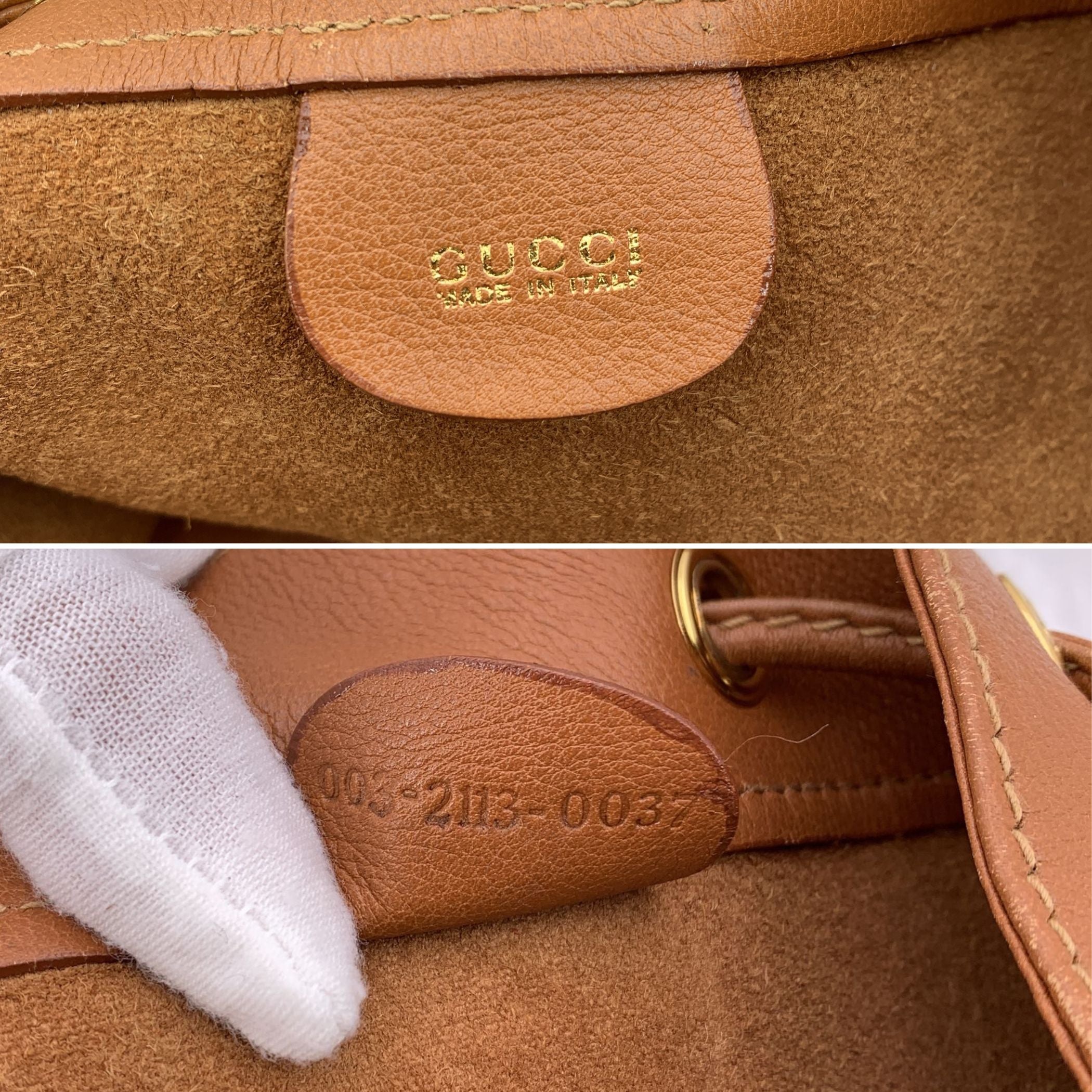 This Vintage Gucci Bucket One-shoulder Backpack Is a Statement Piece That Seamlessly Combines Timeless Elegance With Functional Design. Crafted From Soft, Smooth Calfskin Leather In a Rich Tan Color, It Exudes Luxury With Every Detail. The Bag Features Stunning Gold Metal Hardware And a Signature Bamboo Handle, Adding a Touch Of Classic Gucci Charm. A Drawstring Closure Secures The Top, Giving The Bag a Casual Yet Sophisticated Vibe. Inside, The Suede Interior Reveals a Detachable Zippered Pouch, Perfect For Organizing Small Essentials. The Adjustable Shoulder Strap Offers a Customizable Fit, Making It As Comfortable As It Is Stylish. Inside The Bag, The "Gucci - Made In Italy" Tag Proudly Marks Its Authenticity, With a Serial Number On Its Reverse, Further Affirming Its Genuine Craftsmanship. A True Collector's Item, This Vintage Gucci Backpack Is The Perfect Accessory For Those Who Appreciate Both Style And Heritage.