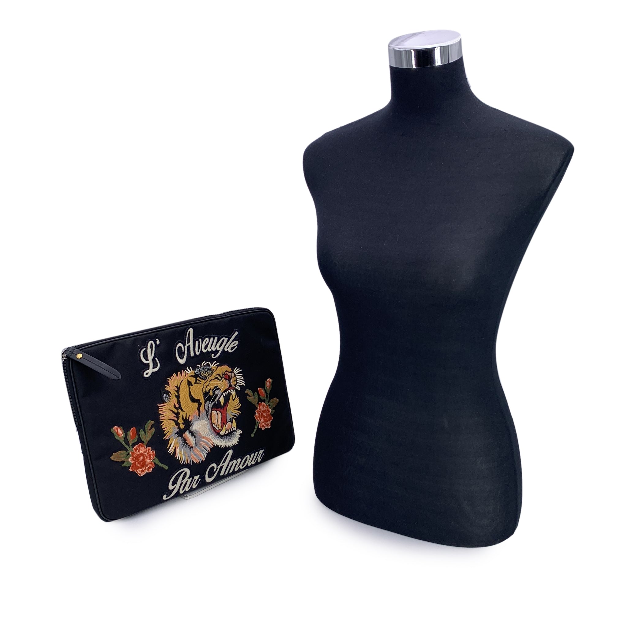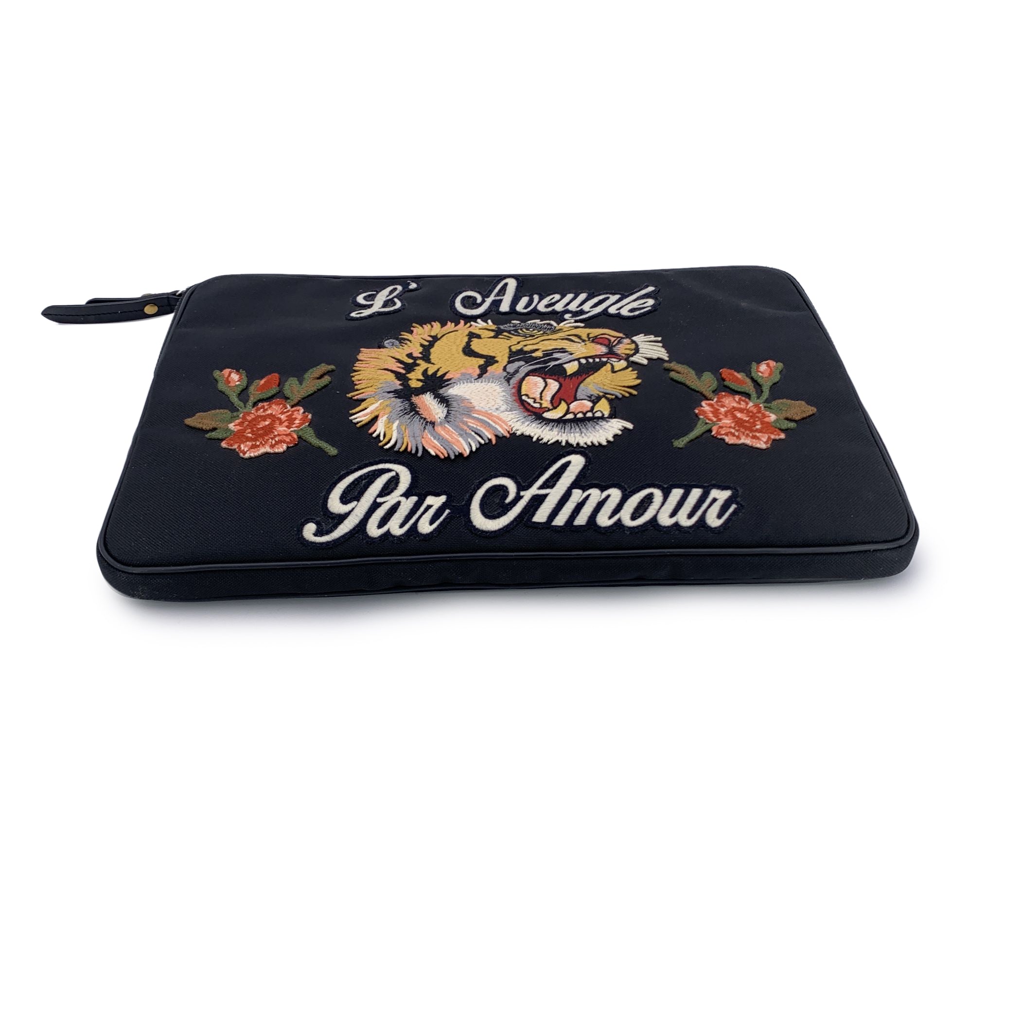 For Those Who Believe Utility Should Never Come At The Cost Of Style, The Gucci L'aveugle Par Amour Computer Case Is The Ultimate Statement Piece. Part Of Gucci's Boldly Romantic Vision Under Alessandro Michele, This Tech Accessory Fuses Fashion And Function With Unapologetic Flair. Crafted In Durable Black Techno Canvas, The Case Is Brought To Life By Vibrant Embroidered Patches-a Fierce Tiger Head Surrounded By Blooming Flowers-capturing The Eclectic Spirit Of Gucci's Modern Era. The Phrase "L'aveugle Par Amour" ("Blind For Love") Anchors The Piece With Poetic Rebellion. A Secure Zipper Closure Keeps Your Laptop Or Documents Safe, While The Interior Features a Classic 'Gucci - Made In Italy' Tag That Speaks To Its Quality And Heritage. Ideal For The Style-savvy Professional Or The Creative On-the-go, This Case Turns An Everyday Essential Into a Bold Personal Statement.
