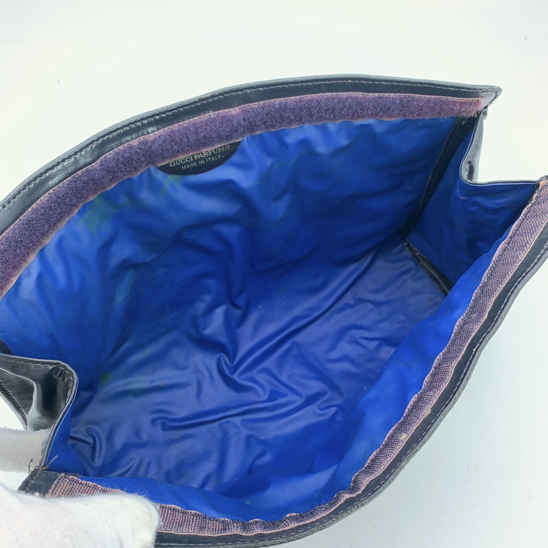 A Timeless Nod To Gucci's Heritage, This Vintage Gucci Monogram Cosmetic Bag Clutch Effortlessly Combines Style And Function. Crafted In Classic Monogram Canvas With Rich Blue Tones, It's Accented With Genuine Leather Trim And The Iconic Blue-red-blue Stripe Detailing That Signals Unmistakable Gucci Flair. The Bag Features An Upper Hook-and-loop Closure For Secure Access And a Waterproof Lining To Keep Your Essentials Protected, Whether Cosmetics, Small Accessories, Or Everyday Necessities. Inside, a "Gucci Parfums - Made In Italy" Tag Confirms Its Authenticity And Italian Craftsmanship. Perfect As a Mini Clutch, Travel Companion, Or Chic Catchall Within a Larger Tote, This Vintage Piece Is a Collectible Accessory That Captures Gucci's Playful Elegance And Enduring Appeal.