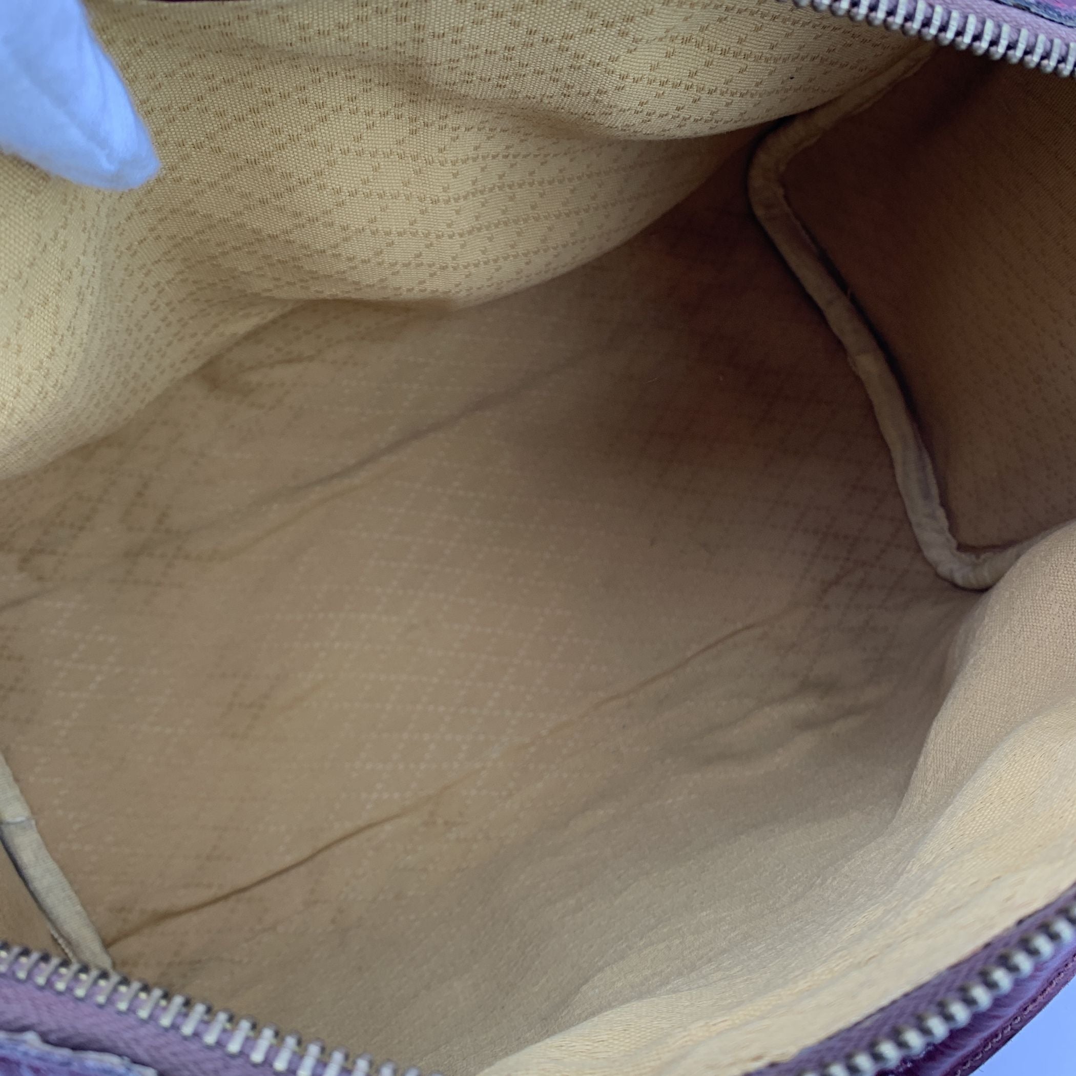 This Beautiful Gucci Boston Bag Is a Timeless Classic That Effortlessly Blends Style With Practicality. Crafted From Burgundy Suede And Leather, The Bag Is Accented With Burgundy Leather Trim And Handles, Creating a Refined And Elegant Look. The Iconic Green/red/green Stripes On Both The Front And Back Give It a Bold, Signature Gucci Touch, Making This Bag Instantly Recognizable. The Upper Zipper Closure Ensures Easy Access To The Spacious Interior, Which Is Lined In a Yellow Diamond Fabric, Adding To The Bag's Sophisticated Feel. Inside, The 'Made In Italy By Gucci' Tag Affirms Its Craftsmanship, Making It a True Collector's Piece. Whether You're Looking For a Chic Everyday Bag Or a Statement Accessory For Special Occasions, This Gucci Boston Bag Is The Perfect Blend Of Luxury, Functionality, And Timeless Design.