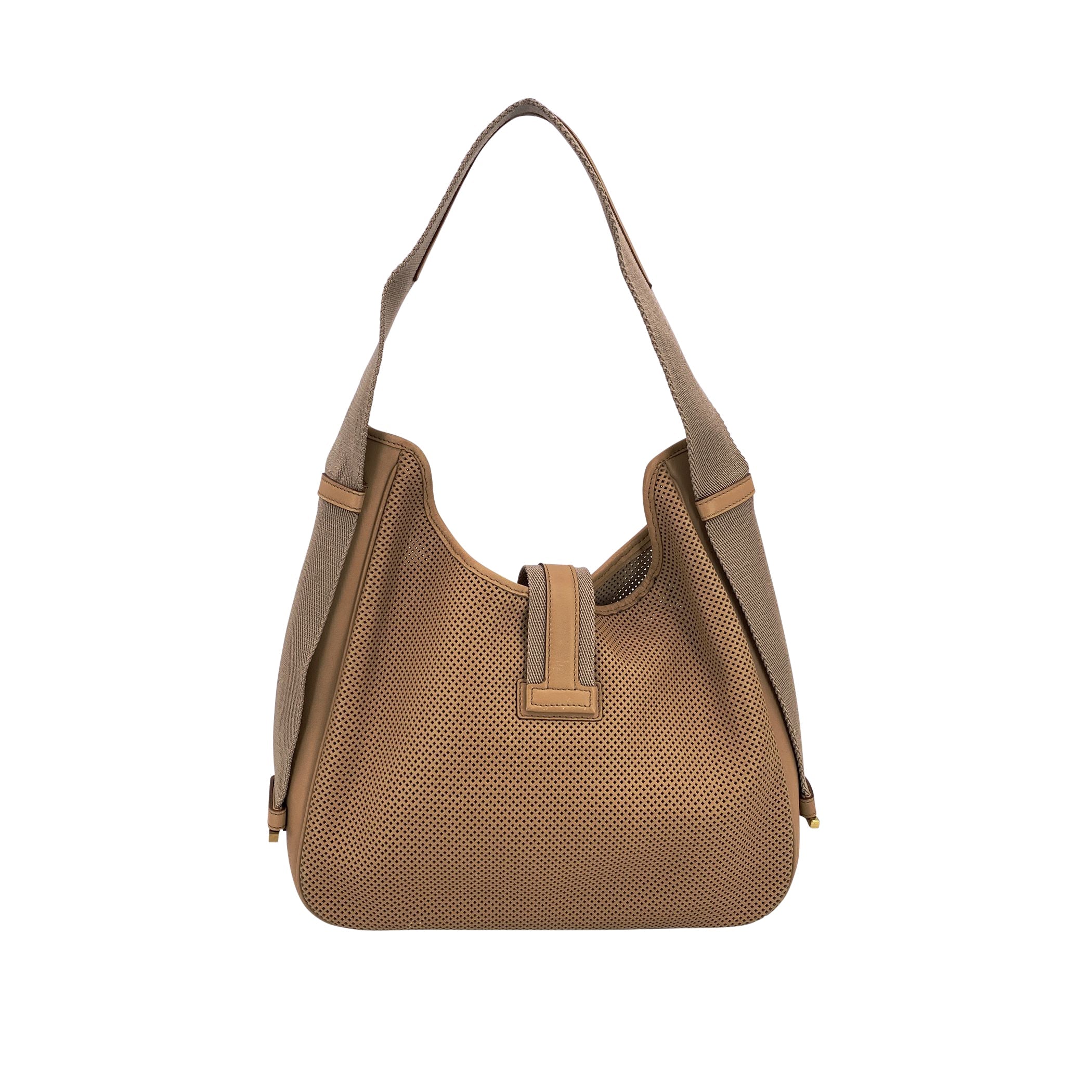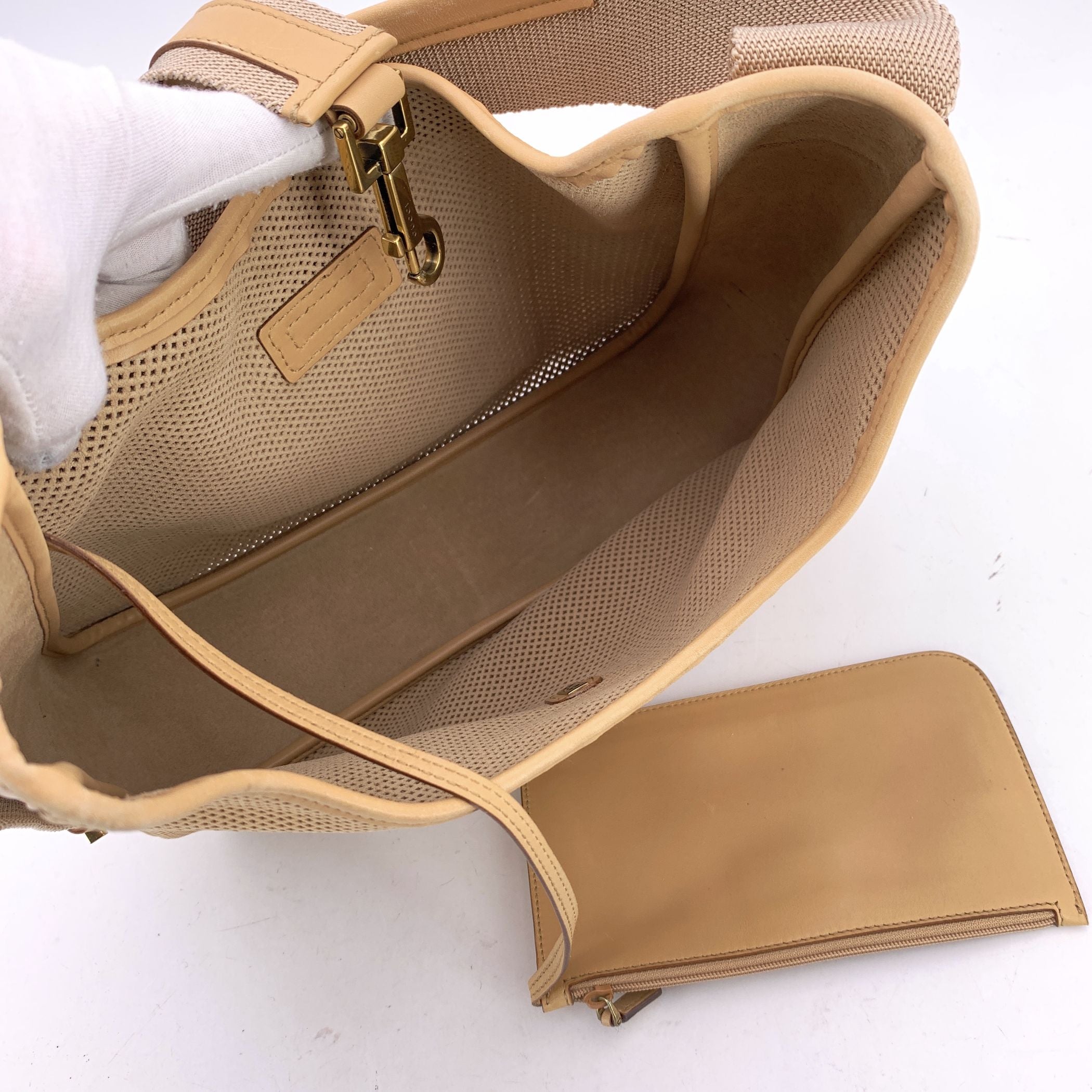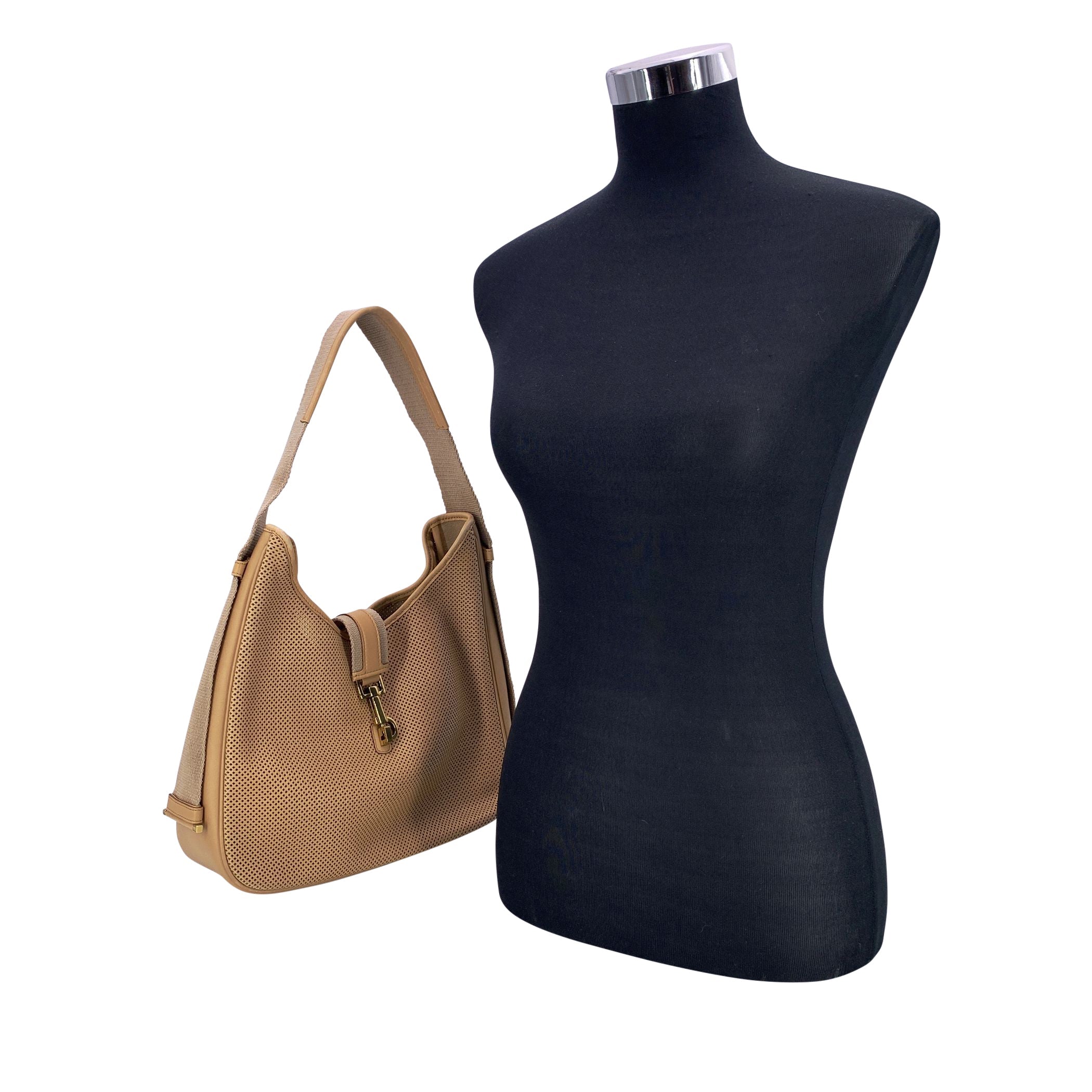 This Gucci Jackie Perforated Beige Hobo Shoulder Bag Is Crafted From Supple Perforated Leather, Giving It a Light, Airy Look With a Modern Twist On The Iconic Jackie Silhouette. It Features a Comfortable Flat Canvas Strap And An Open Top Secured By The Classic Fold-over Strap With Carabiner Closure. The Interior Includes a Removable Leather Zip Pouch, Offering Added Organization And Versatility. A Chic And Practical Everyday Bag With Timeless Gucci Charm.