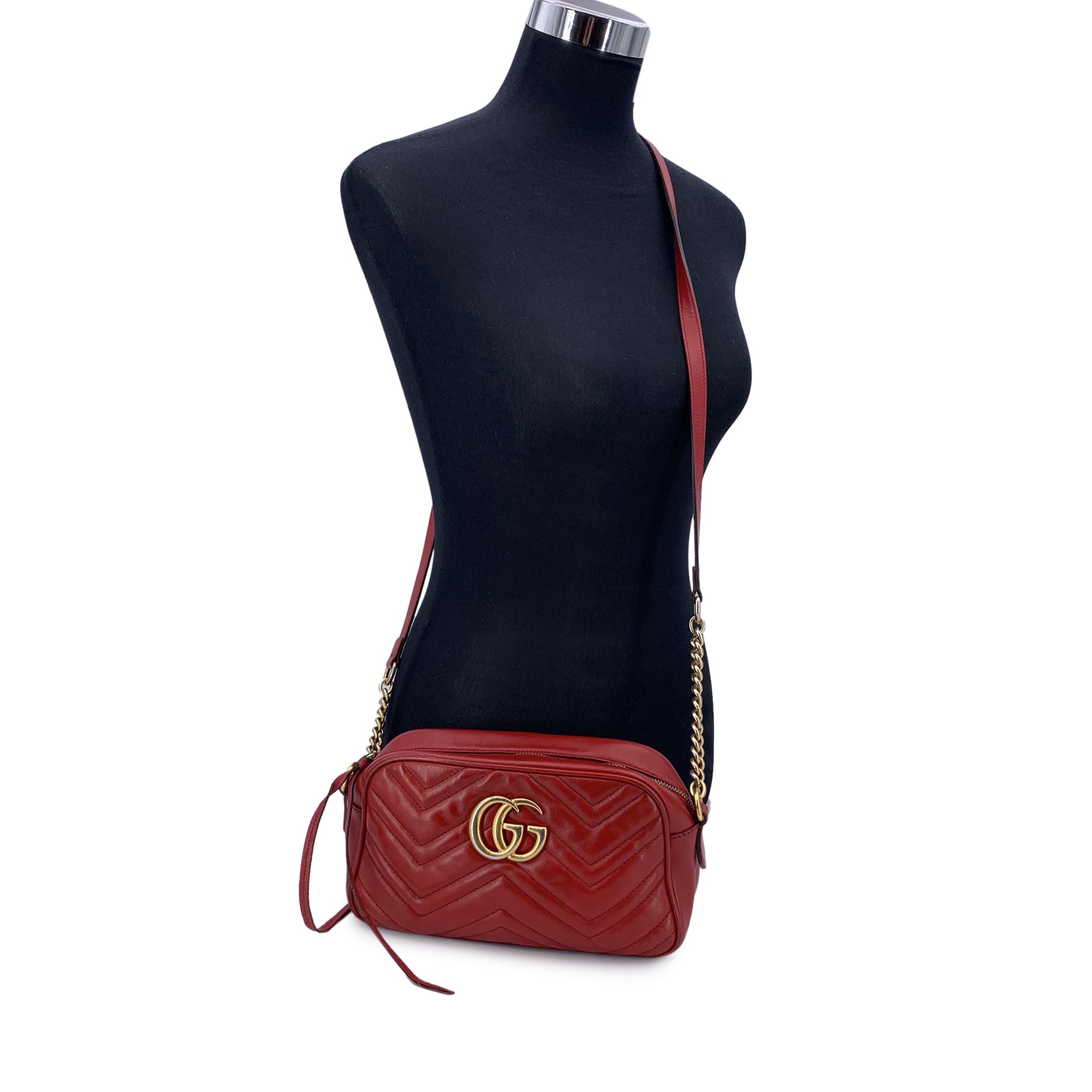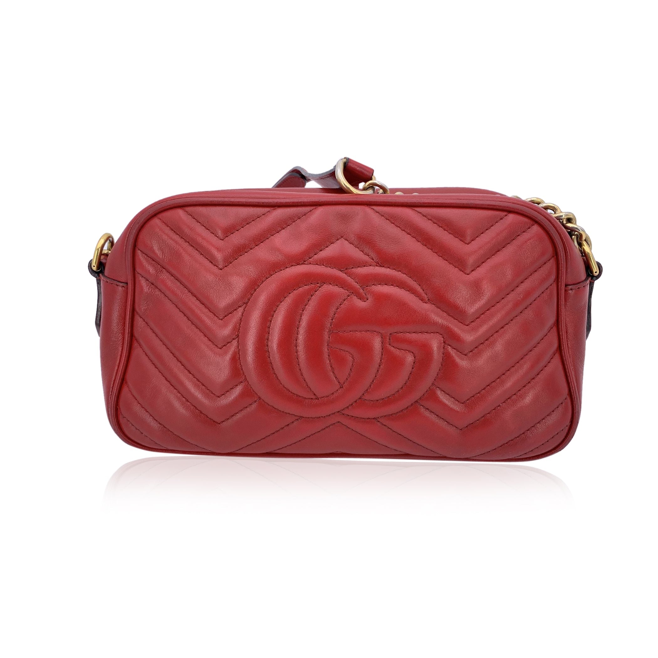 This Beautiful Bag Will Come With a Certificate Of Authenticity Provided By Entrupy. The Certificate Will Be Provided At No Further Cost. Step Into Timeless Italian Elegance With This Gucci Gg Marmont Small Shoulder Bag - a Coveted Icon From The Maison's Celebrated Marmont Line. Crafted In Red Matelassé Soft Leather, The Bag Showcases Gucci's Signature Chevron Motif, Subtly Interrupted By a Stitched Gg Logo On The Back, a Discreet Nod To The Brand's Storied Heritage. At The Front, The Gold-tone Gg Emblem Adds Just The Right Touch Of Bold Luxury, While The Top Zip Closure Maintains The Sleek, Structured Silhouette. The Adjustable Leather And Gold Metal Chain Strap Allows For Versatile Wear - Carry It As a Shoulder Companion Or Wear It Crossbody For Hands-free Chic. Inside, a Soft Microfiber Lining In Suede-like Texture Houses a Convenient Side Pocket, And The Hallmark 'Gucci - Made In Italy' Tag, With The Serial Number On Its Reverse, Confirms Its Authenticity. A Modern Classic With Vintage Soul, This Gg Marmont Small Is The Kind Of Piece That Tells Its Own Story - One You're Invited To Continue.