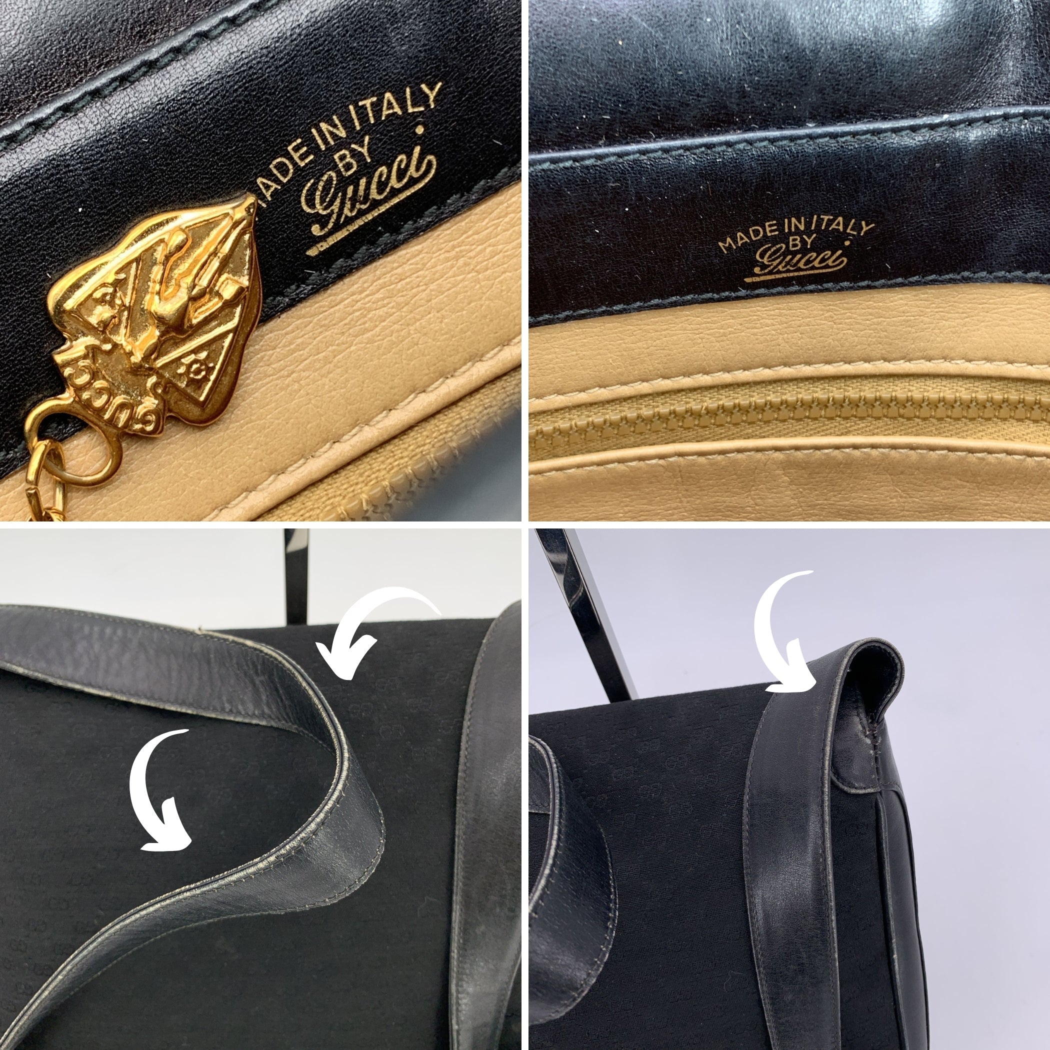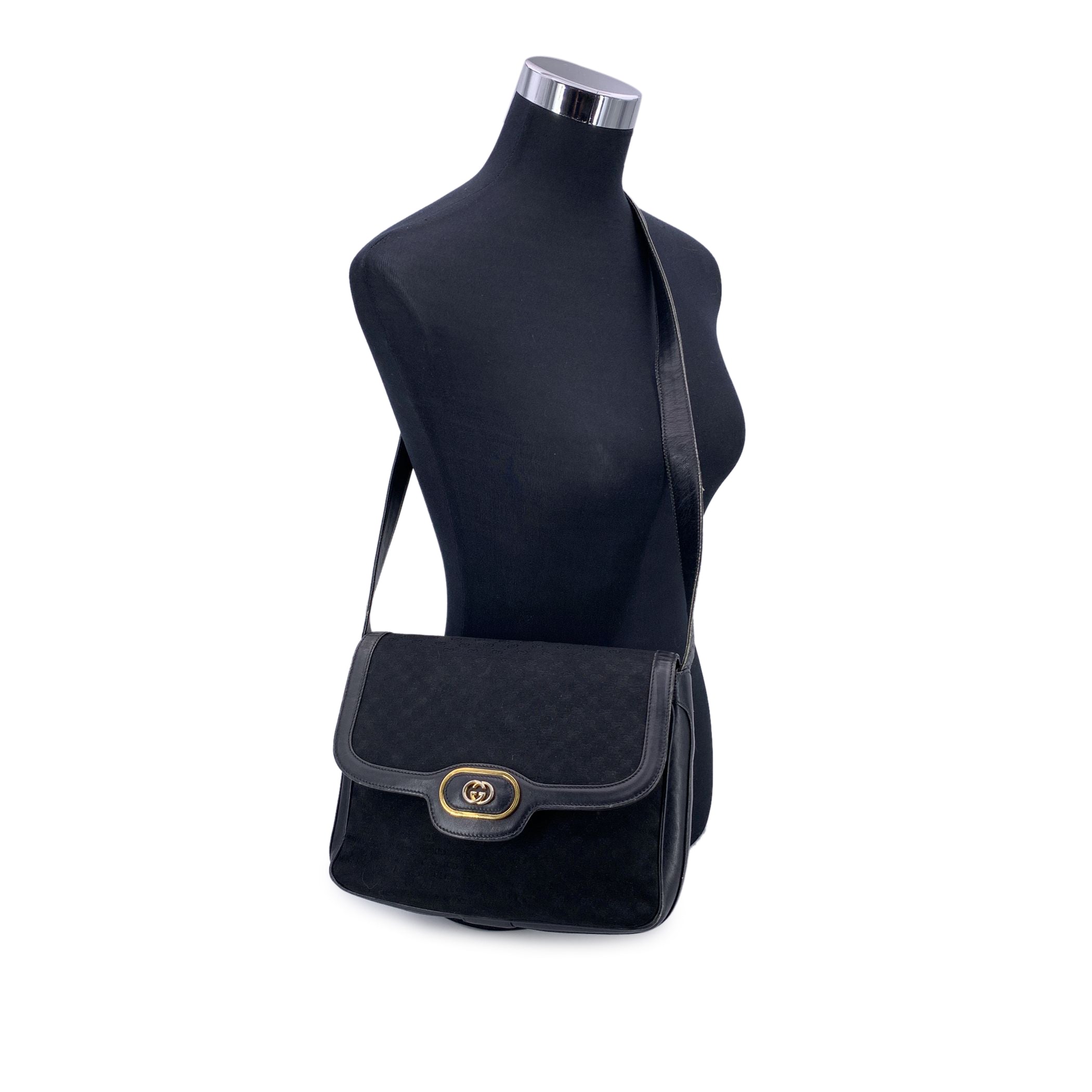 Classic Cool: Vintage Gucci Black Monogram Canvas Shoulder Bag This Vintage Gucci Shoulder Bag Is a Sleek Example Of Timeless Italian Design, Combining Subtle Luxury With Everyday Elegance. Crafted From Black Monogram Canvas With Smooth Black Leather Trim And a Matching Adjustable Shoulder Strap, It's a Versatile Piece That Transitions Effortlessly From Day To Evening. The Front Flap Is Secured With a Magnetic Button Closure, Topped Off By a Gleaming Gold Metal Gg Logo-a Bold Yet Refined Touch Of The Gucci Legacy. Inside, The Bag Is Lined In Beige Leather And Features a Side Zip Pocket For Your Essentials. Stamped With 'Made In Italy By Gucci' On The Interior, This Bag Is a Beautiful Representation Of Vintage Gucci Craftsmanship. Understated, Classic, And Endlessly Wearable, It's The Kind Of Piece That Brings Both History And Style To Any Collection.