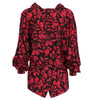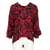 Guy Laroche 2000s red and black silk blouse with floral print. V-neck, button closure on the back.