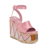 Where patterns meet luxury for a timeless geometrical look. Hand-crafted embroidery, glass beads, and the cutest shades of pink. With The Lust Bead Petal Satin you’ll blossom from a wannabe to a fashion icon. Cross over ankle strap sandal with buckle fastening coated in leather. Light weight cork wedge covered with hand-crafted embroidery on nappa leather. Remarks: There are some signs of wear.