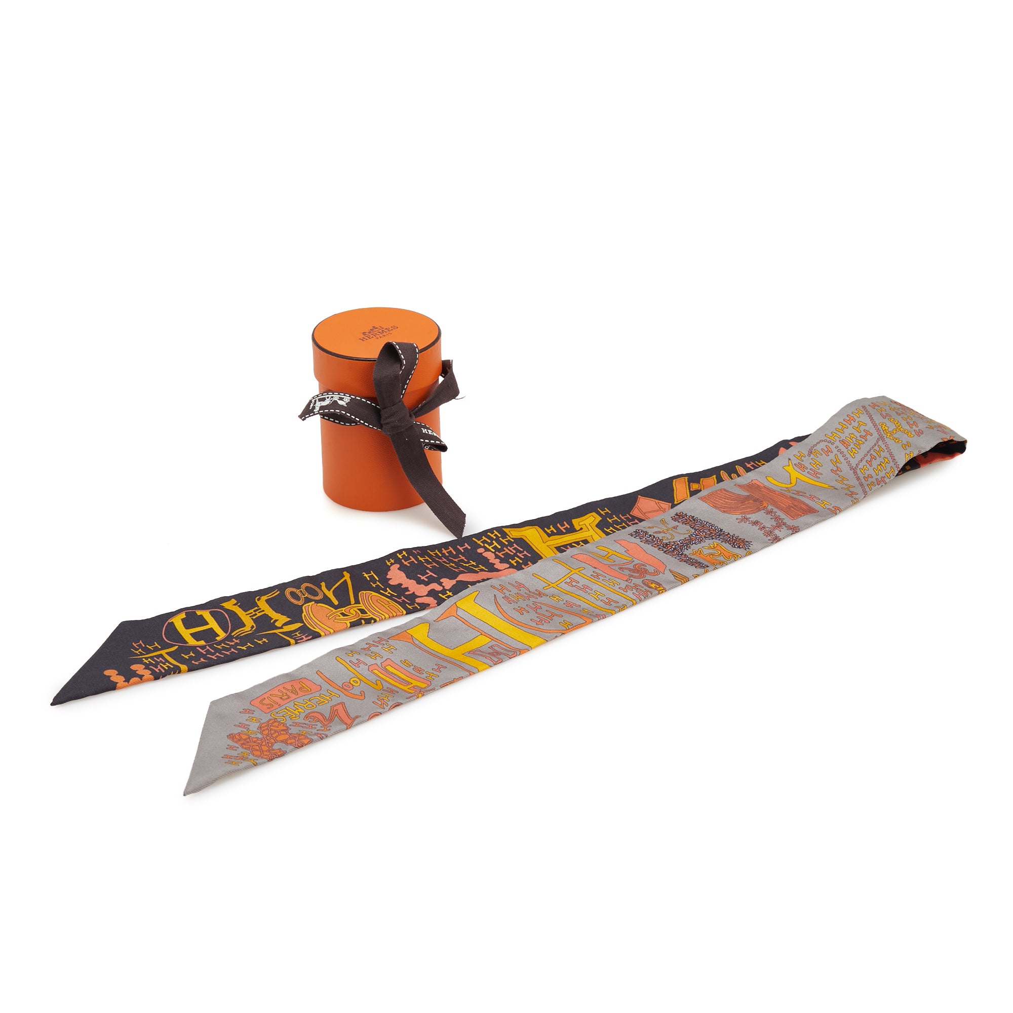 This twilly scarf features the 1001 H print on 100% silk. Inclusion: box. Retail Price: 450.00