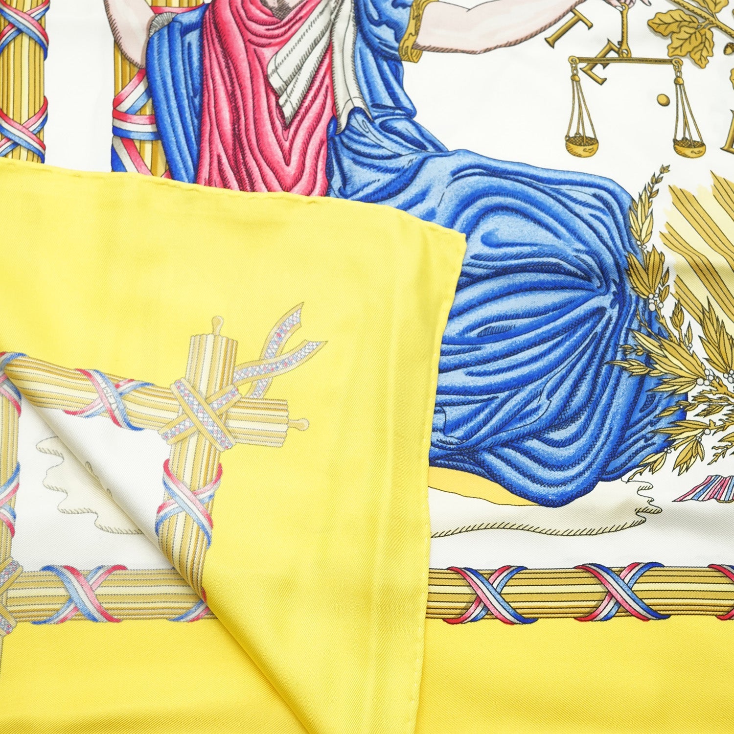 1789 Liberte Egalite Fraternite Republique Francaise Silk Carre 90 Yellow SilkHeight: 89cmWidth: 87.5cmStain: Minor stains on the yellow partWorn: Minor signs of wearOdor: No odor presentSKU: 7040127