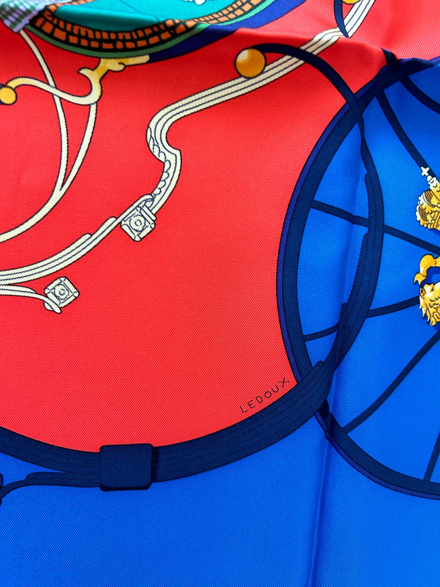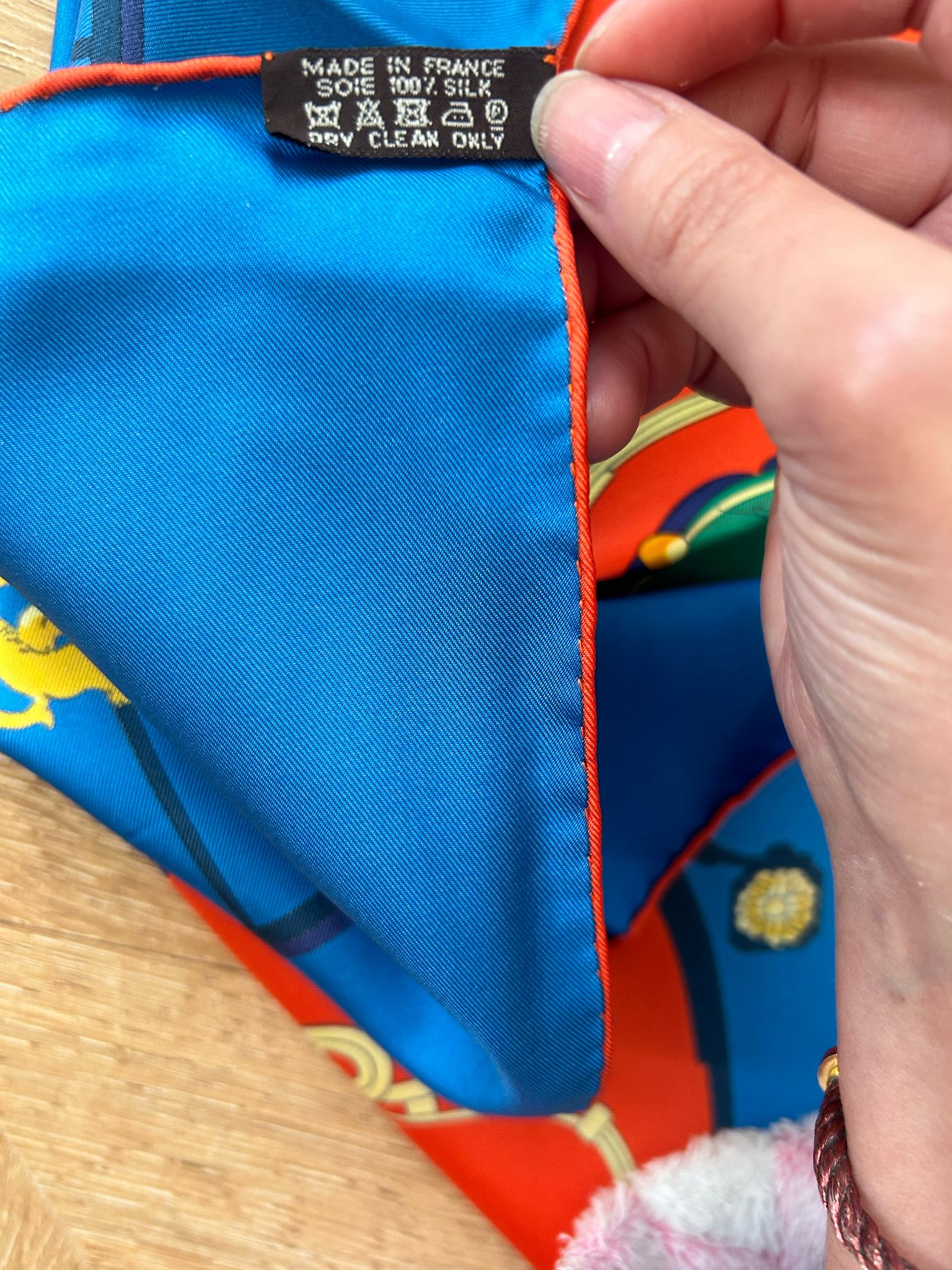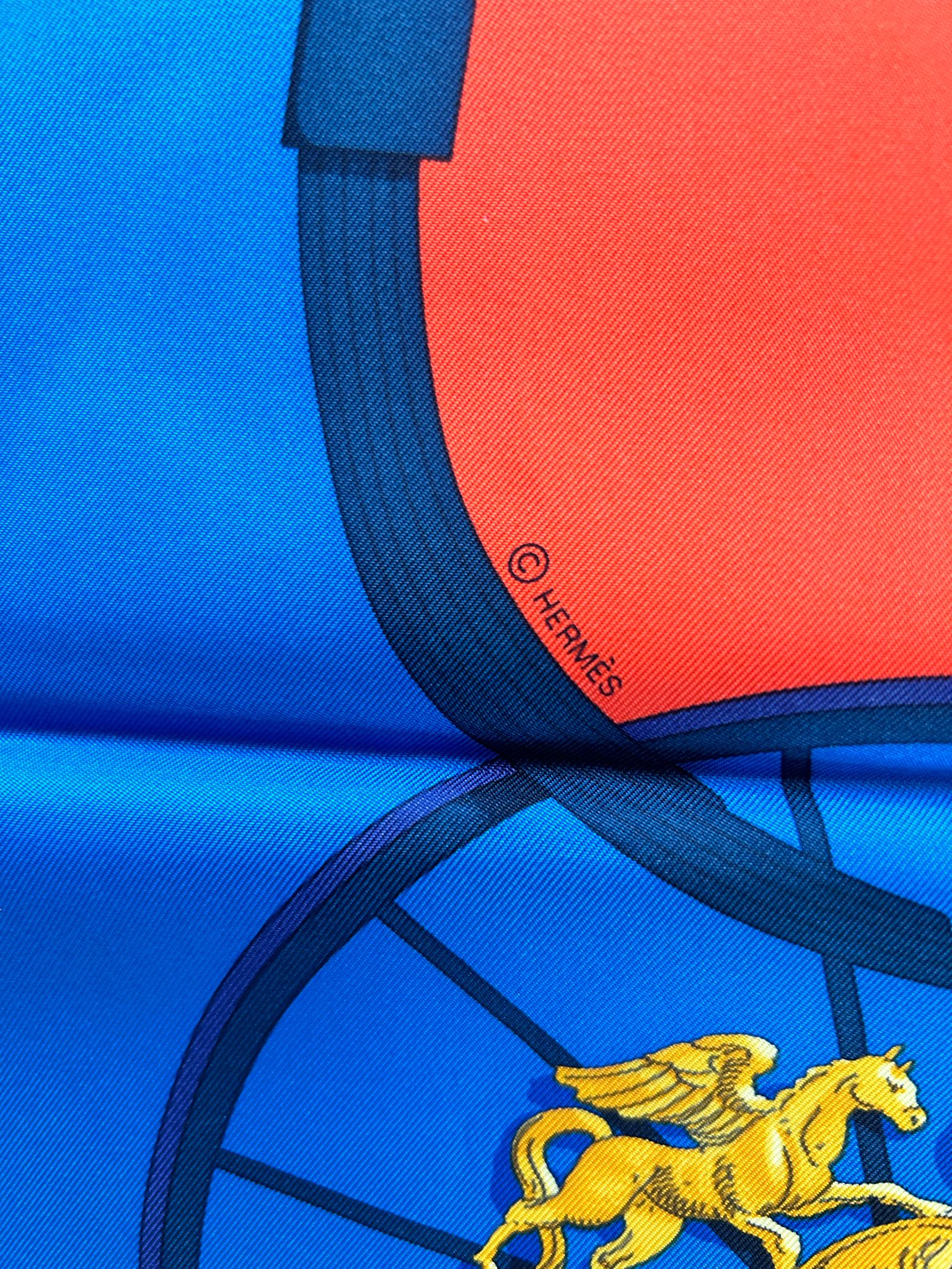 90cm silk square from Hermès. Multicolored. Springs model. A tiny trace but invisible worn otherwise very good condition. Sold individually