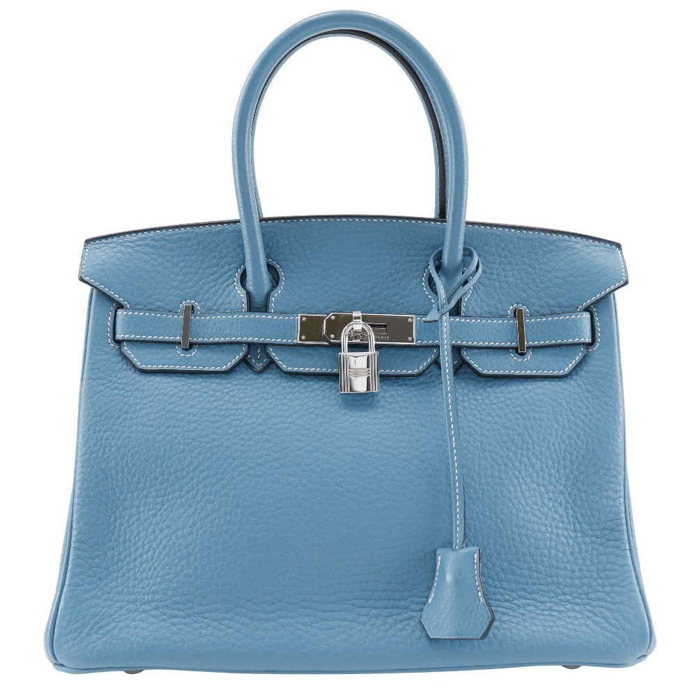 Brand : Hermes Model : Birkin Handbag Style : Blue Clemence with Palladium Hardware Serial number : Square H Inclusions : Dust bag、key、Cadena、Clochette