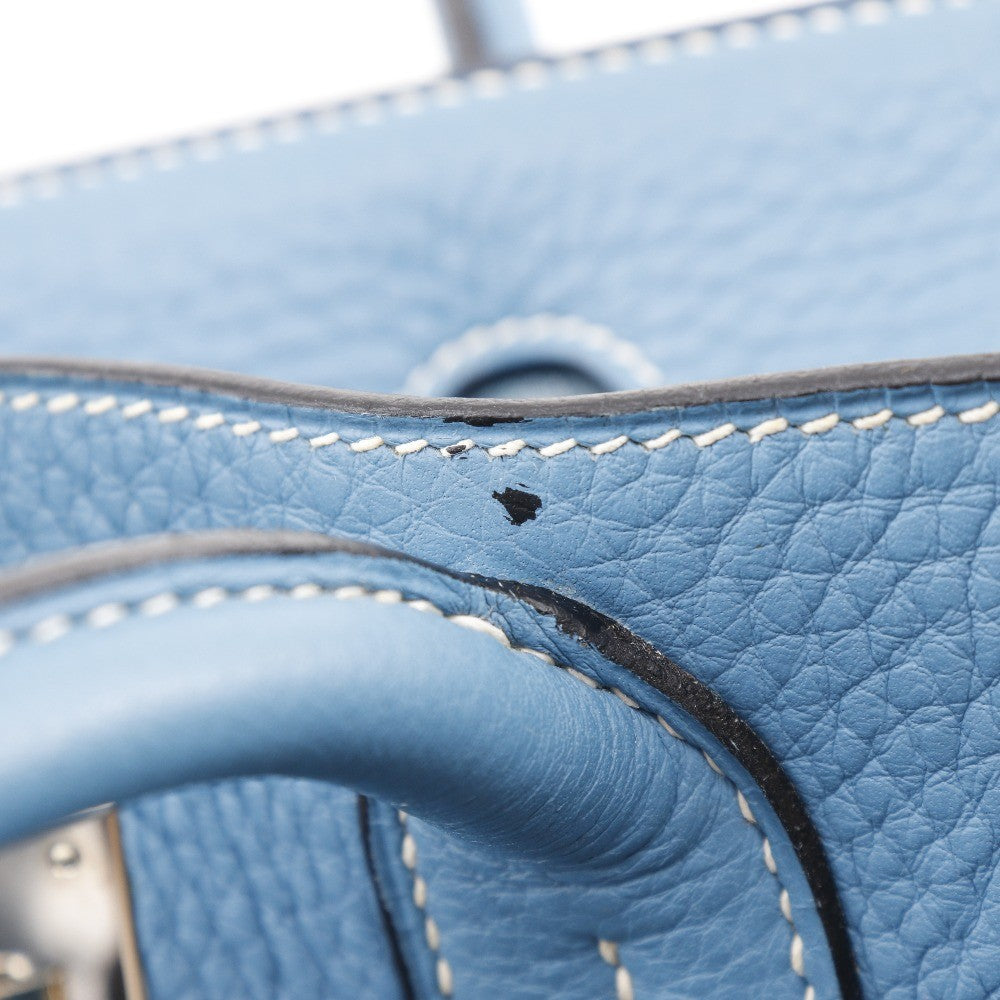 Hermes Birkin Handbag Blue Clemence with Palladium Hardware