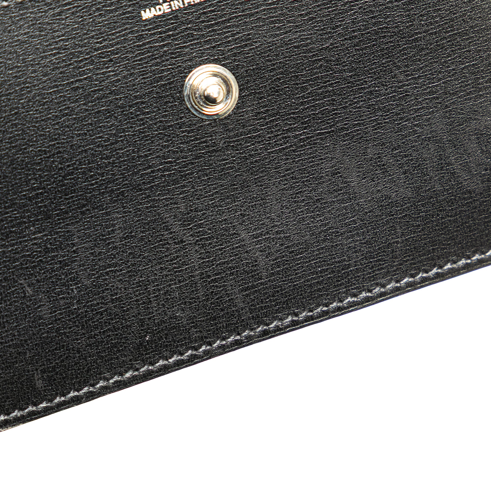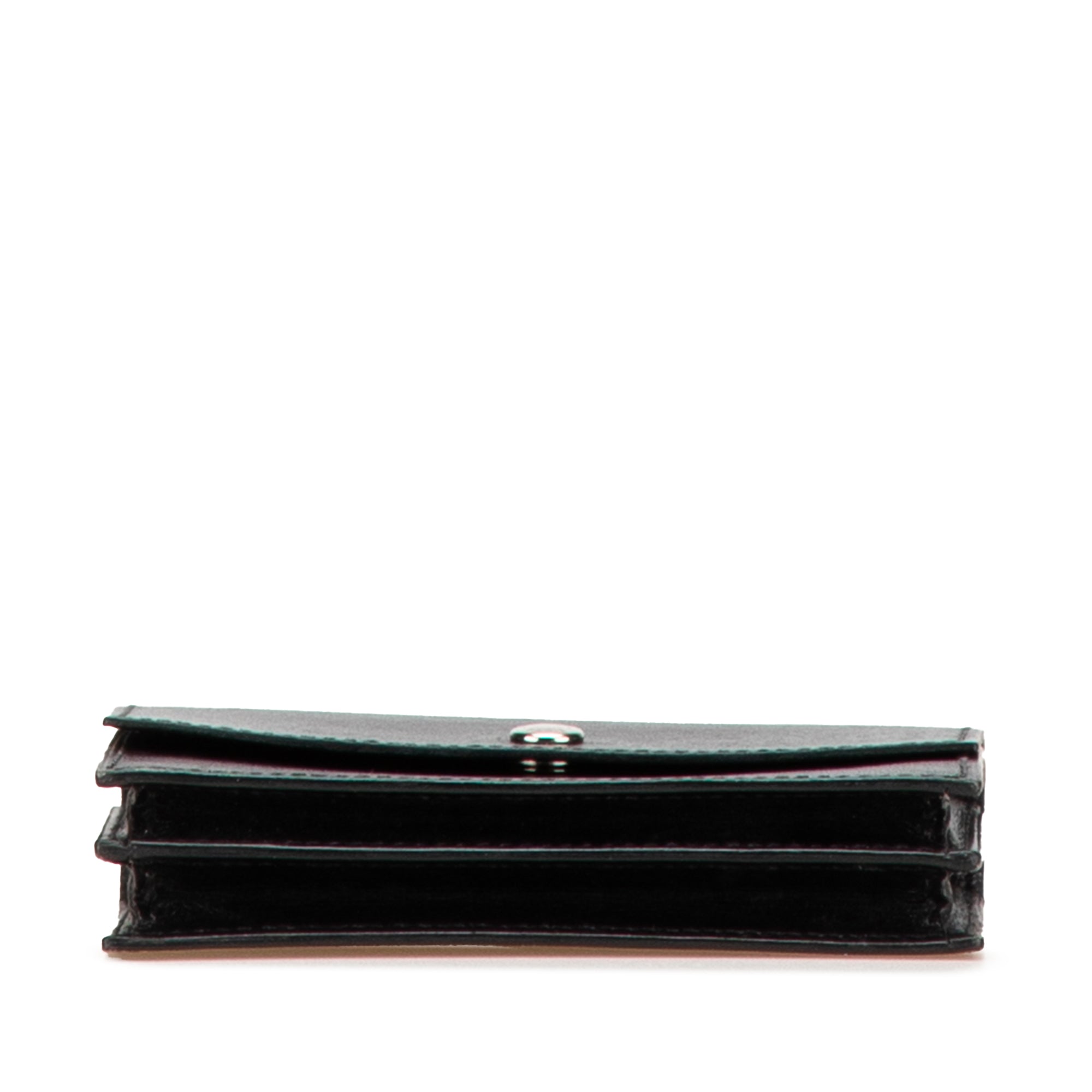 This card holder features a leather body, a front flap with snap closure, and interior slip compartments, Retail Price: 857.00