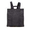 This backpack features a canvas body, a flat top handle, an adjustable flat back shoulder straps, an open top with snap button closure, exterior front slip pockets, and an interior slip pocket. Retail Price: 1500.00