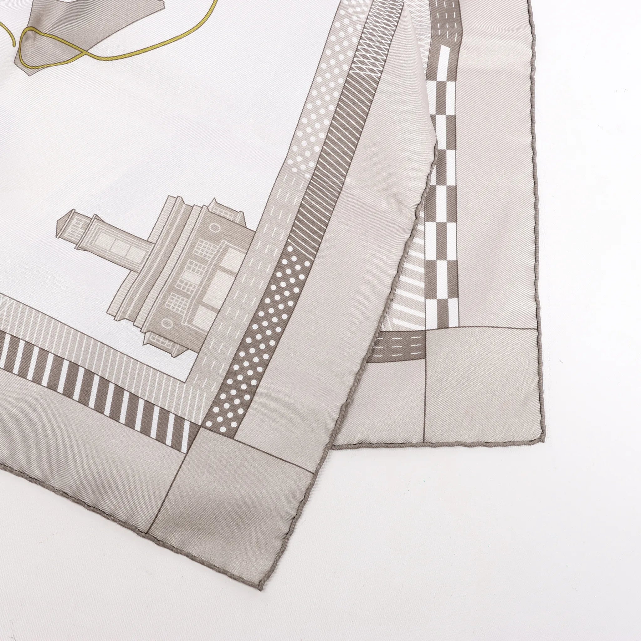 Brand: HermesModel: Carre 90Size: 90x90 cm Condition: Never wornCondition Details: -Main Colour: GrayColours: BeigeMain material: SilkManufactured In: FranceComes With: -