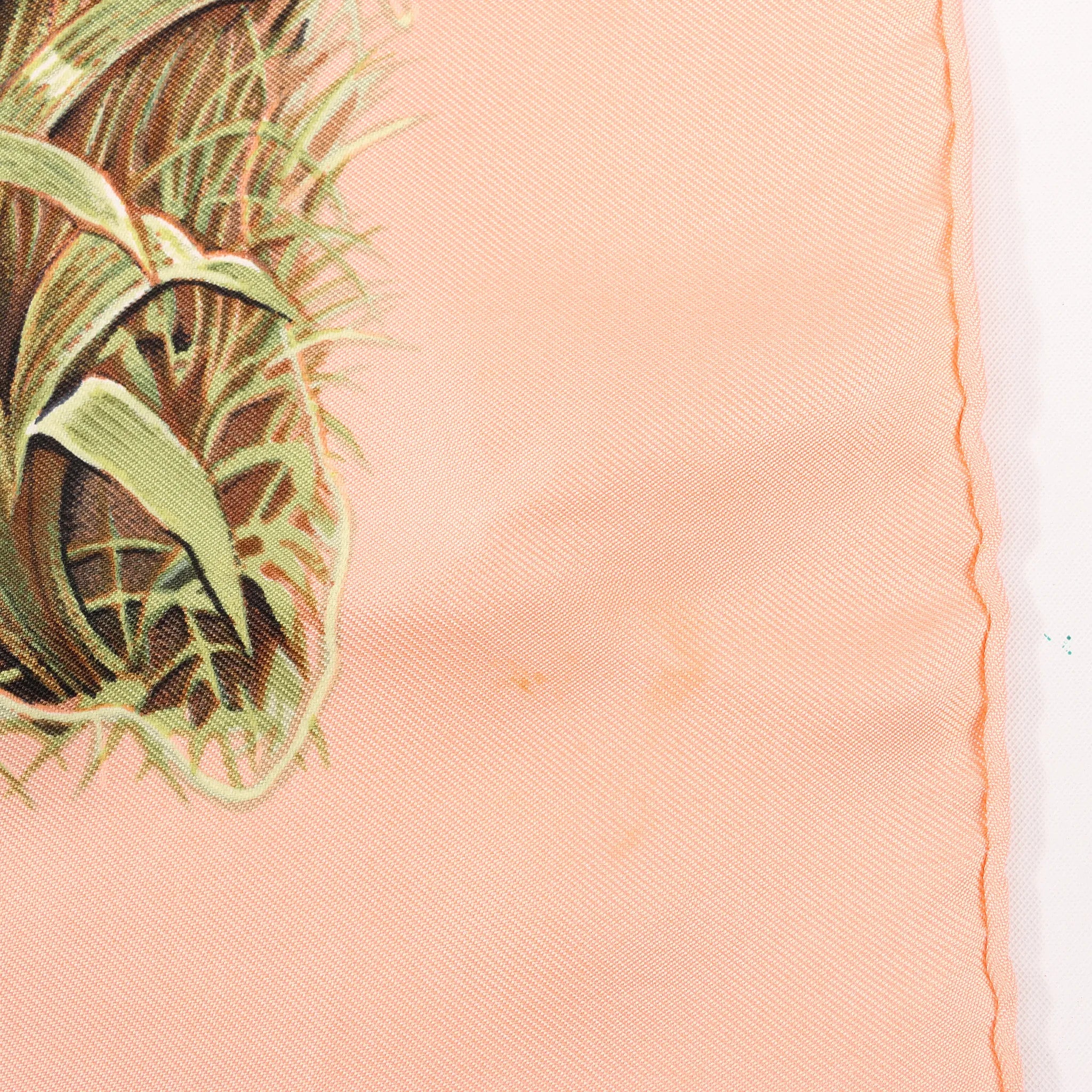 Brand: HermesModel: Carre 90Size: 90x90 cm Condition: ExcellentCondition Details: Gently worn, has small stains - see photos.Main Colour: PinkColours: Green, BrownMain material: SilkManufactured In: FranceComes With: -