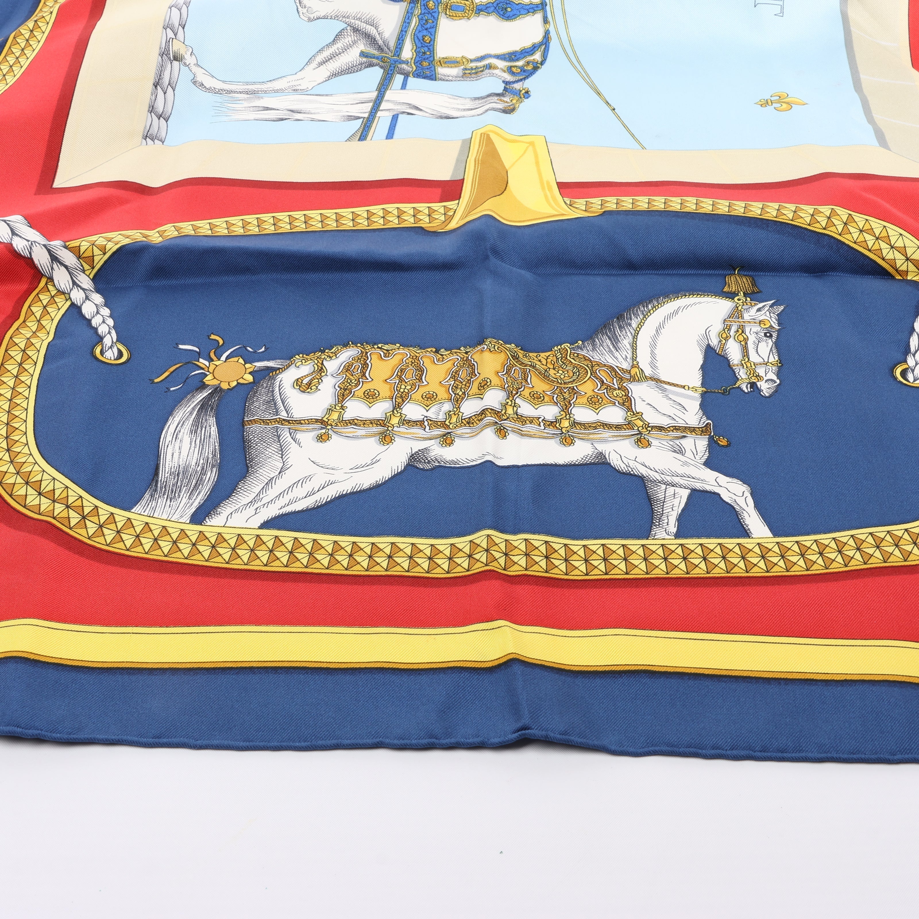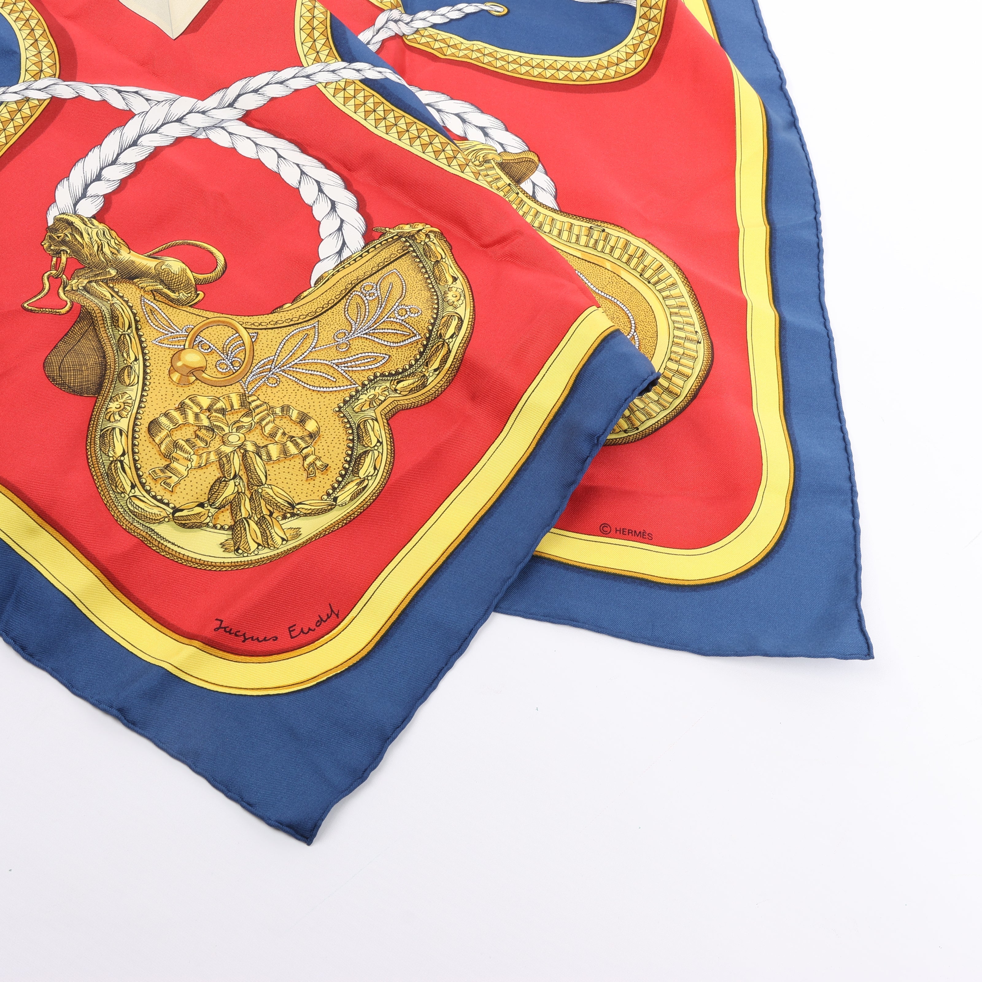 Hermès Carré 90 "GRAND APPARAT" 100% Silk Scarf in Navy x Red