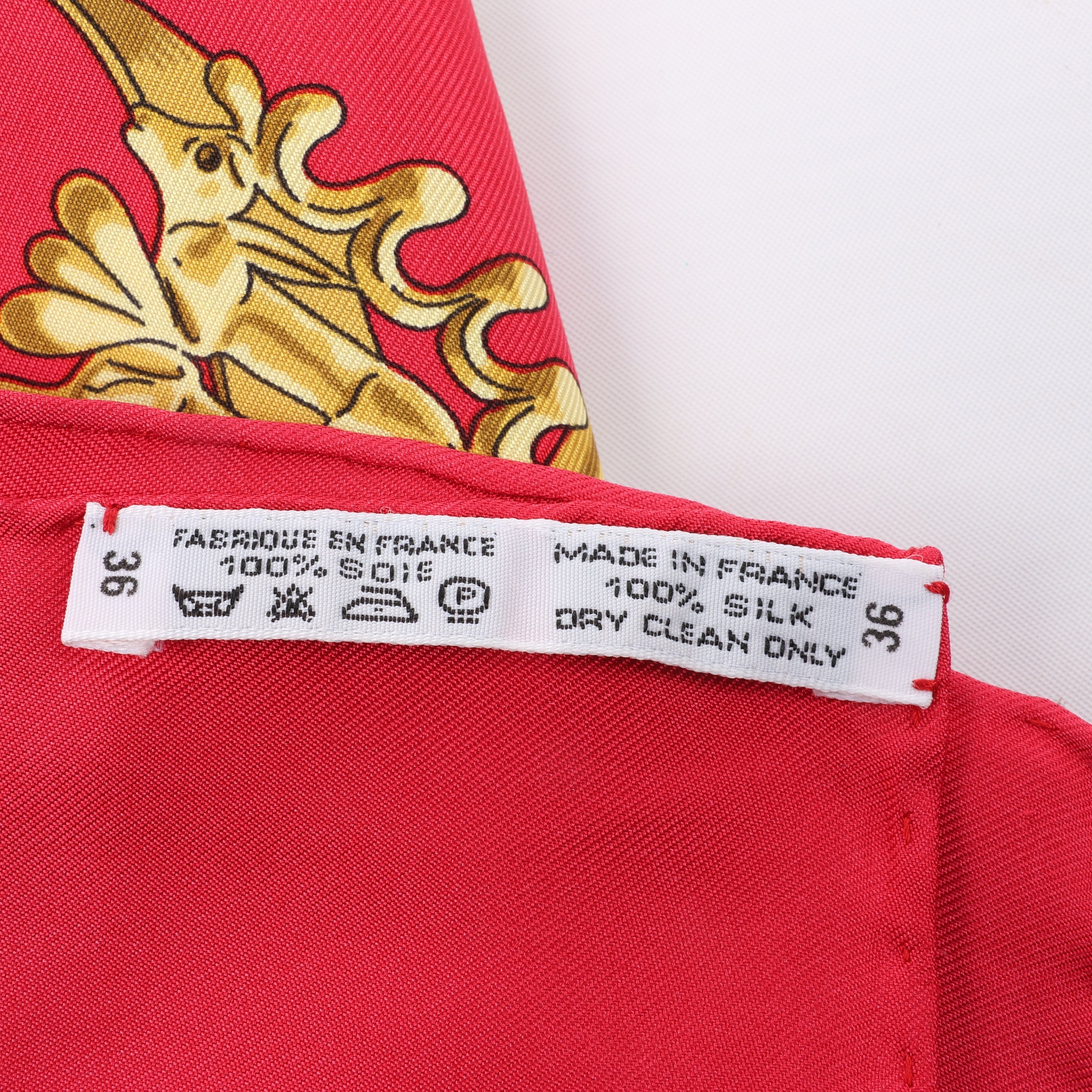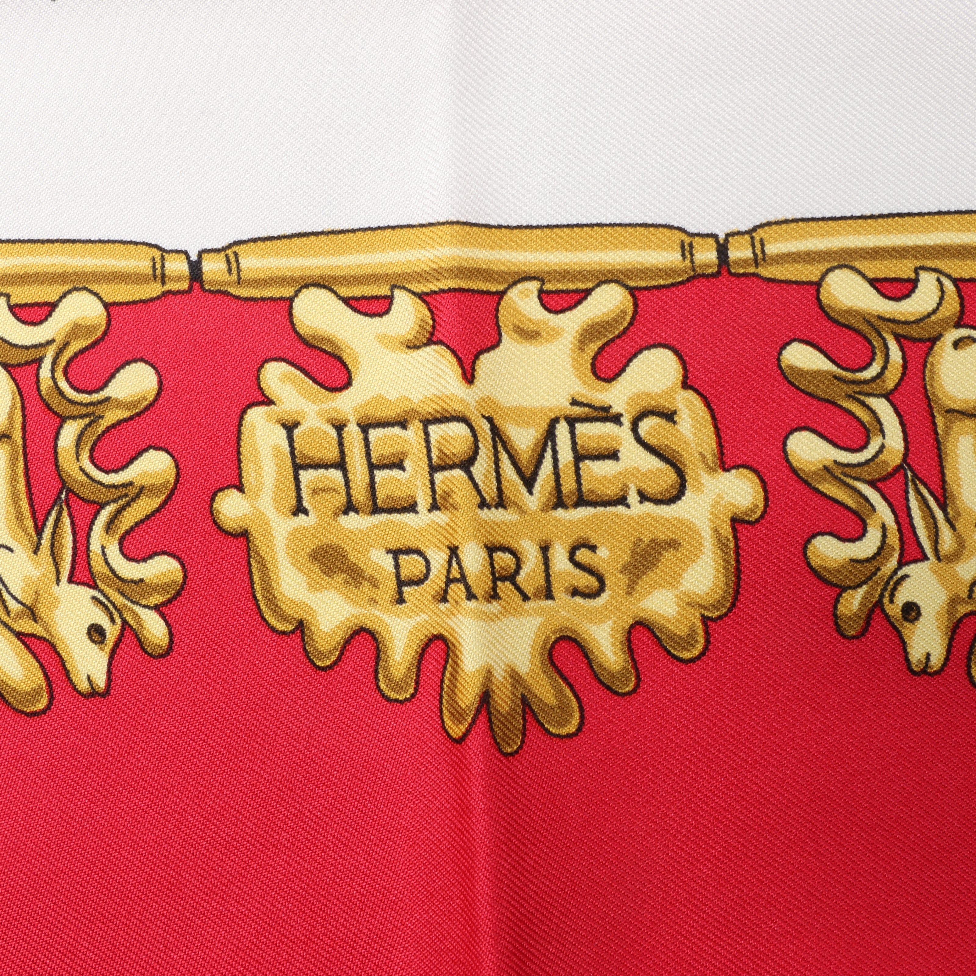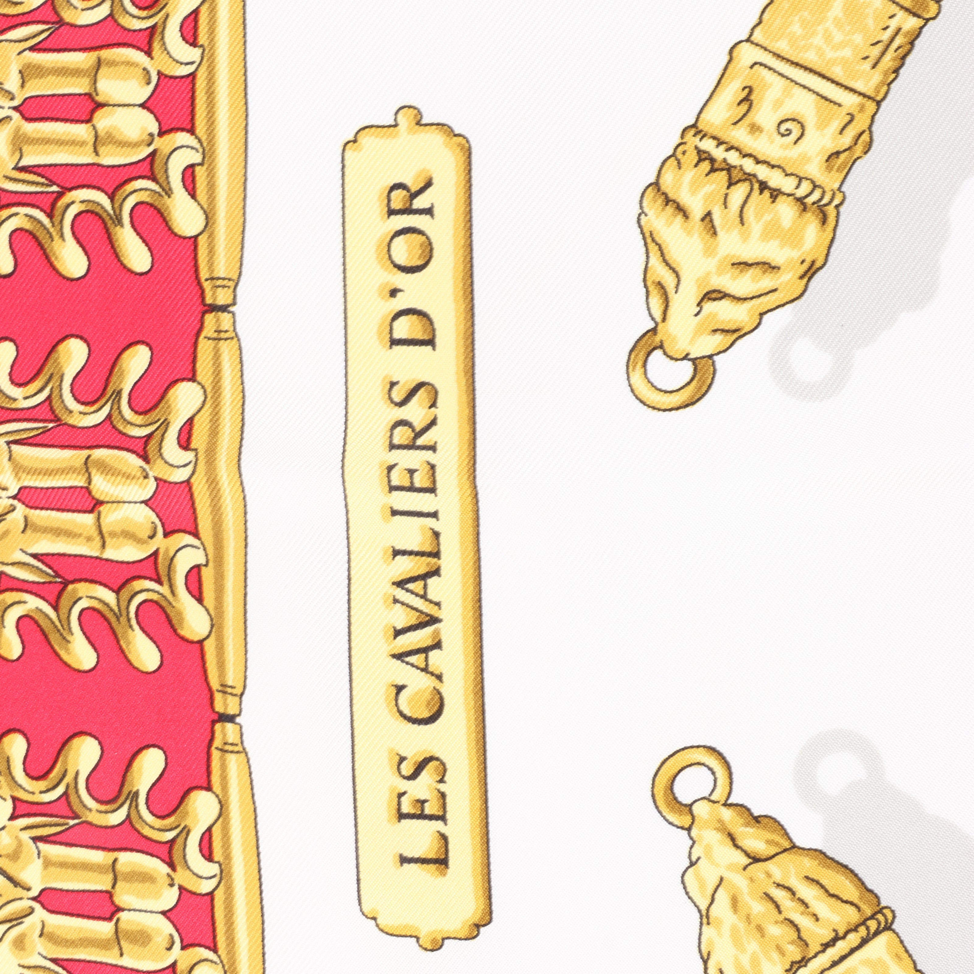 Hermès Carré 90 "LES CAVALIERS D'OR" 100% Silk Scarf in Red