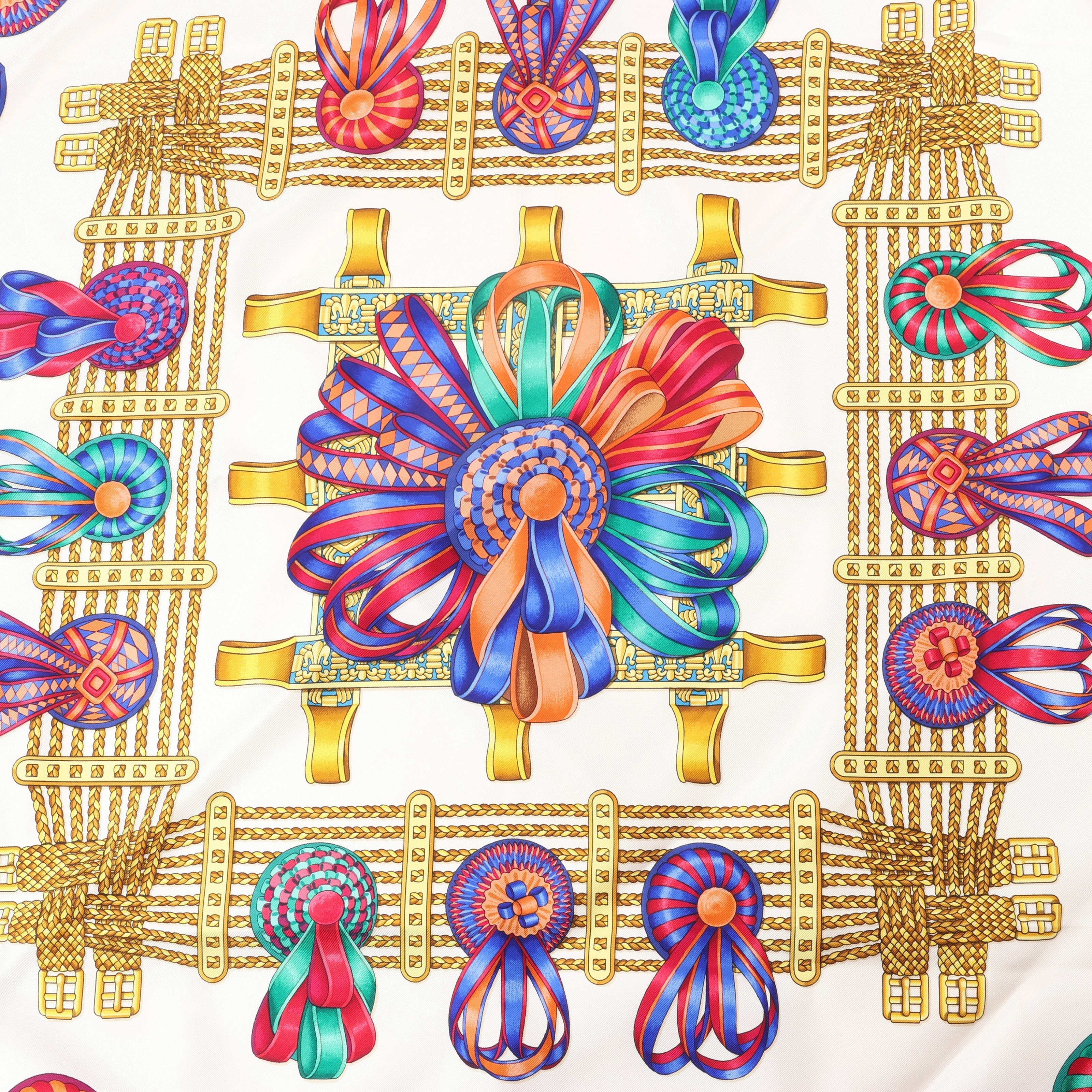 Hermès Carré 90 "LES RUBANS DU CHEVAL" Silk handkerchief in Burgundy
