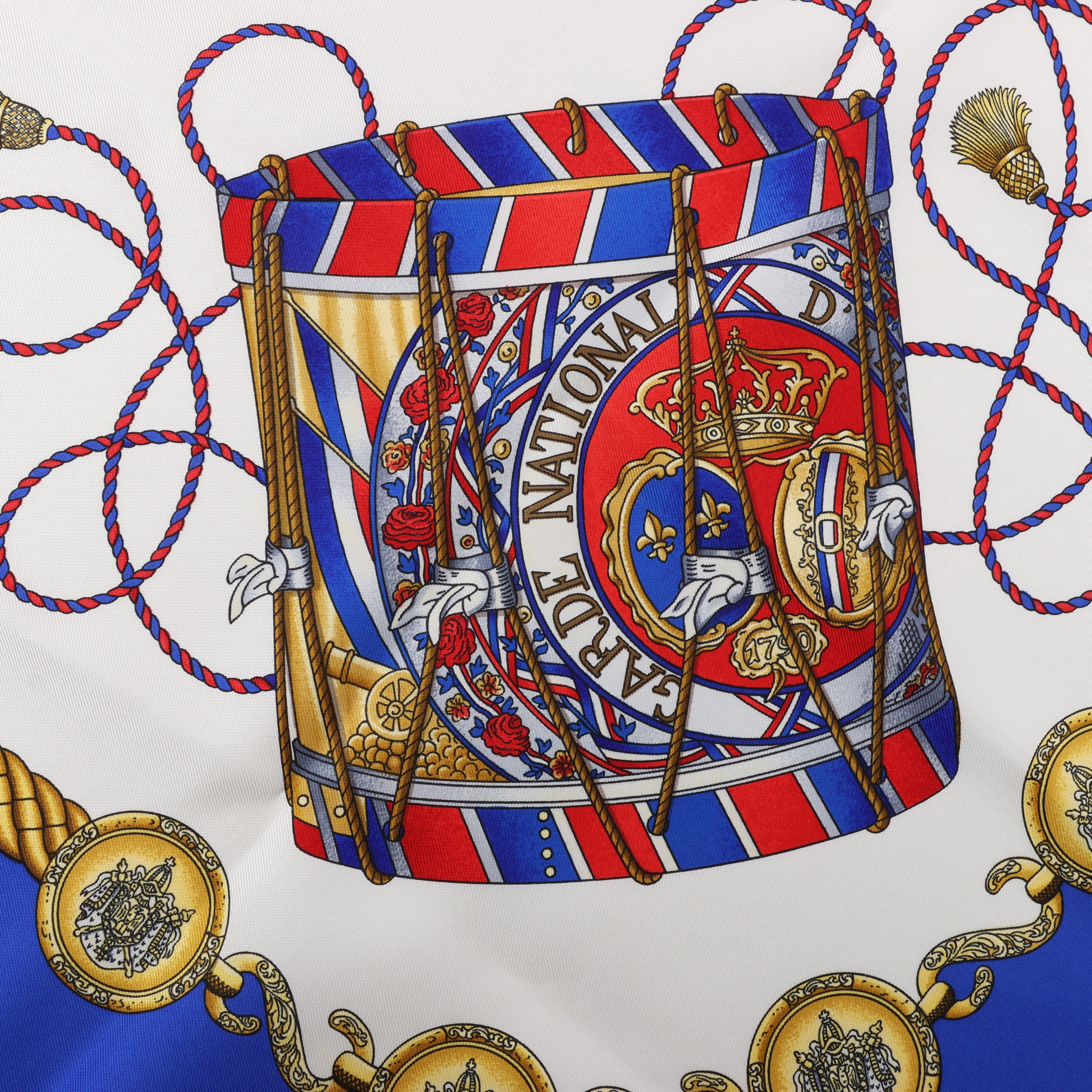 Hermès Carré 90 "LES TAMBOURS" Silk handkerchief in Blue