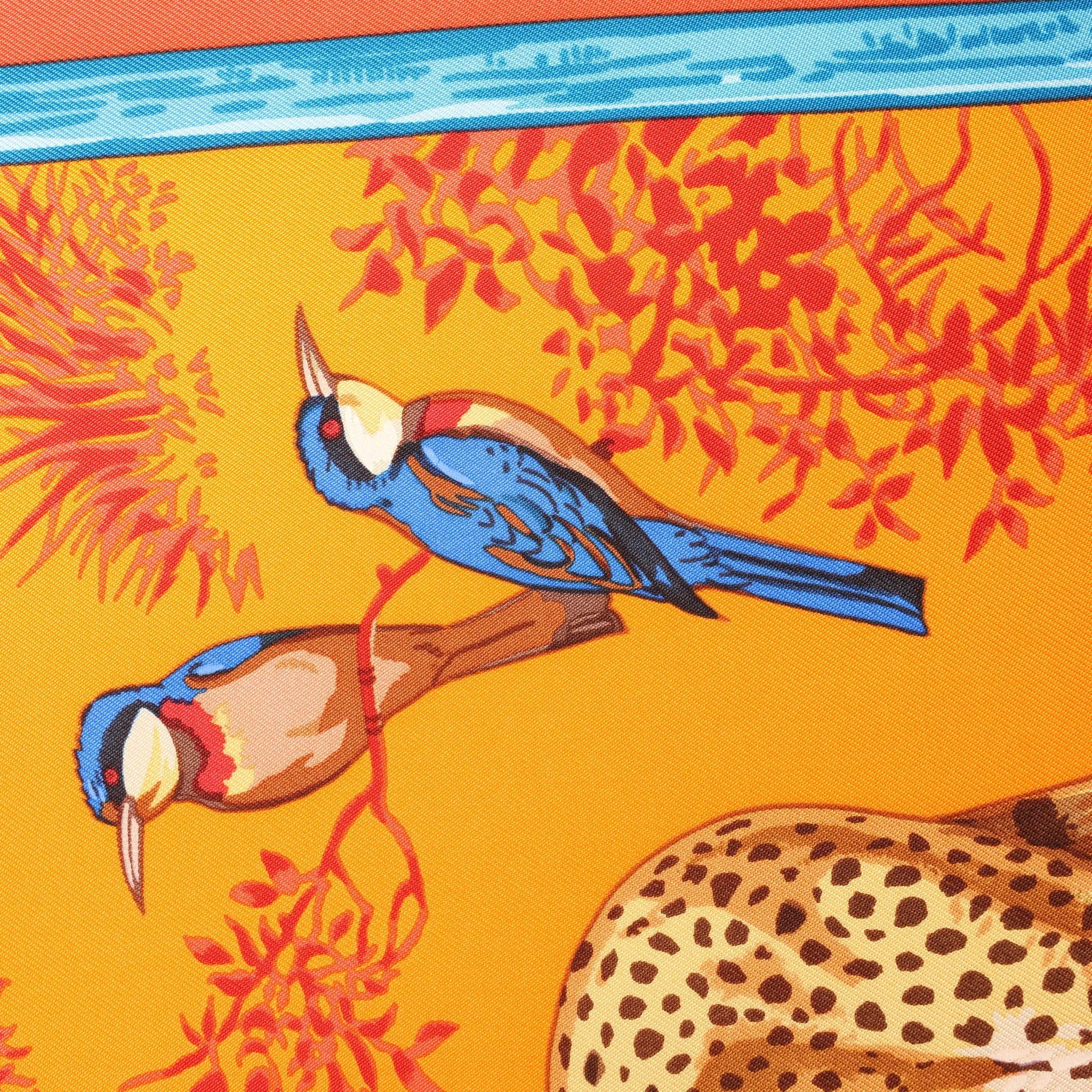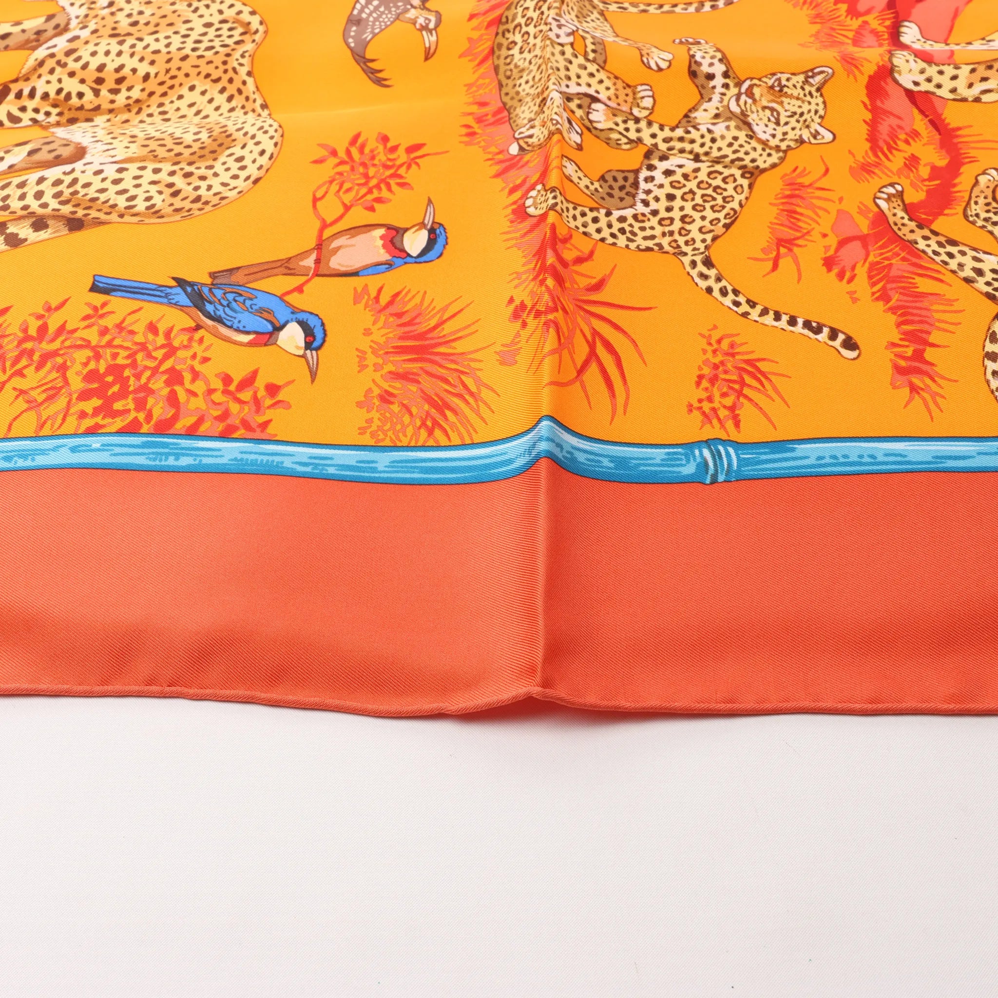 Hermès Carré 90 "Tendresse Feline" Silk handkerchief in Orange