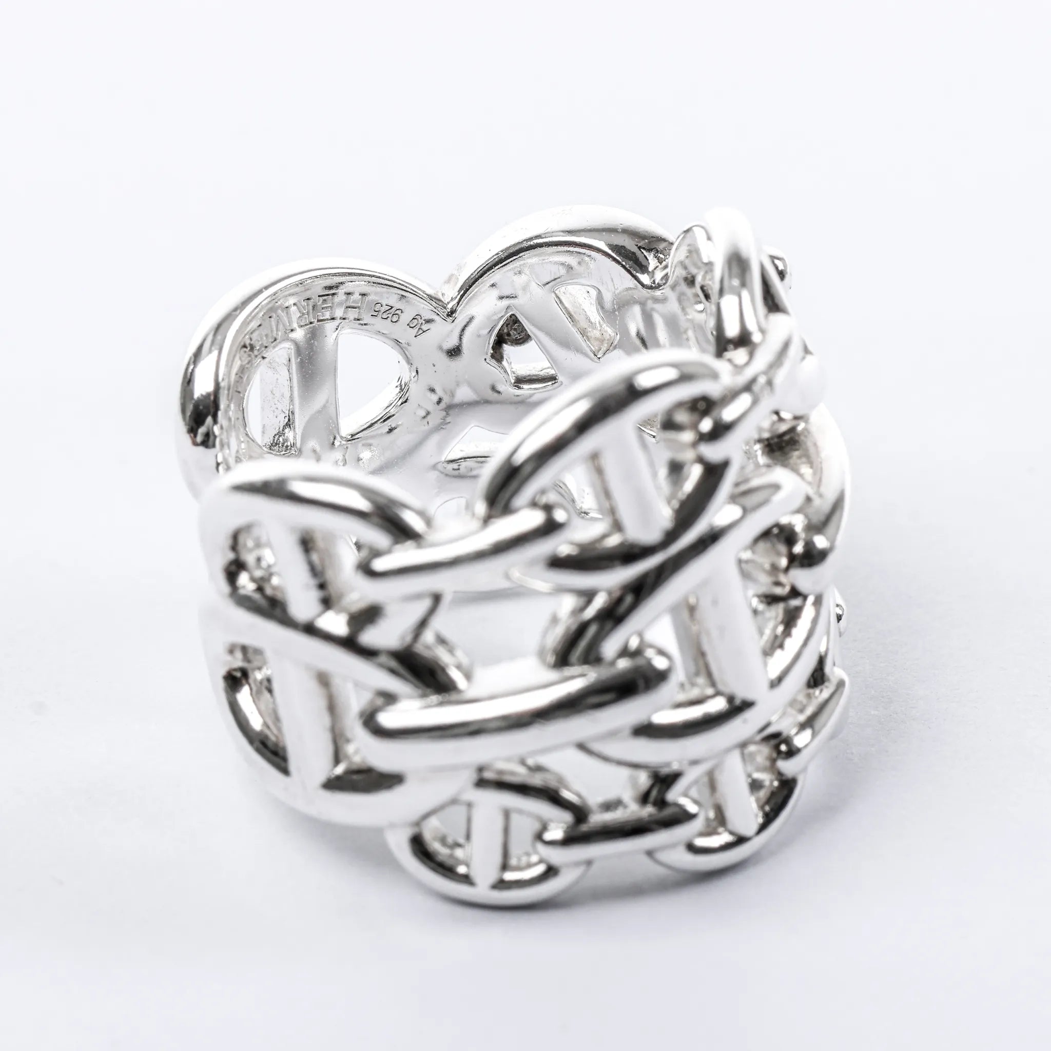 Hermes Chaîne d'Ancre Enchaînée Silver Ring, Size 54 EU