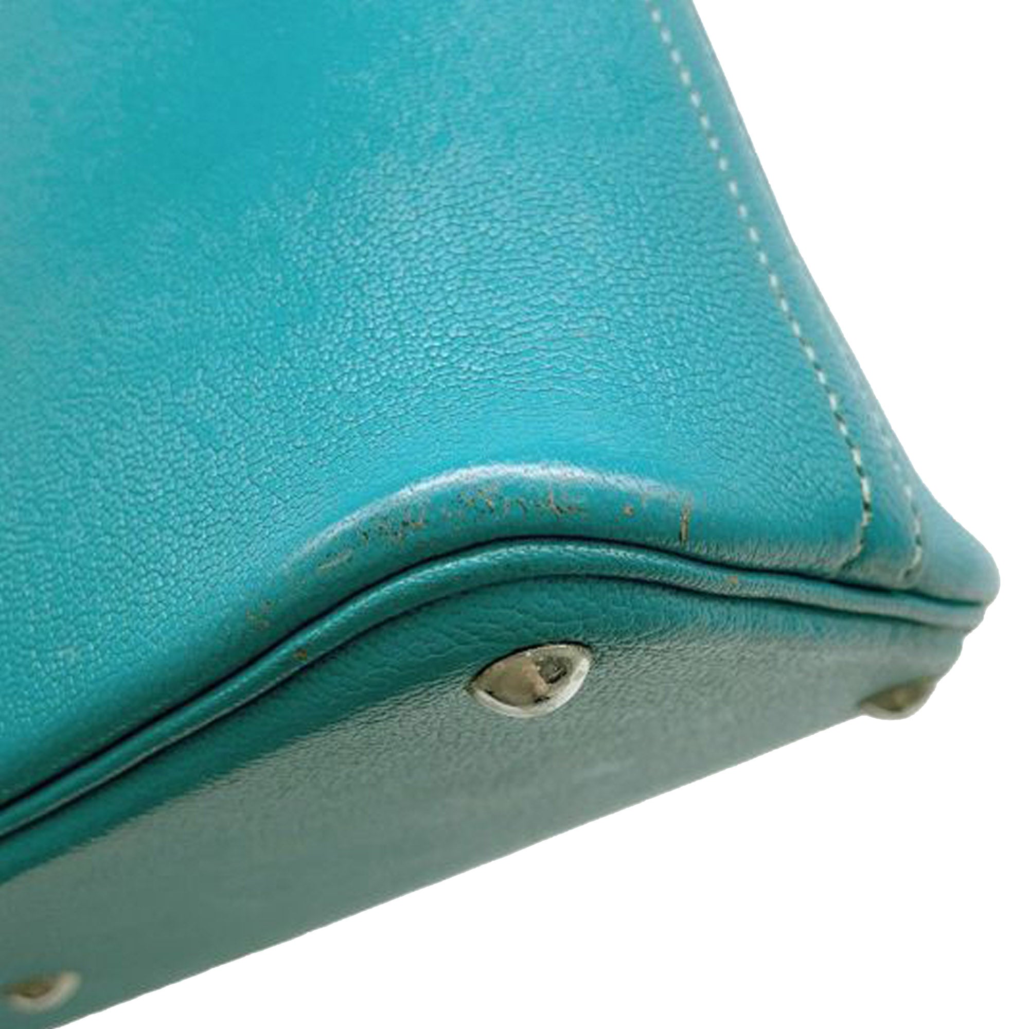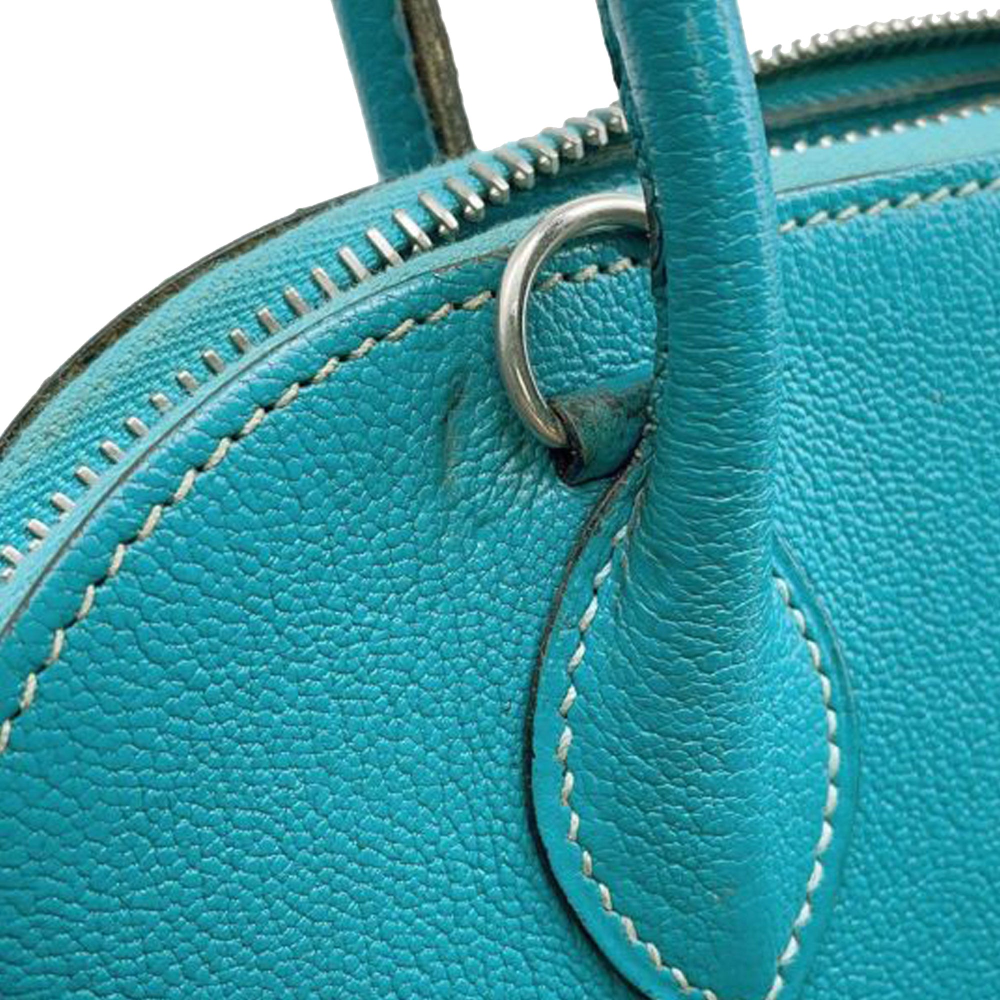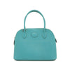 This Bolide 27 features a Chevre Mysore leather body in Lagoon color, rolled leather handles, a detachable flat leather strap, a top zip closure, and an interior slip pocket. Inclusion: Dust bag. Retail Price: 7000.00