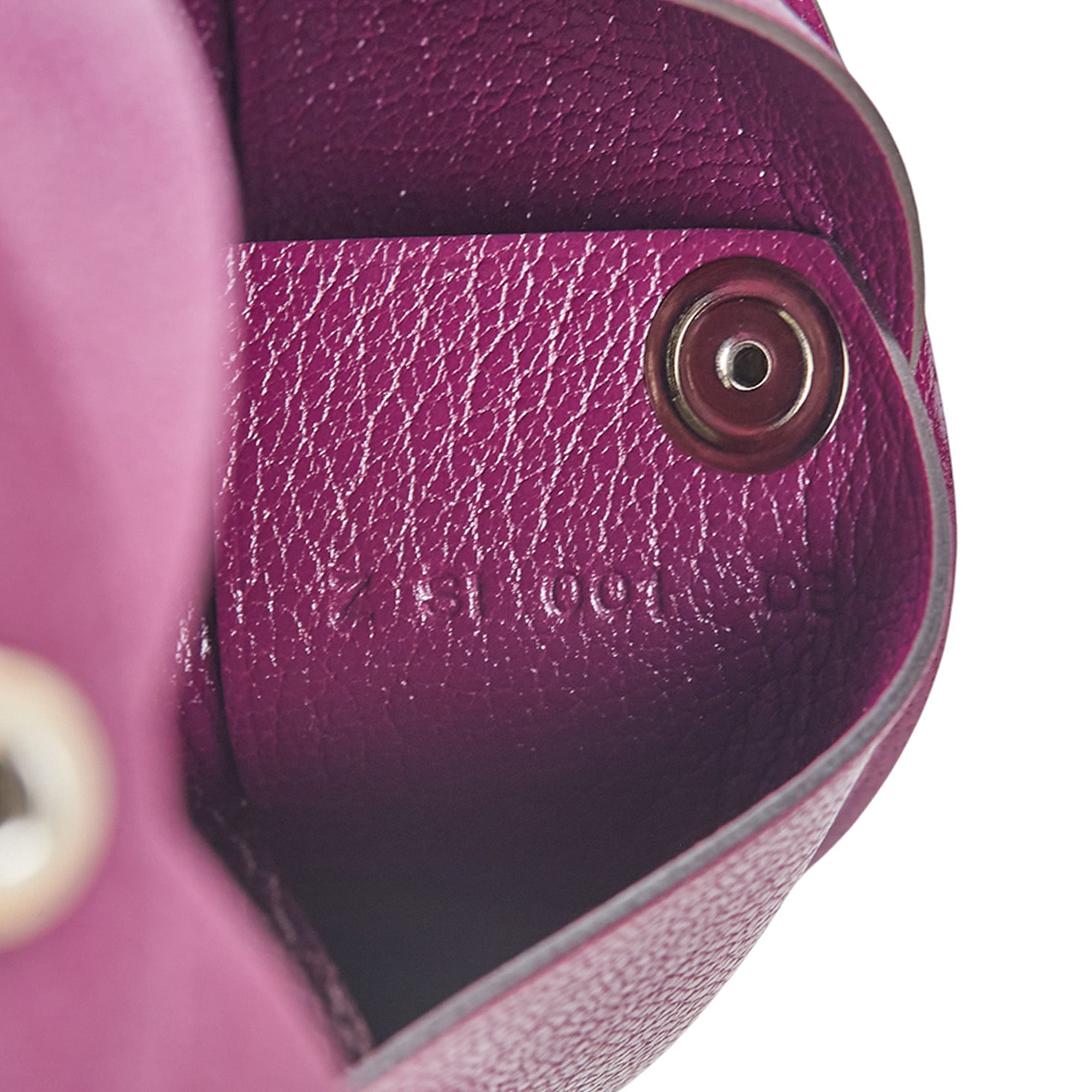 This Calvi Card Holder features a leather body in Anemone color, a snap closure, and interior slip compartments. Inclusion: box. Retail Price: 510.00