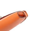 This long wallet features a goatskin leather body in Orange color, a front turn lock closure, and interior zip and slip pockets. Retail Price: 3500.00