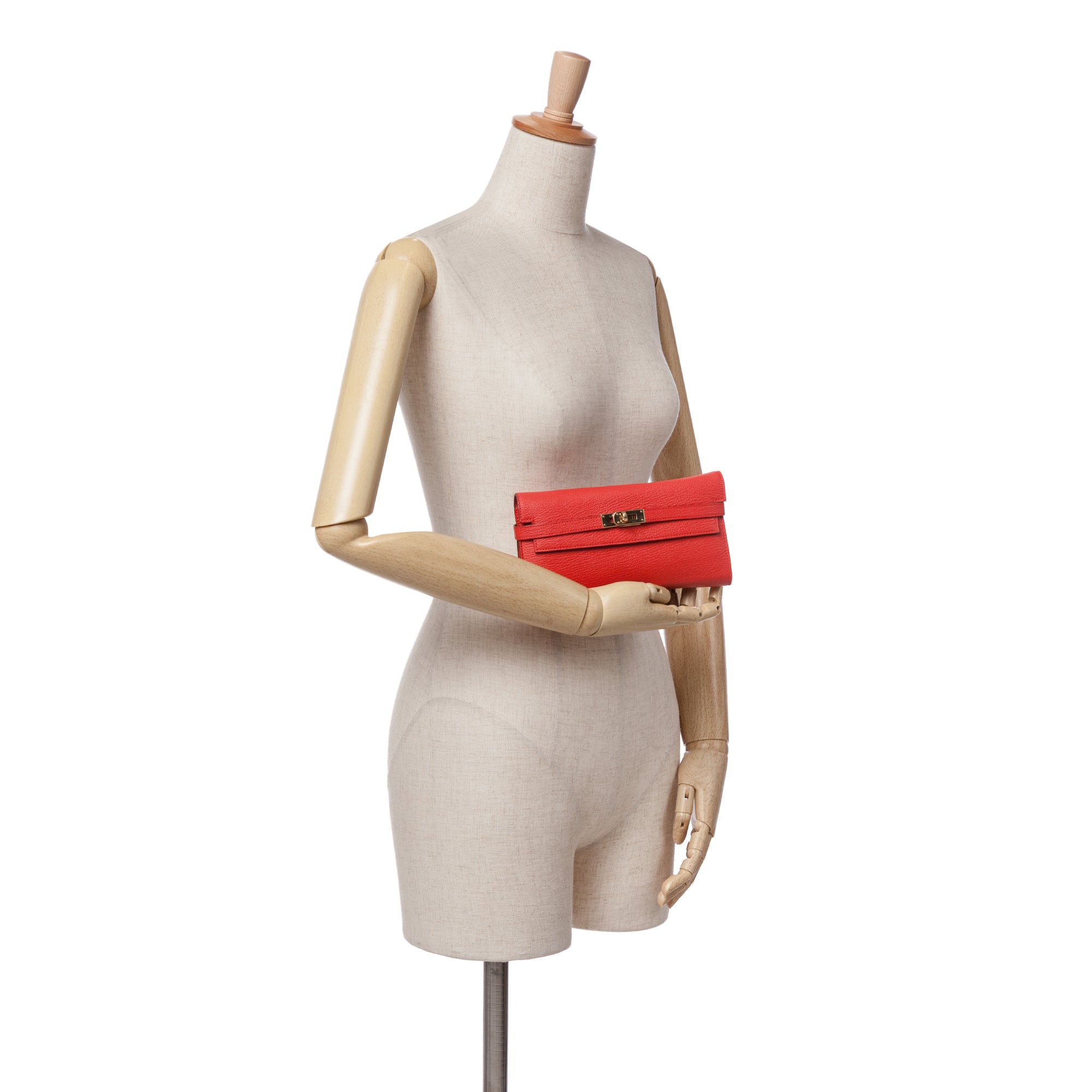 The Kelly features a goatskin leather body in Rouge Casaque color, a front flap with turn lock closure, and interior zip and slip pockets. Retail Price: 3500.00