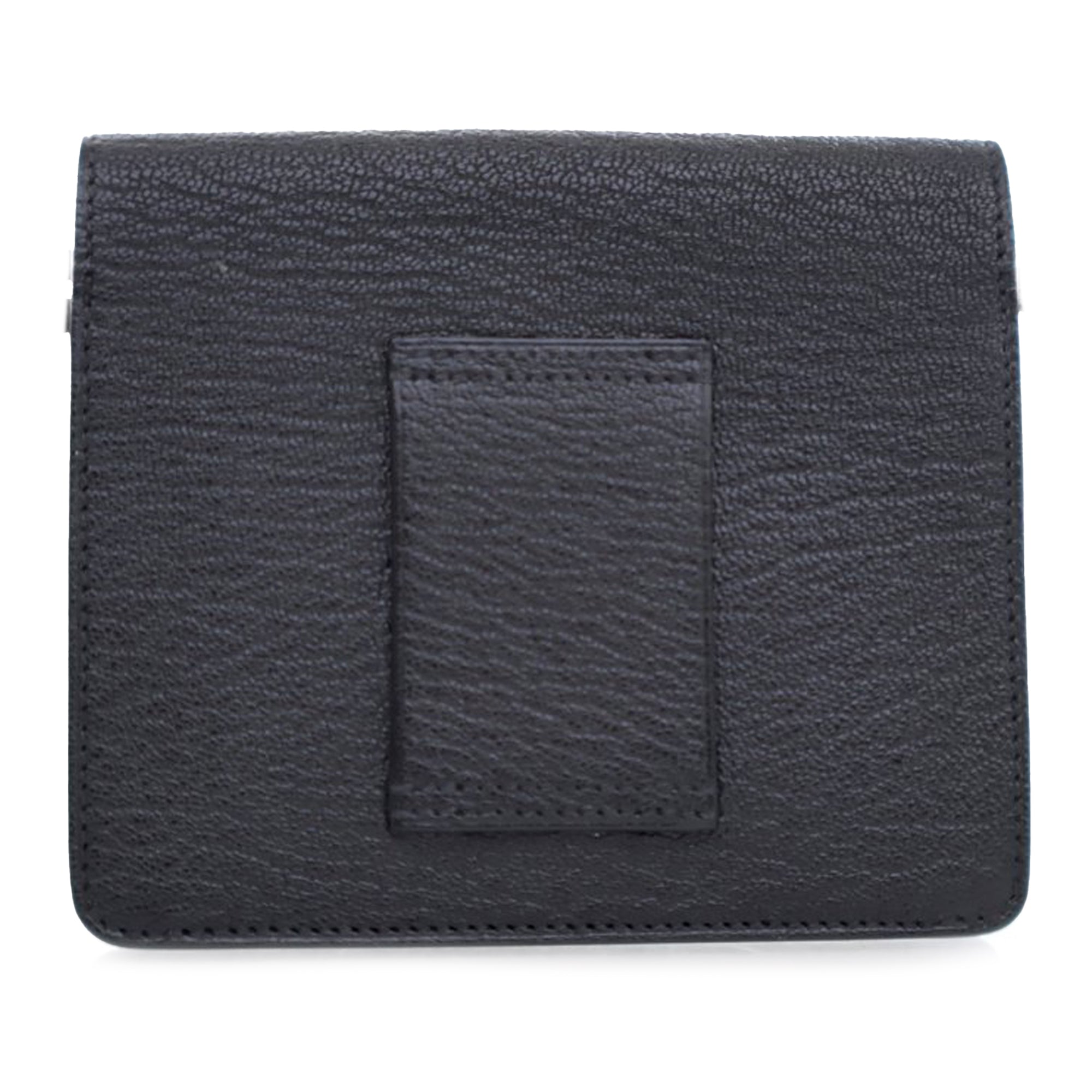 This Roulis Slim wallet features a goatskin leather body in Noir color a back leather belt loop, a front flap with pull-through closure, and a zip pouch inclusion. Inclusion: Dust bag, box. Retail Price: 2300.00