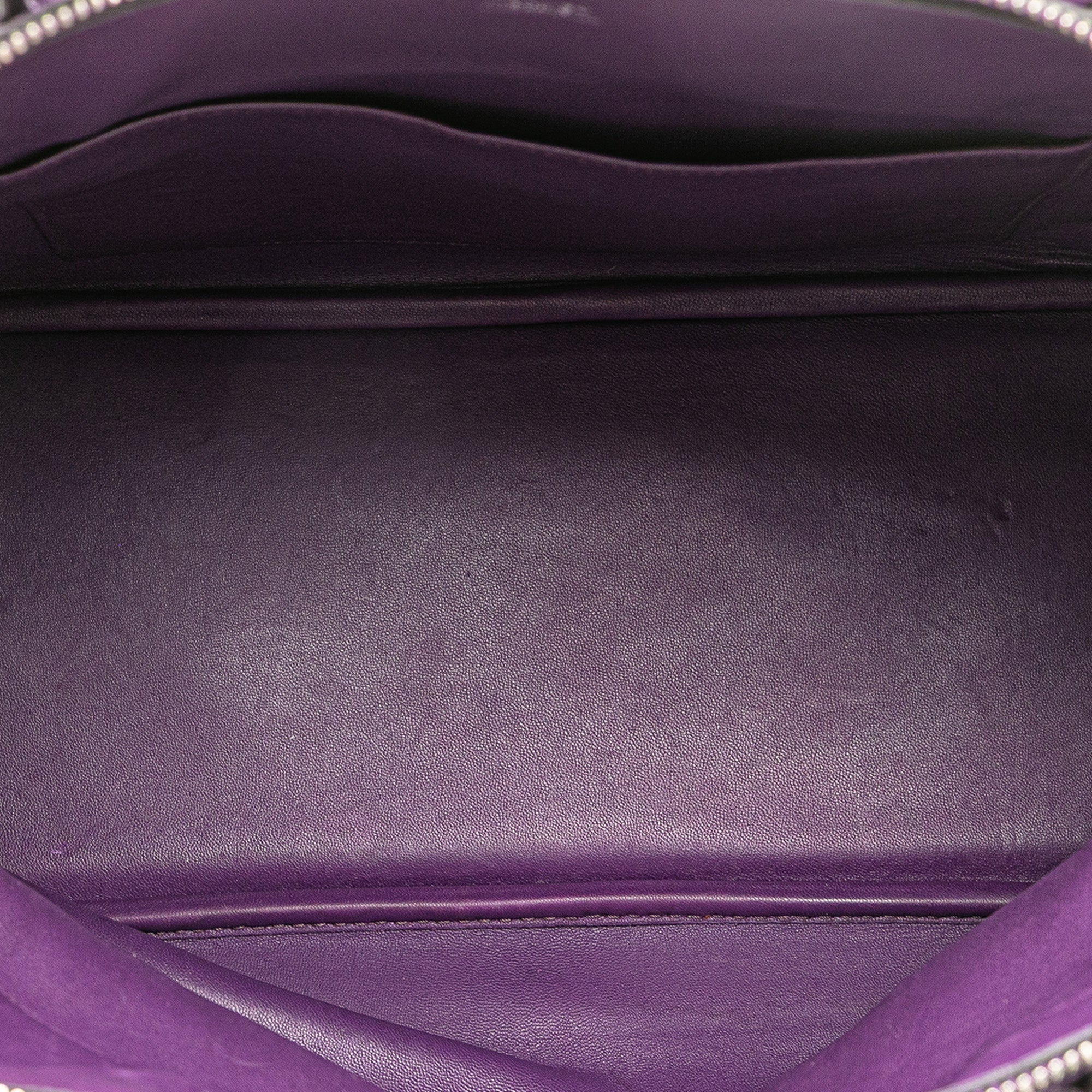 This Bolide 35 features a Clemence leather body in Ultraviolet color, a rolled leather handle, a detachable strap, a top zip closure, and an interior slip pocket. Retail Price: 7000.00