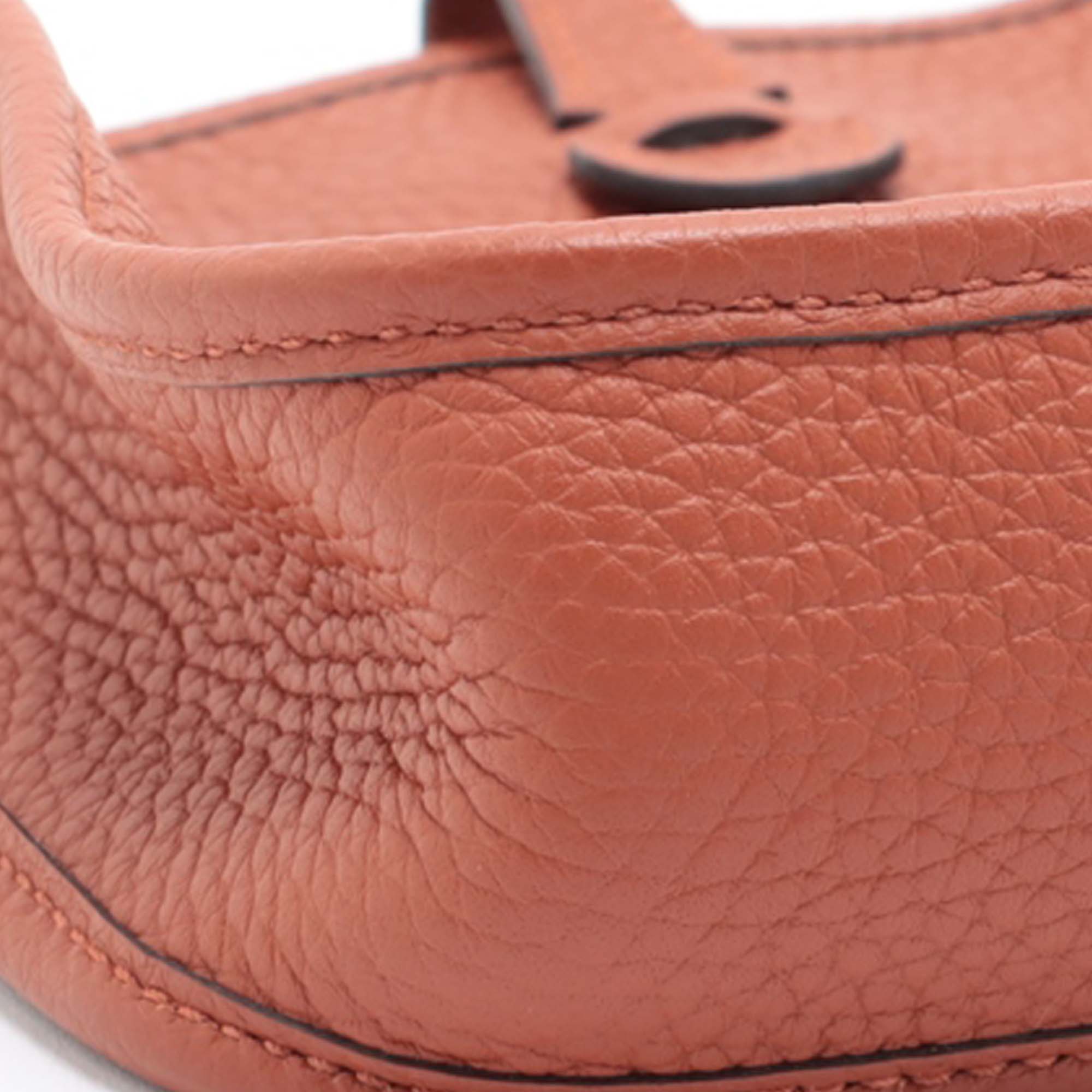 The Evelyne Amazone 16 features a Clemence leather body in Cuivre color, an embroidered flat shoulder strap, and an open top with a strap and snap closure. Inclusion: Dust bag, box. Retail Price: 5000.00