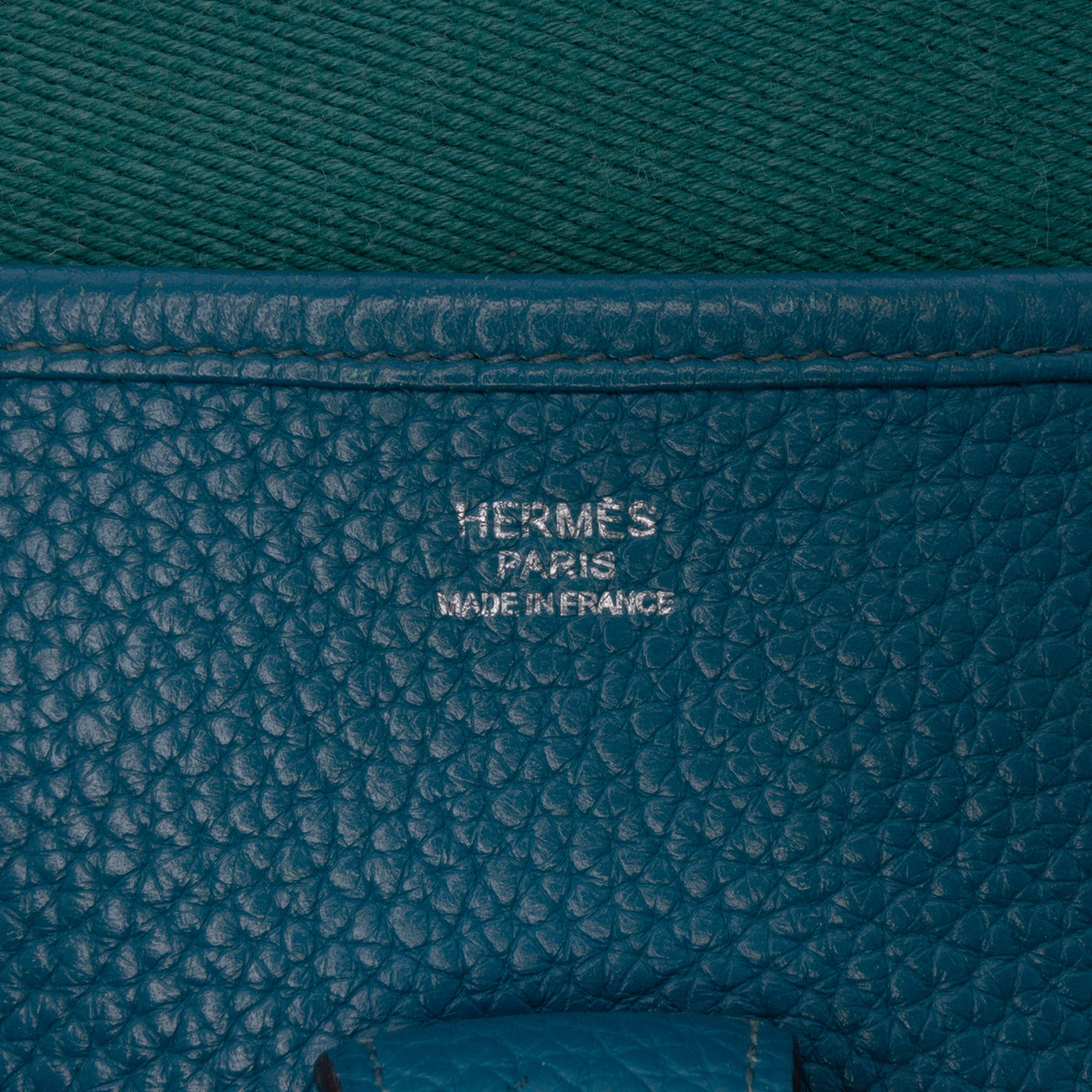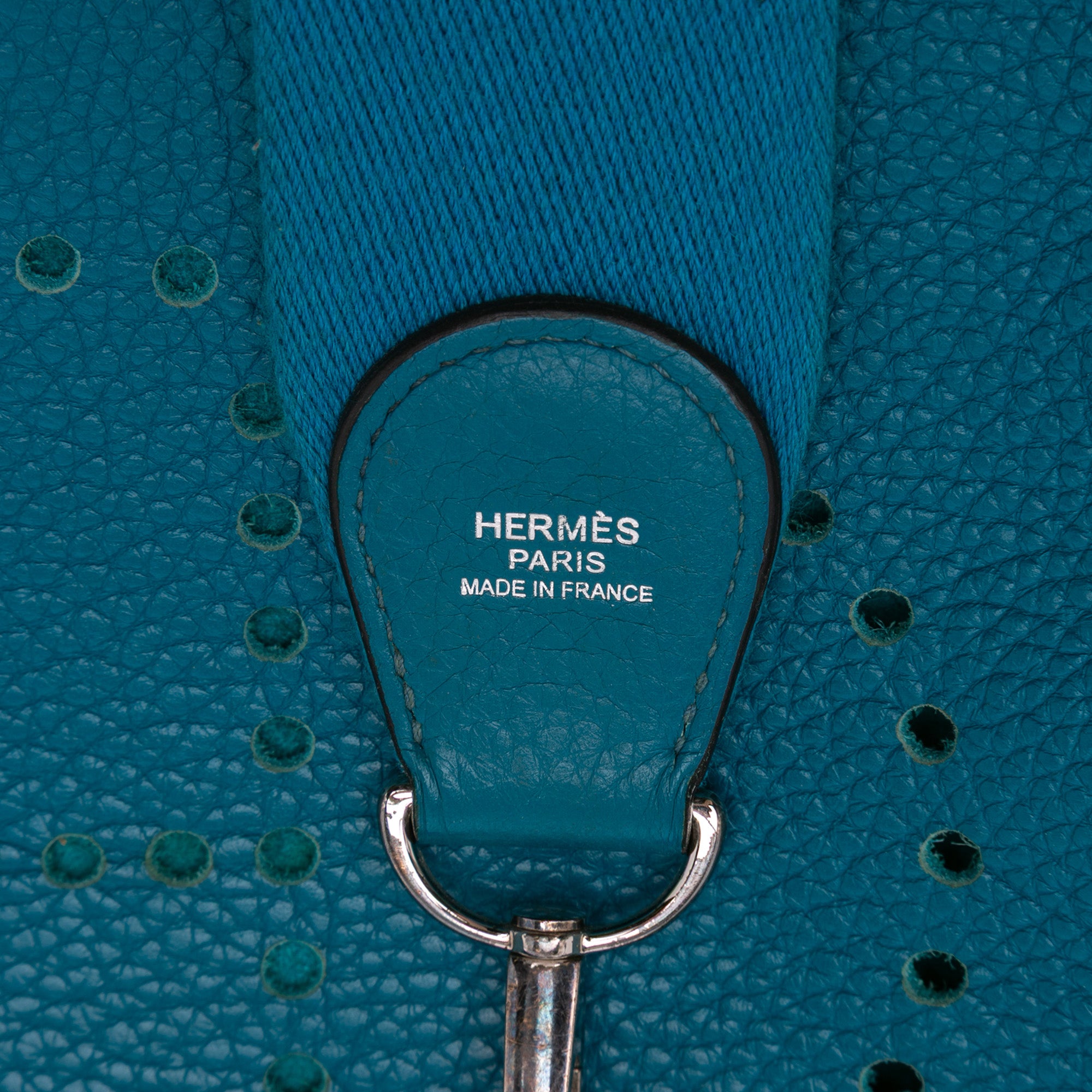 The Evelyne III GM features a leather body, a flat canvas strap, an open top with a tuck closure, and an exterior back slip pocket. Retail Price: 3750.00