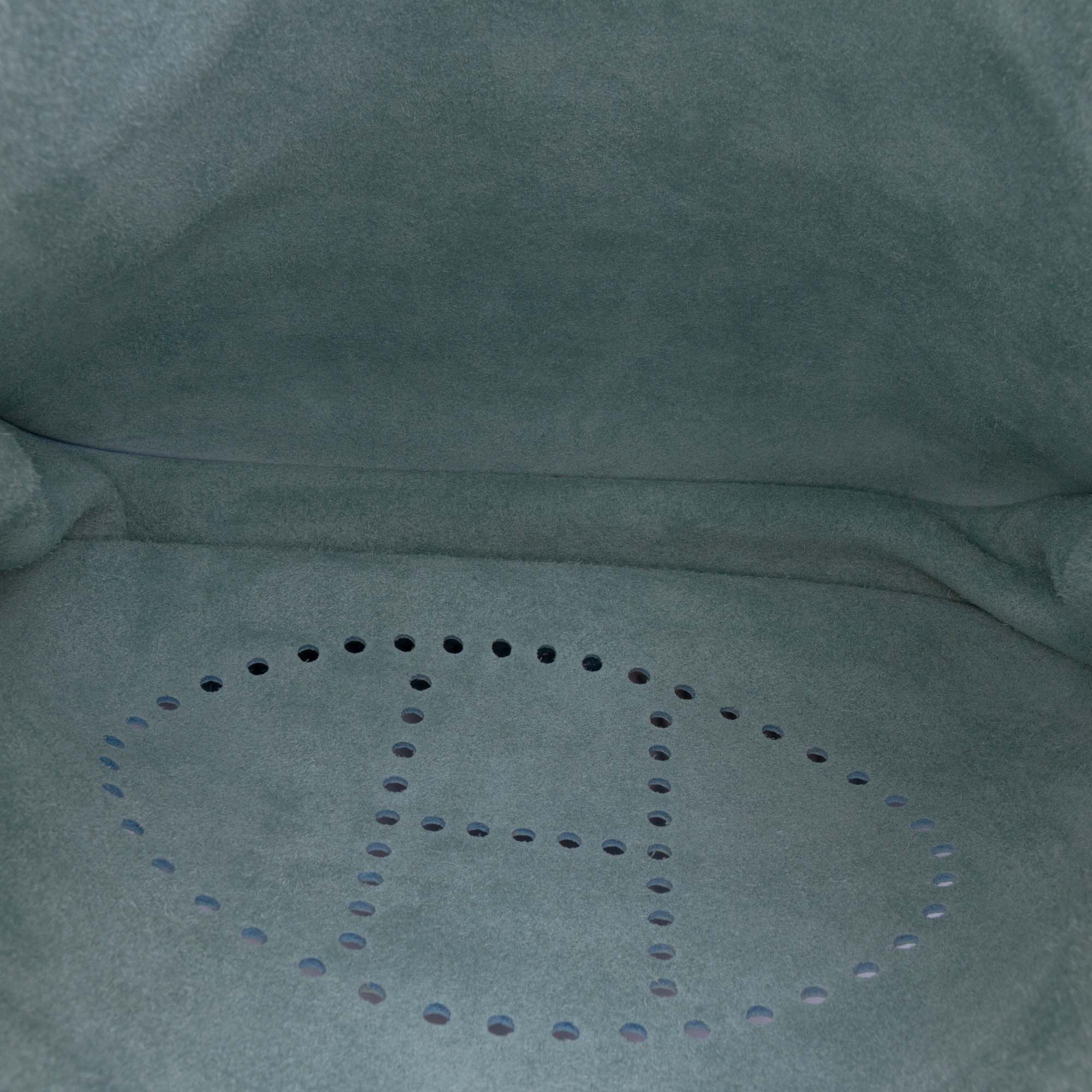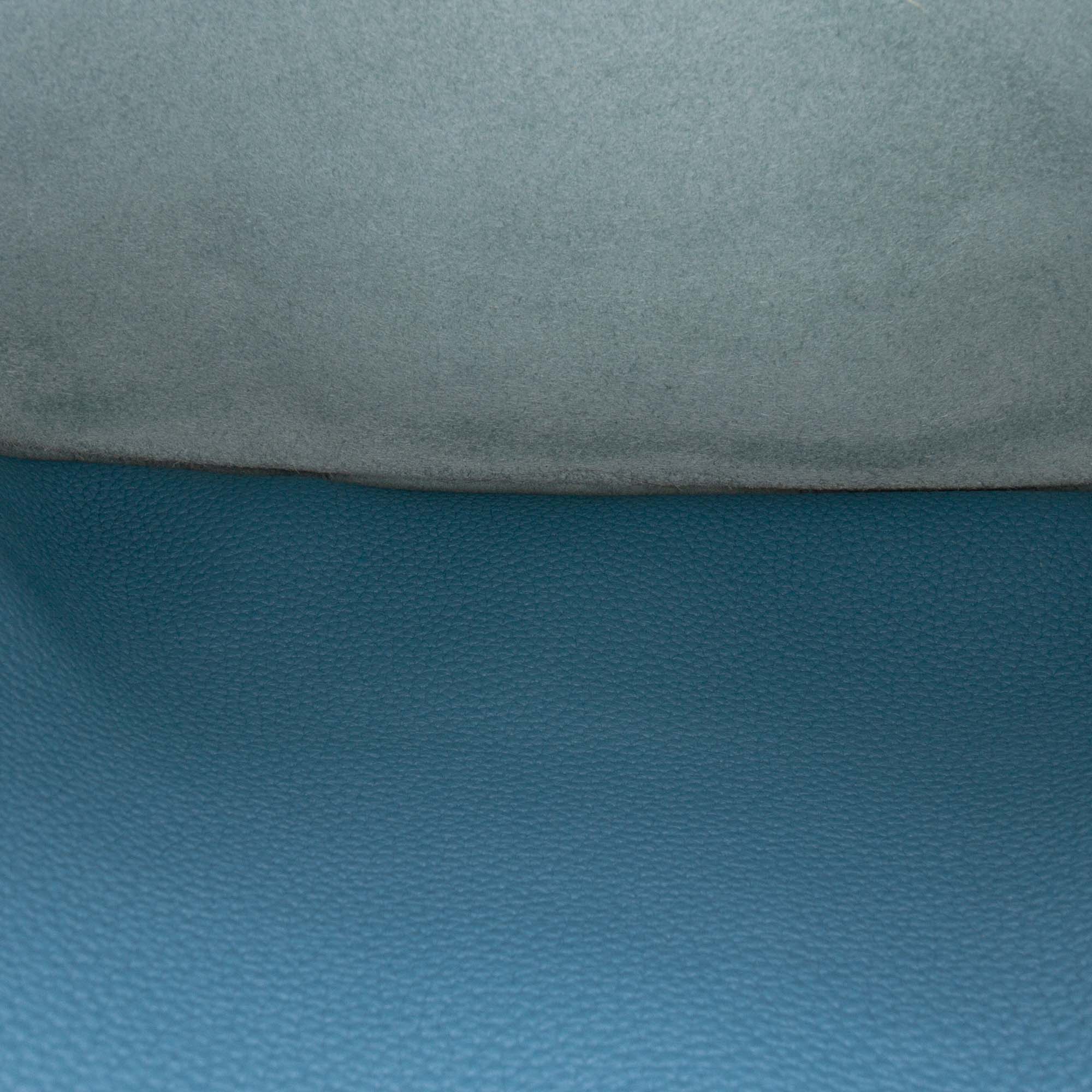 This Evelyne III features a Clemence leather body in Blue Jean color, a removable and adjustable flat canvas strap, a top strap closure, and an exterior back slip pocket. Retail Price: 3150.00