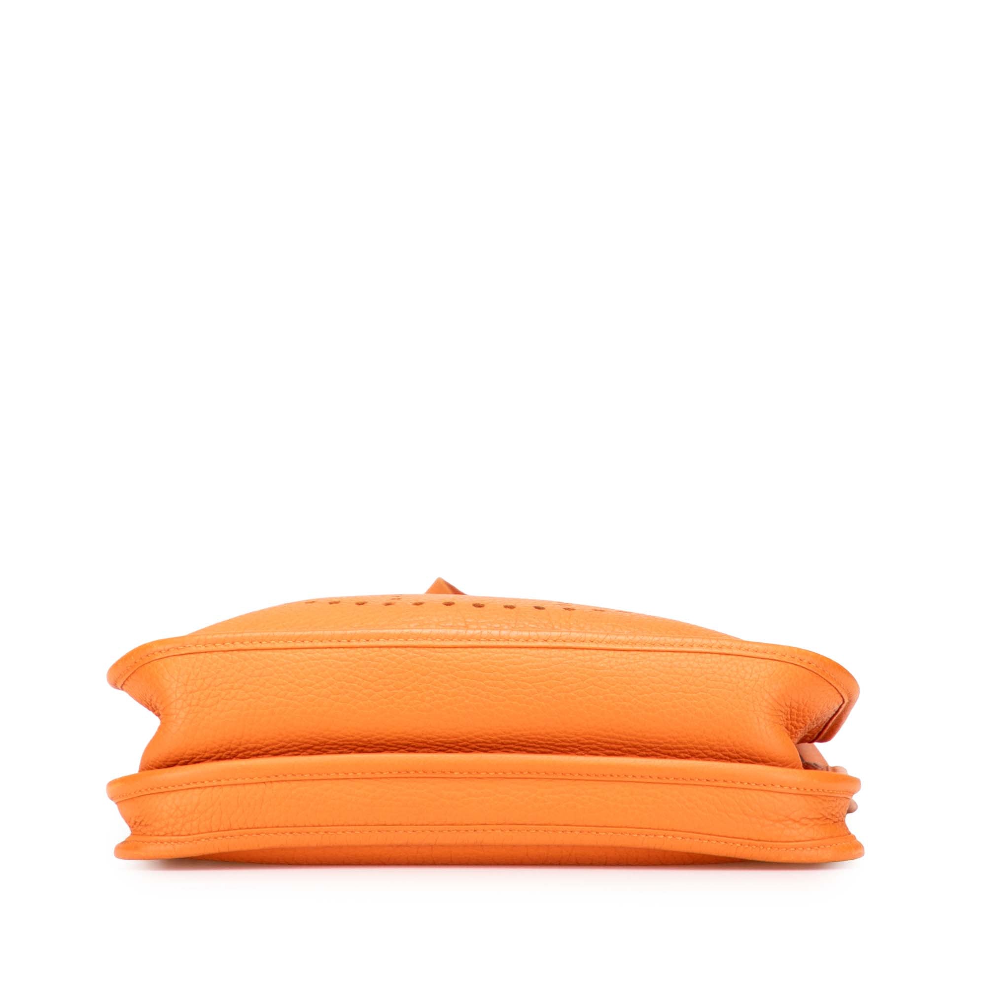 The Evelyne III PM features a clemence leather body, an adjustable and detachable flat canvas strap, an open top with a tuck closure, and an exterior back slip pocket. Retail Price: 4050.00