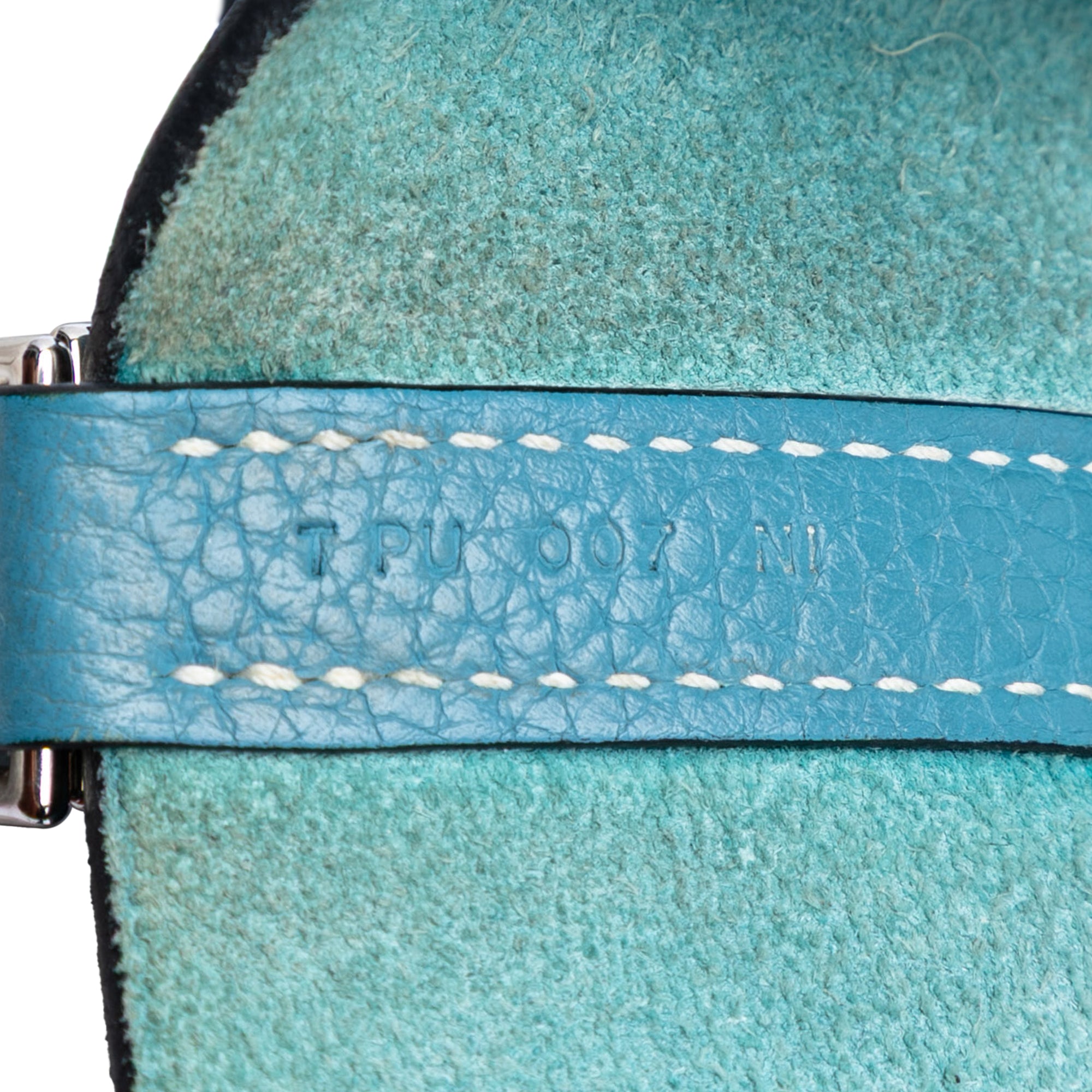 This Picotin Lock features a Clemence leather body in Blue Jean color, flat leather straps, and a top strap and buckle closure. Retail Price: 5320.00