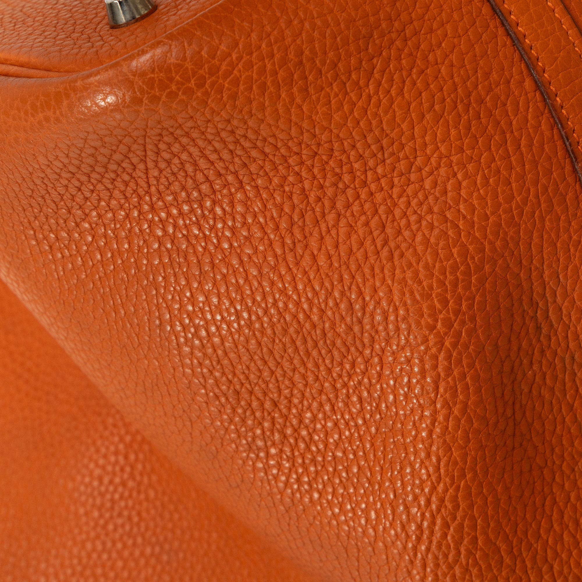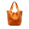 The Picotin 22 features a leather body, flat handles, and an open top with a flat strap and buckle closure. Retail Price: 3575.00