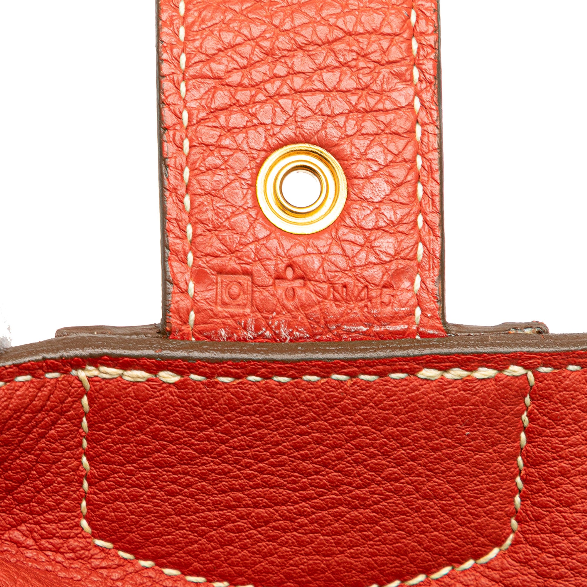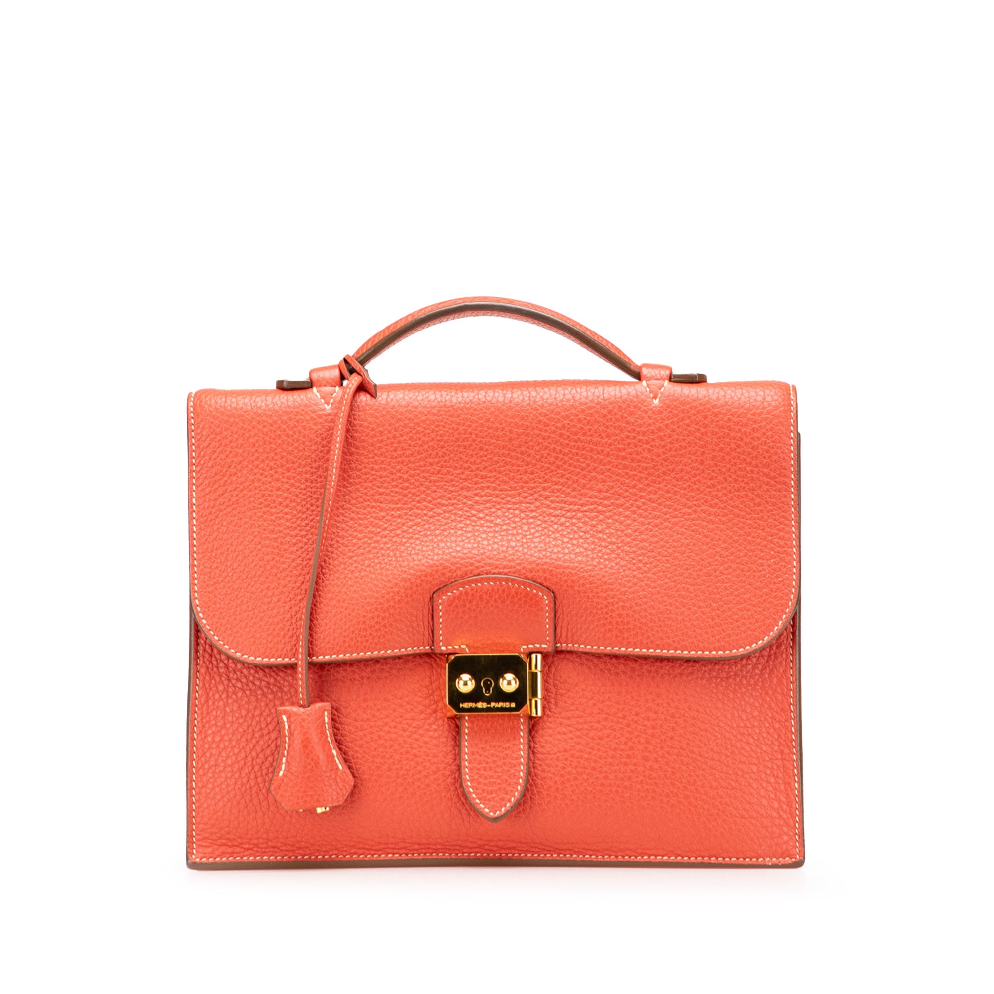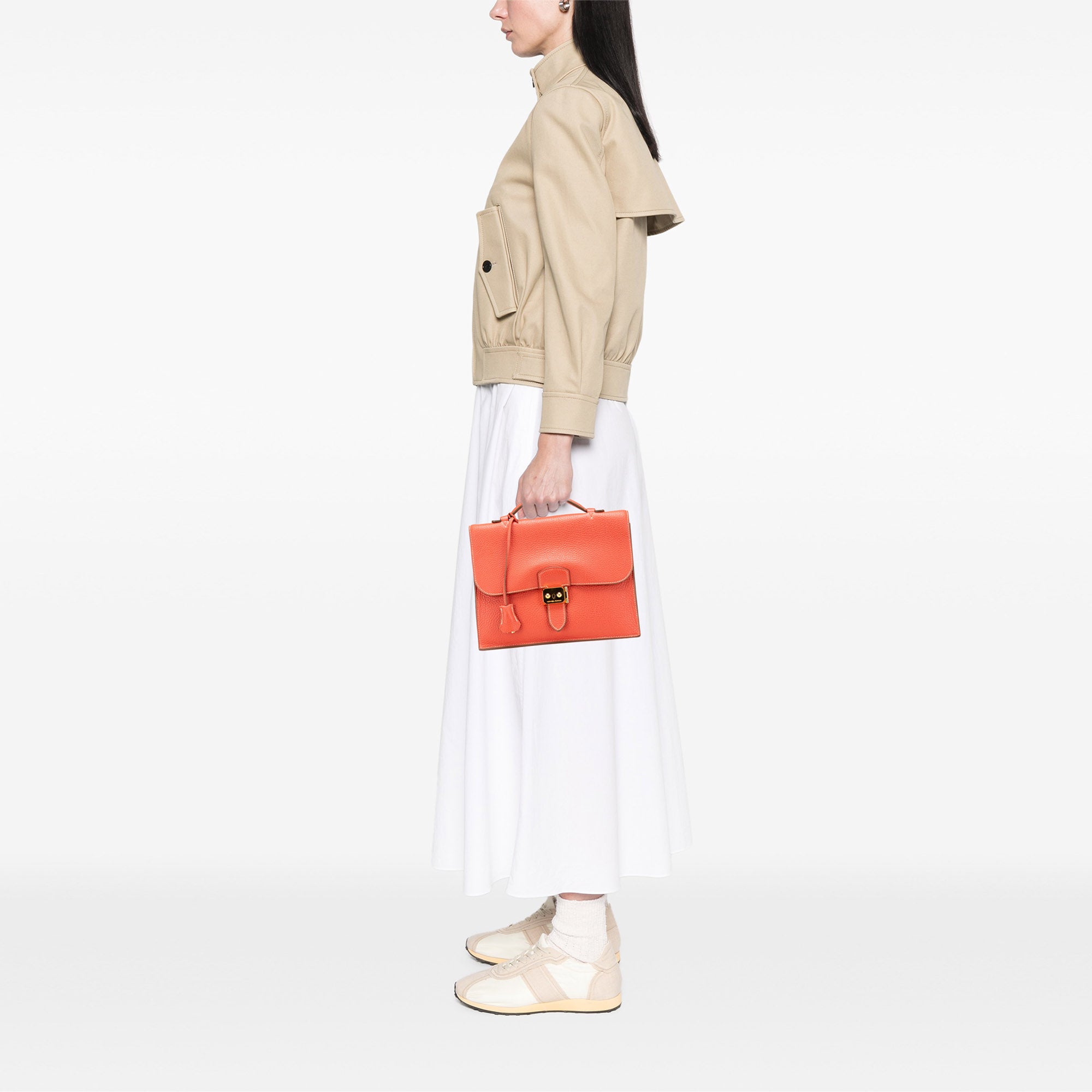 This Sac a Depeches features a Clemence leather body, a top flat leather handle, and a front flap with metal lock closure. Retail Price: 8400.00