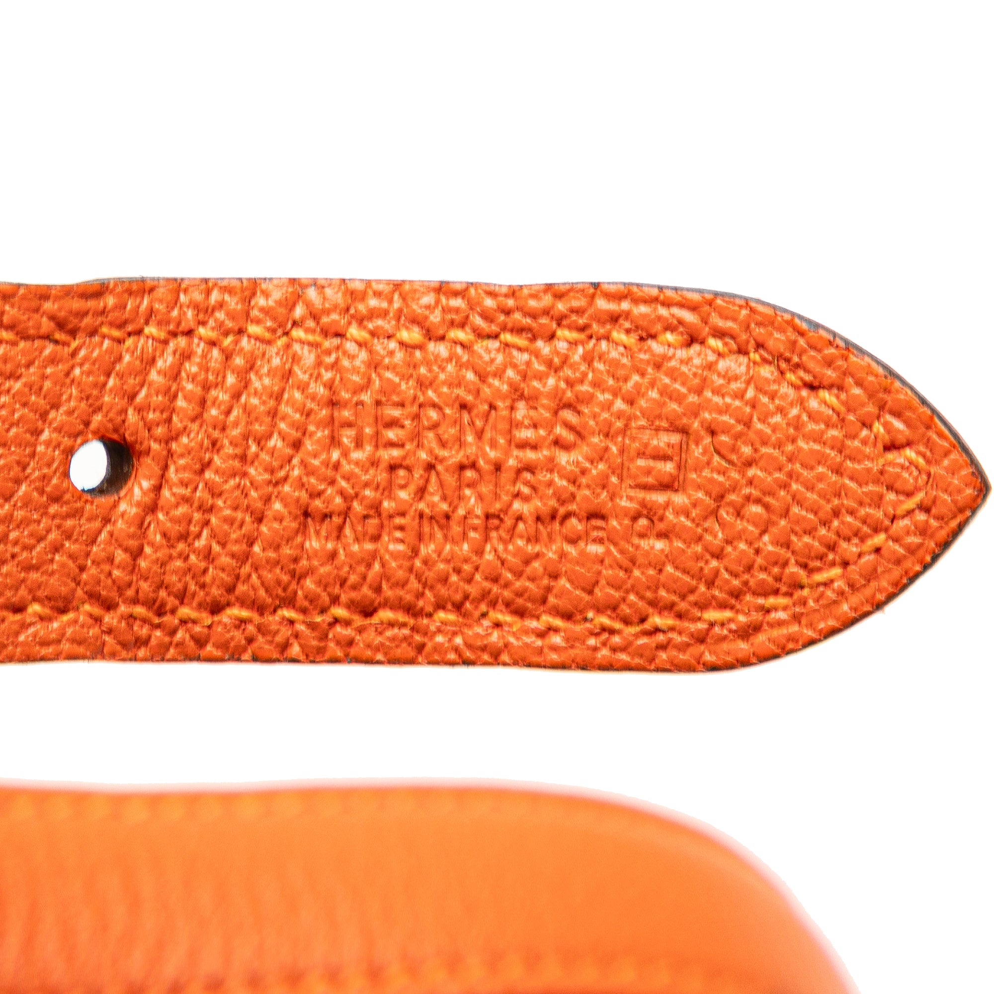 This Trim II 24 features a Clemence leather body in Orange color, a flat shoulder strap, a top strap with a lobster claw closure, and an interior slip pocket. Inclusion: Dust bag. Retail Price: 2800.00