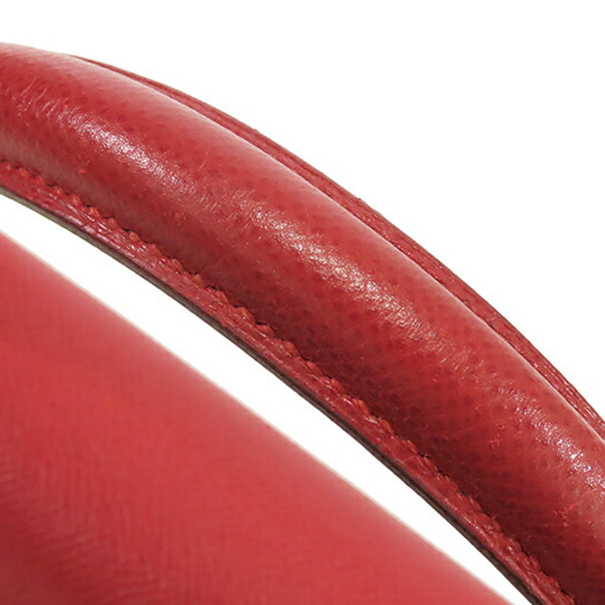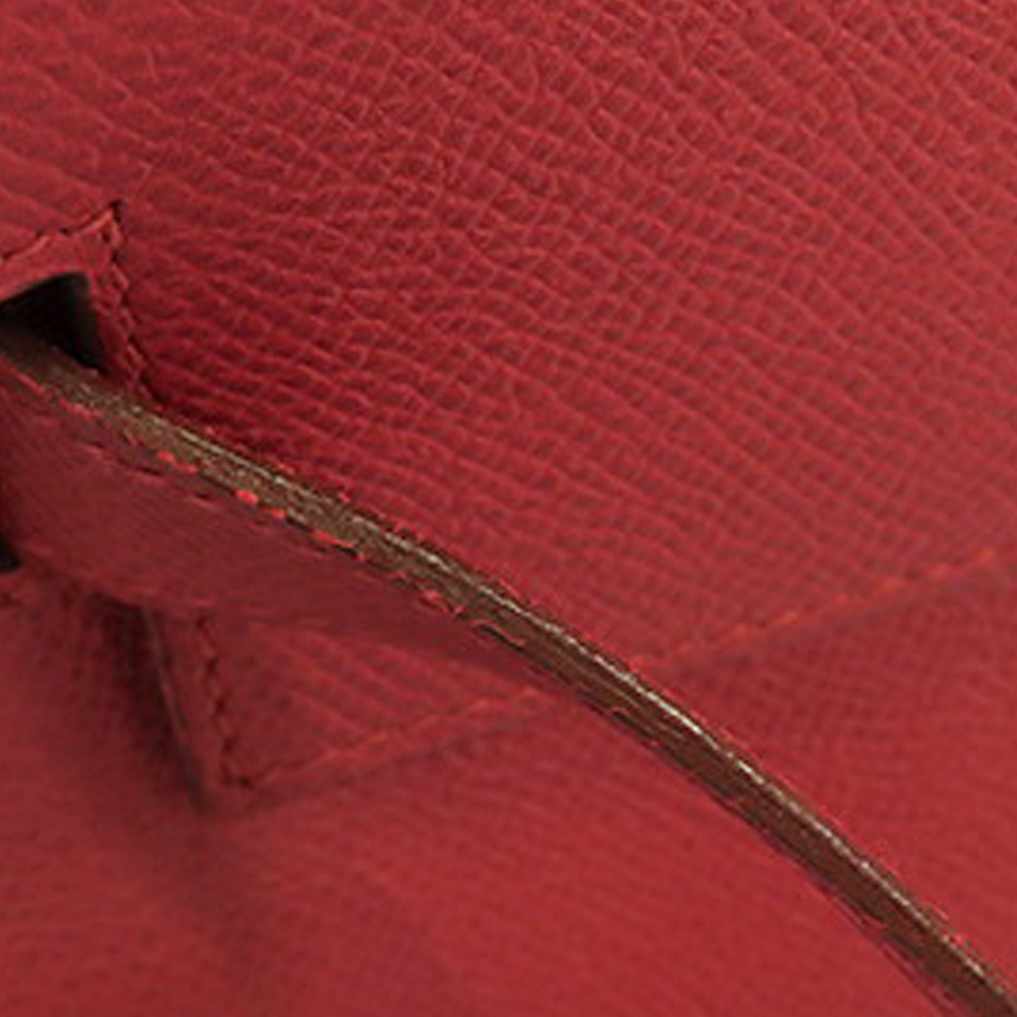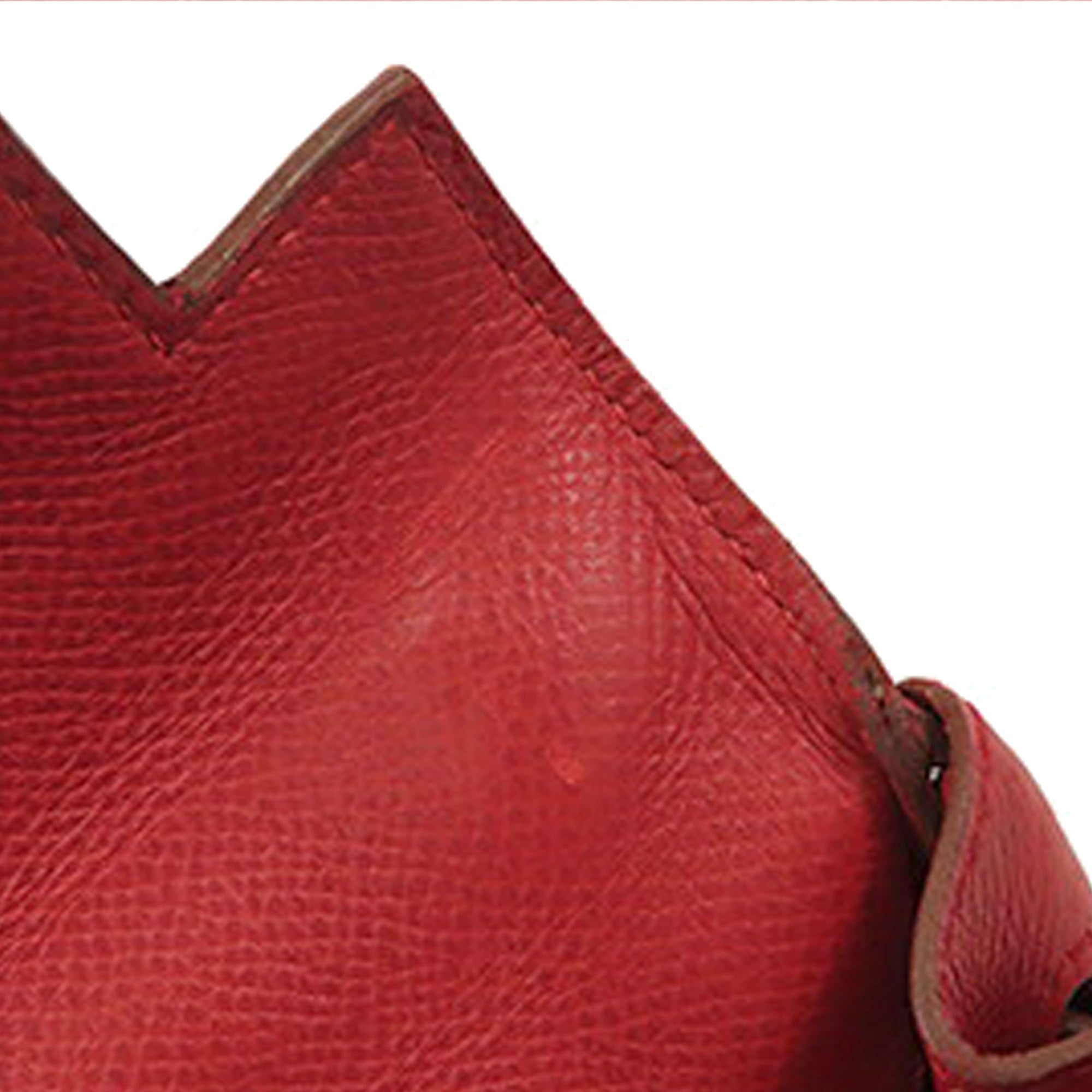 This Kelly Retourne 32 features a Courchevel leather body in Rouge Vif color, a rolled leather top handle, a detachable flat strap, a front flap with a metal turn lock closure, and interior zip and slip pockets. Retail Price: 10400.00